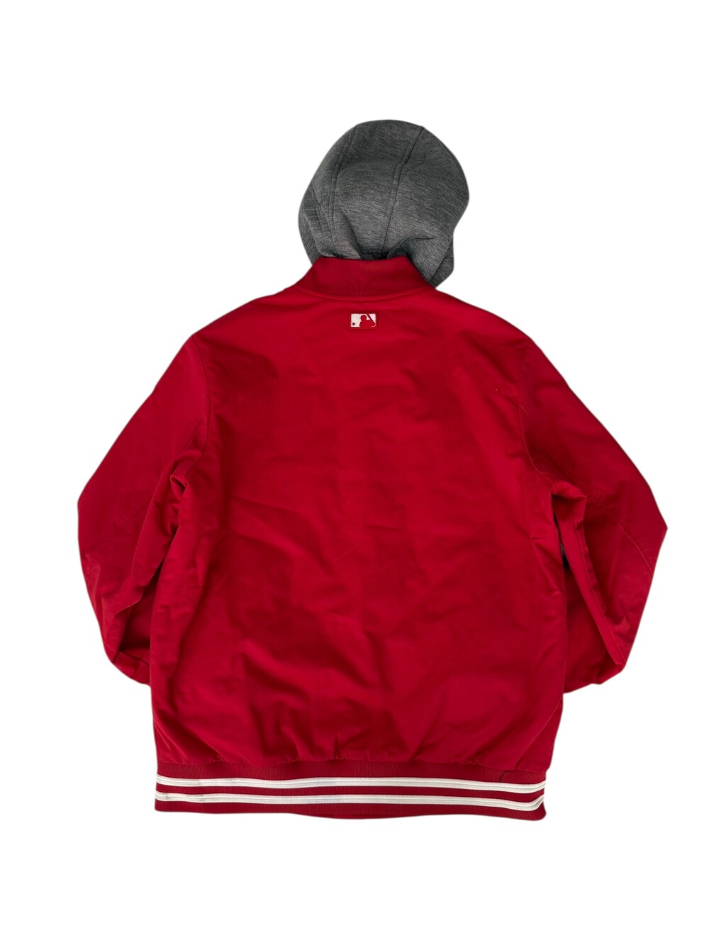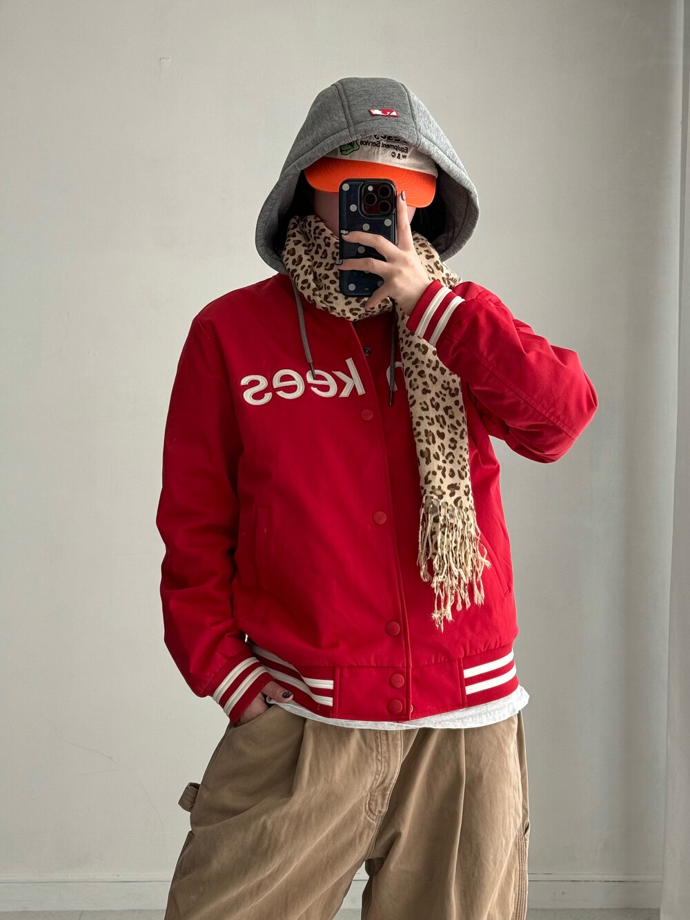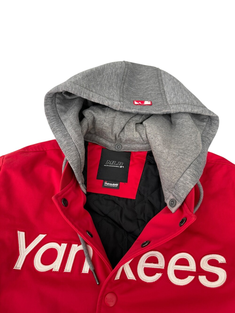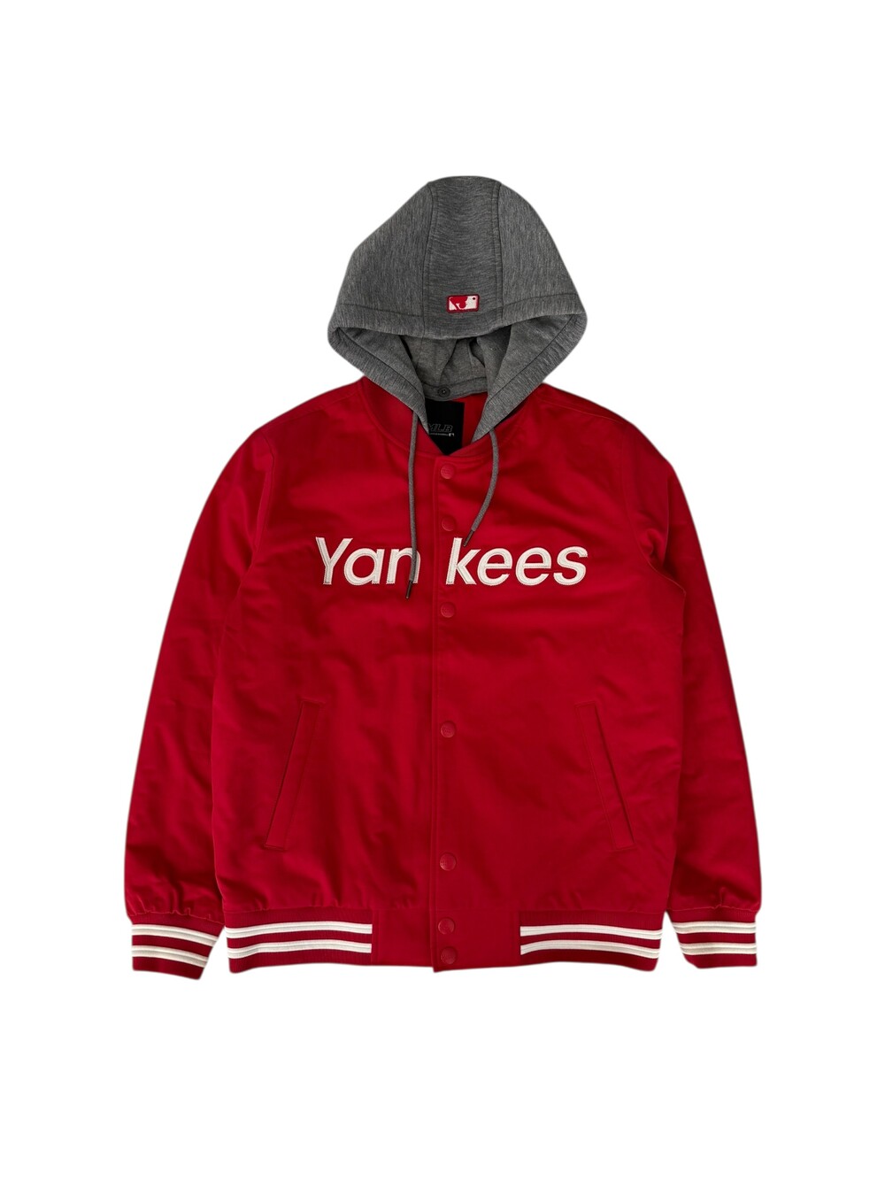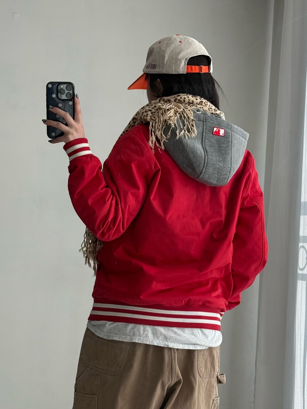 •엠엘비 양키즈 레드 바시티 자켓 입니다. 후드 탈부착 가능, 후드사이즈도 아방해서 활용성도 좋아요!