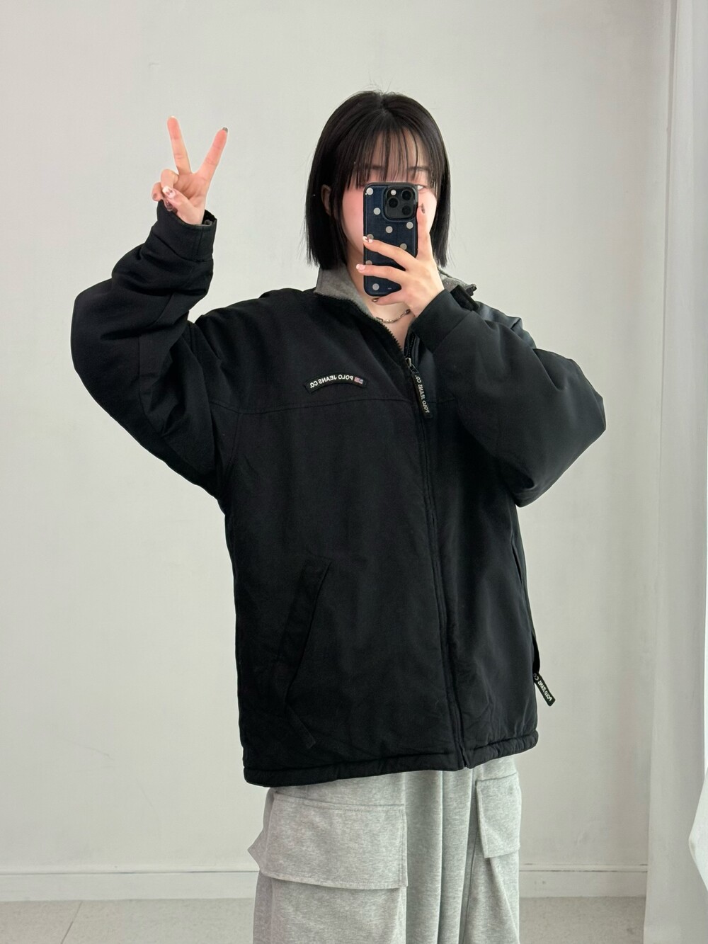 •폴로진스 안감 플리스 집업 입니다. 오버핏 사이즈라 착용했을때 핏이 정말 예뻐요! 밑단 스토퍼도 들어가있습니다ㅎ.ㅎ