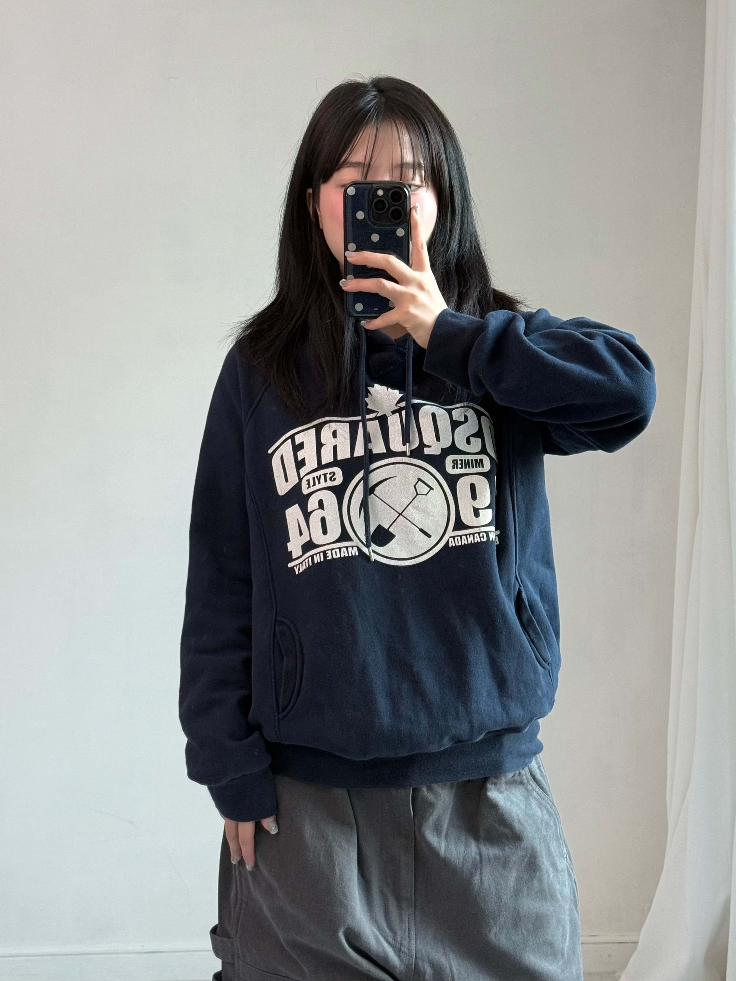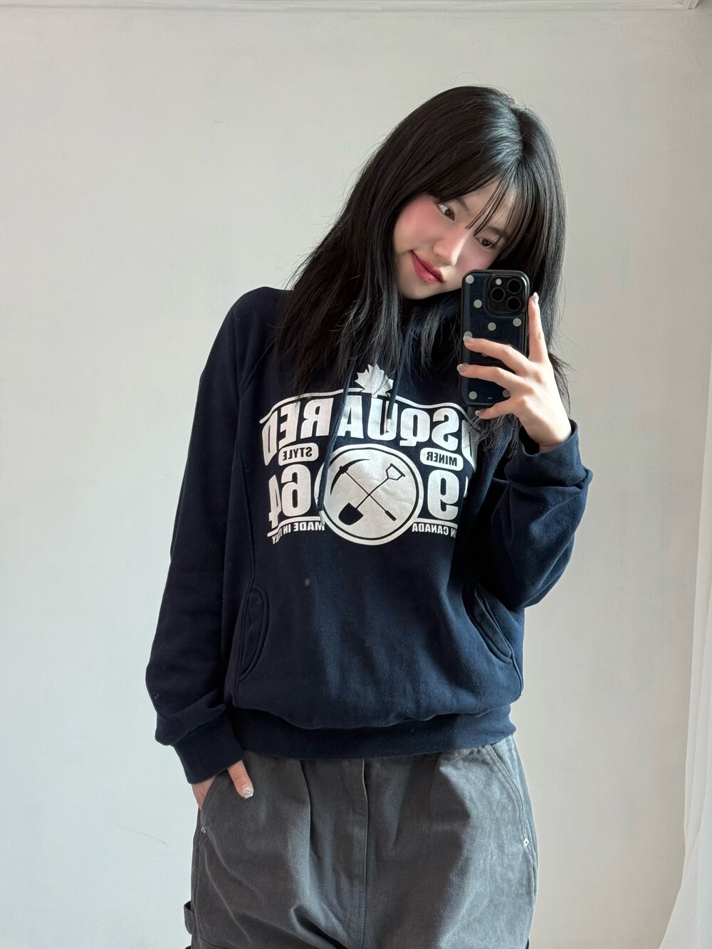 •디스퀘어드 네이비 후드티 입니다. 원단이 탄탄해서 각잡힌 실루엣이 넘 예쁜 후드에요😎❤️