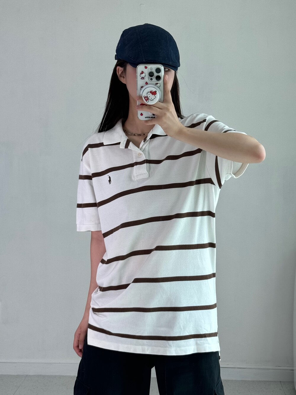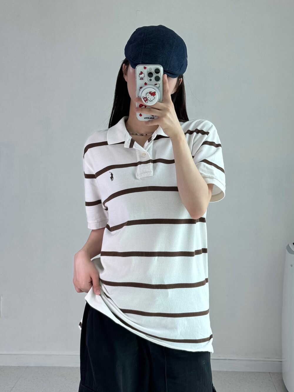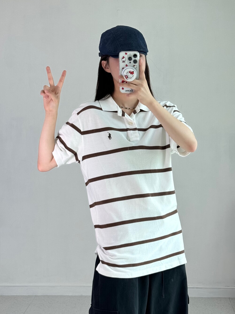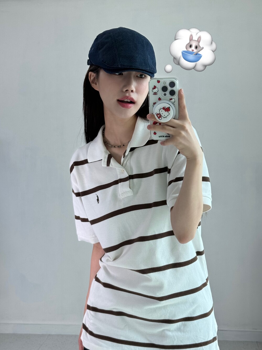 •화이트+브라운 조합의 스트라이프 폴로 피케이티! 깔끔귀엽게 입어주시기 좋은 디자인과 핏이라 무조건 겟 해가셔요!!!!
