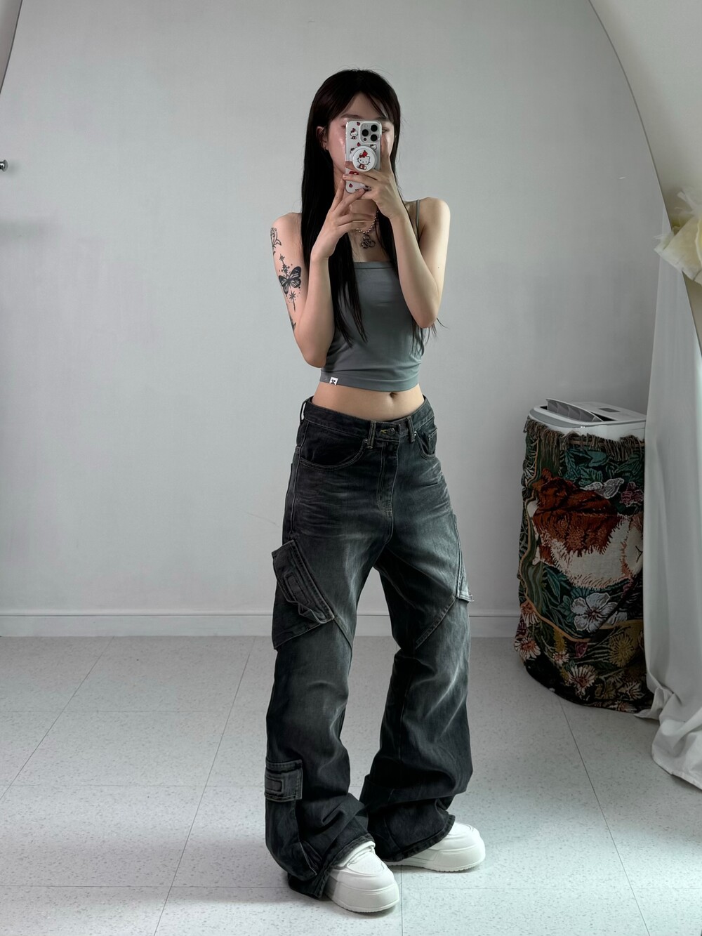 •워싱도 예쁘고 사선으로 들어간 포켓 디자인도 넘 예쁜 부츠컷 카고ㅎㅎ 롱다리로 만들어주는 마법같은 제품이랍니다!!! 여름에 나시랑 툭 입어주면 간지작살끝.