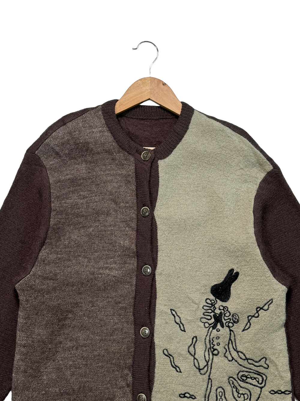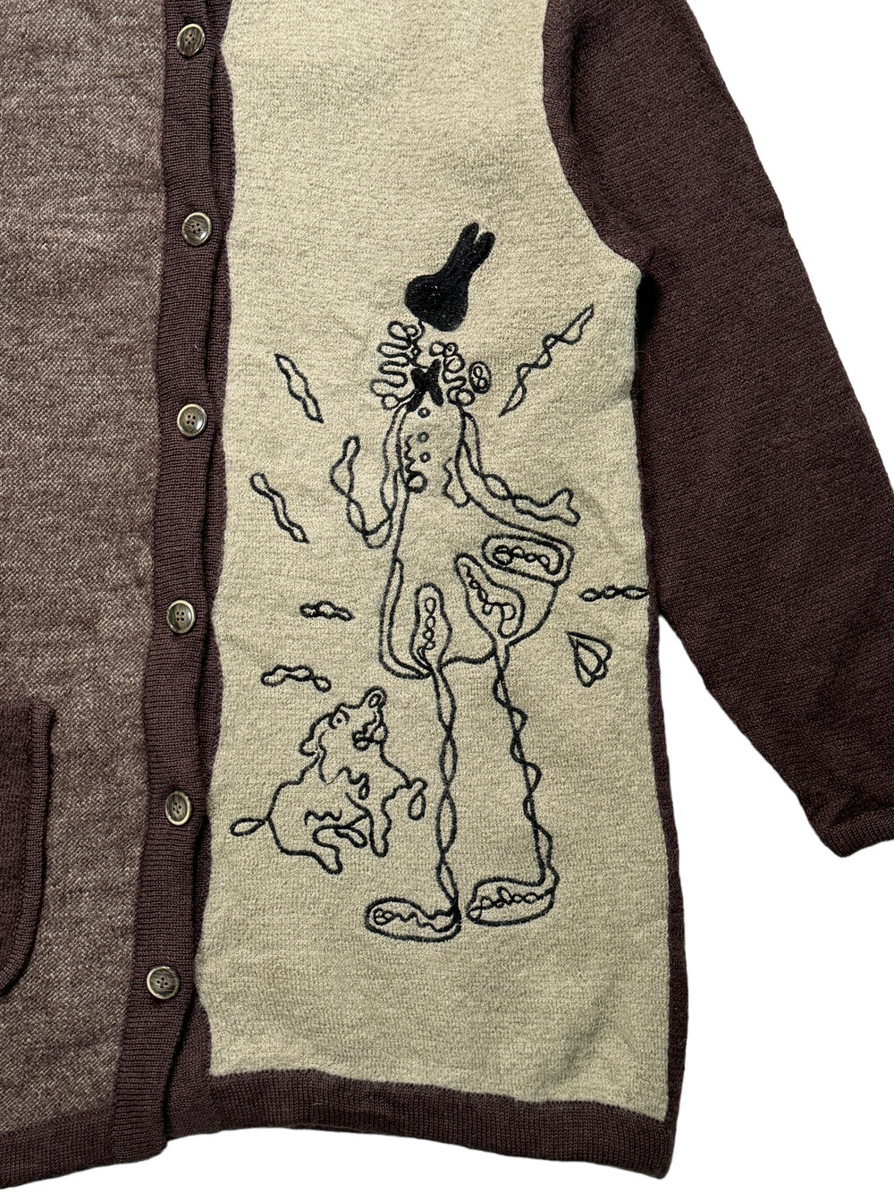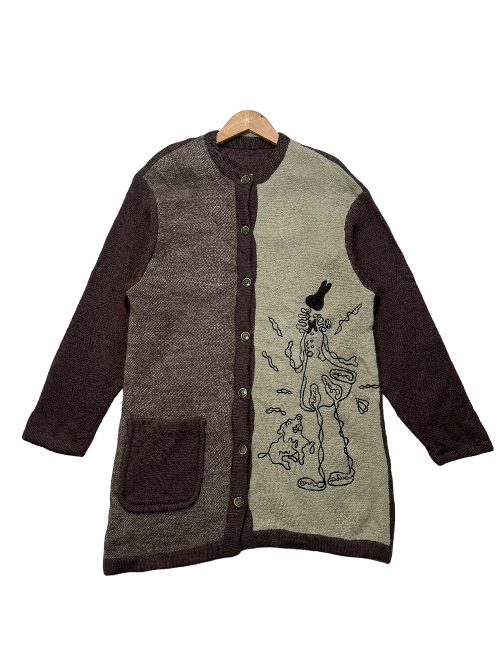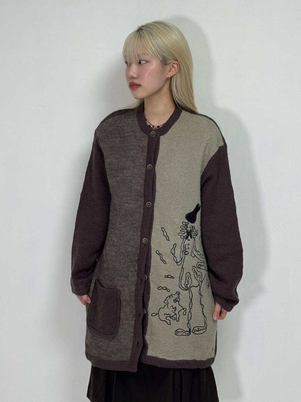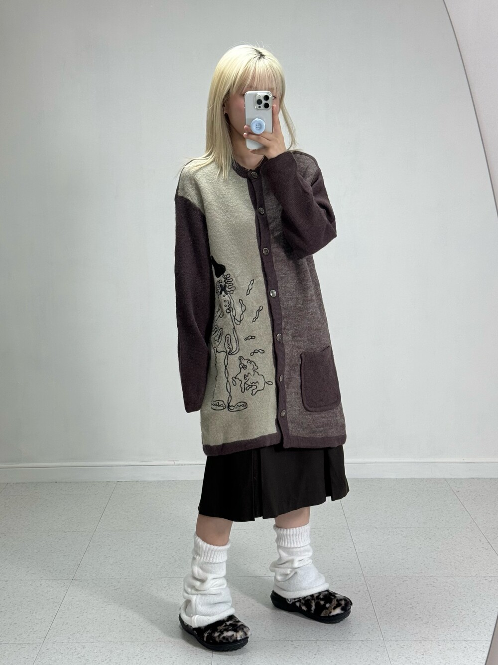•루즈하게 떨어지는 핏감과 전체적으로 브라운톤이라 폭닥한 느낌가득한 빈티지 가디건이에요ㅎㅎ 자수 디테일이 크게 들어가있어 디테일적으로도 귀엽고 원포켓 디자인 아주 굿..👍🏻