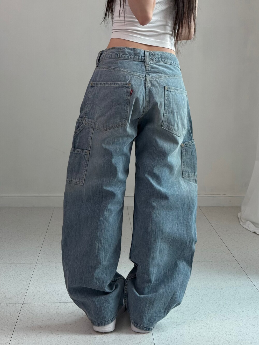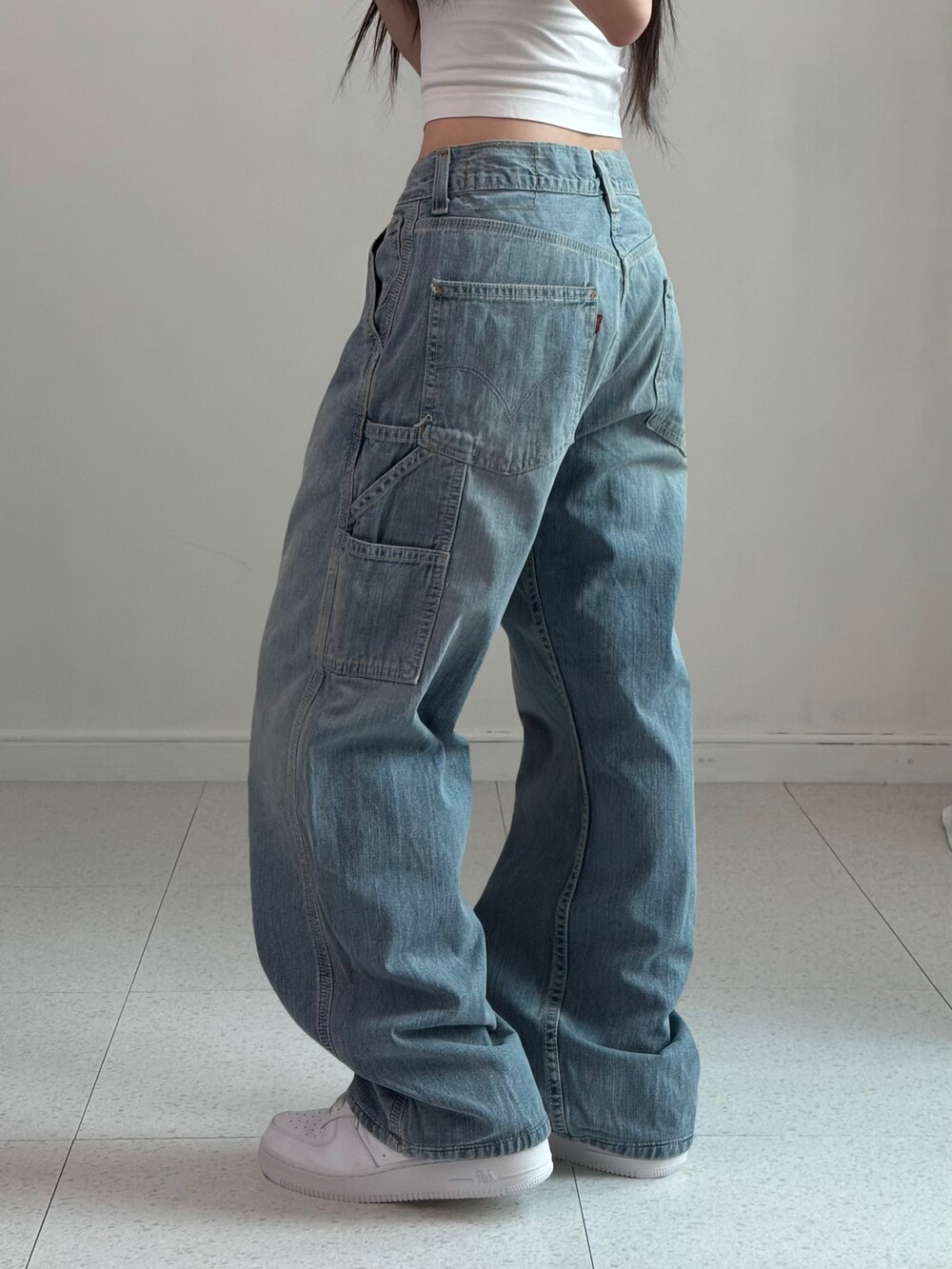 •리바이스 카펜터 입니다! 흔하게 나오는 라인이 아니라서 가격대도 7-10만원 이상하는 제품이에요. 입어보니까 정말 그 값어치 하더라구요..^^ 핀터에 나오는 언니들이 입는 깔끔루즈 데님팬츠 핏이랄까요.. 리바이스는 아묻따 입니돠..