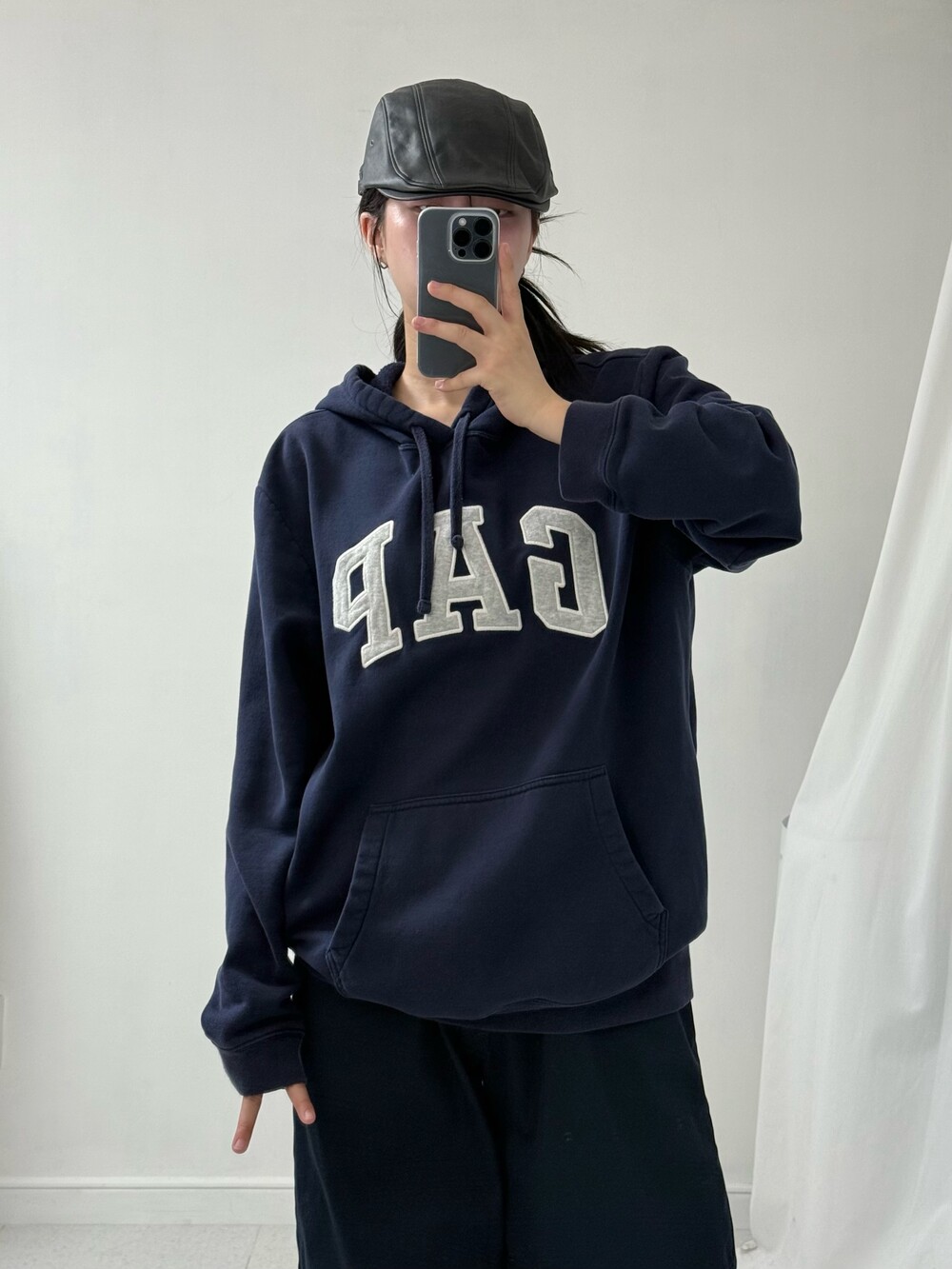 •네이비에 그레이 로고 조합으로 폭닥폭닥한 느낌 낭낭한 데일리 후드티에요! 안감은 부드러운 기모안감이라 착용감도 편하고 집 앞 마실룩,시험기간룩,꾸안꾸룩에 제격이여요-!