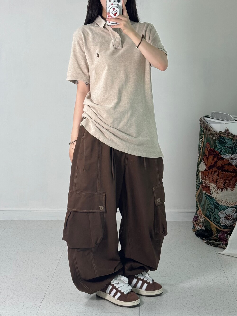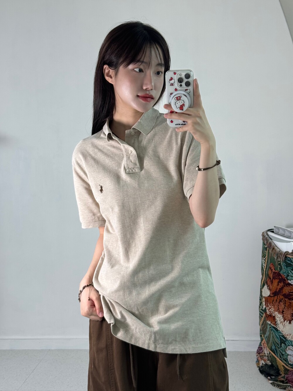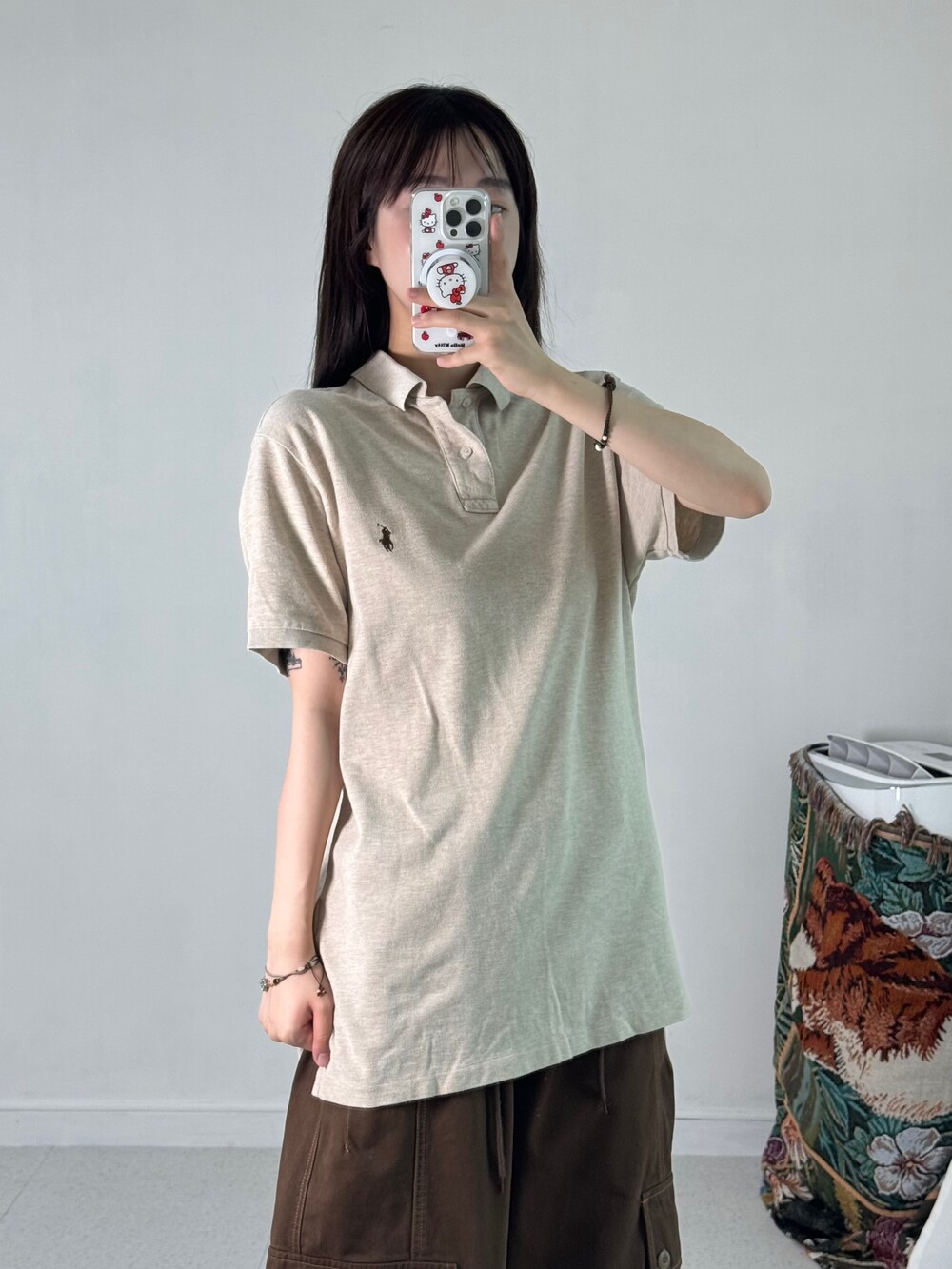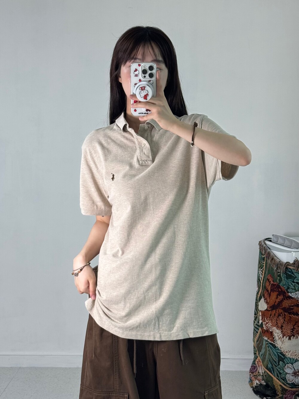 •베이지+브라운 조합 폴로 피케이티! 루즈한 사이즈에 휘뚤마뚤 입어주시기 좋은 아이템이라 옷장필수템으로 갖고 계시는걸 추천 드립니다!>,<