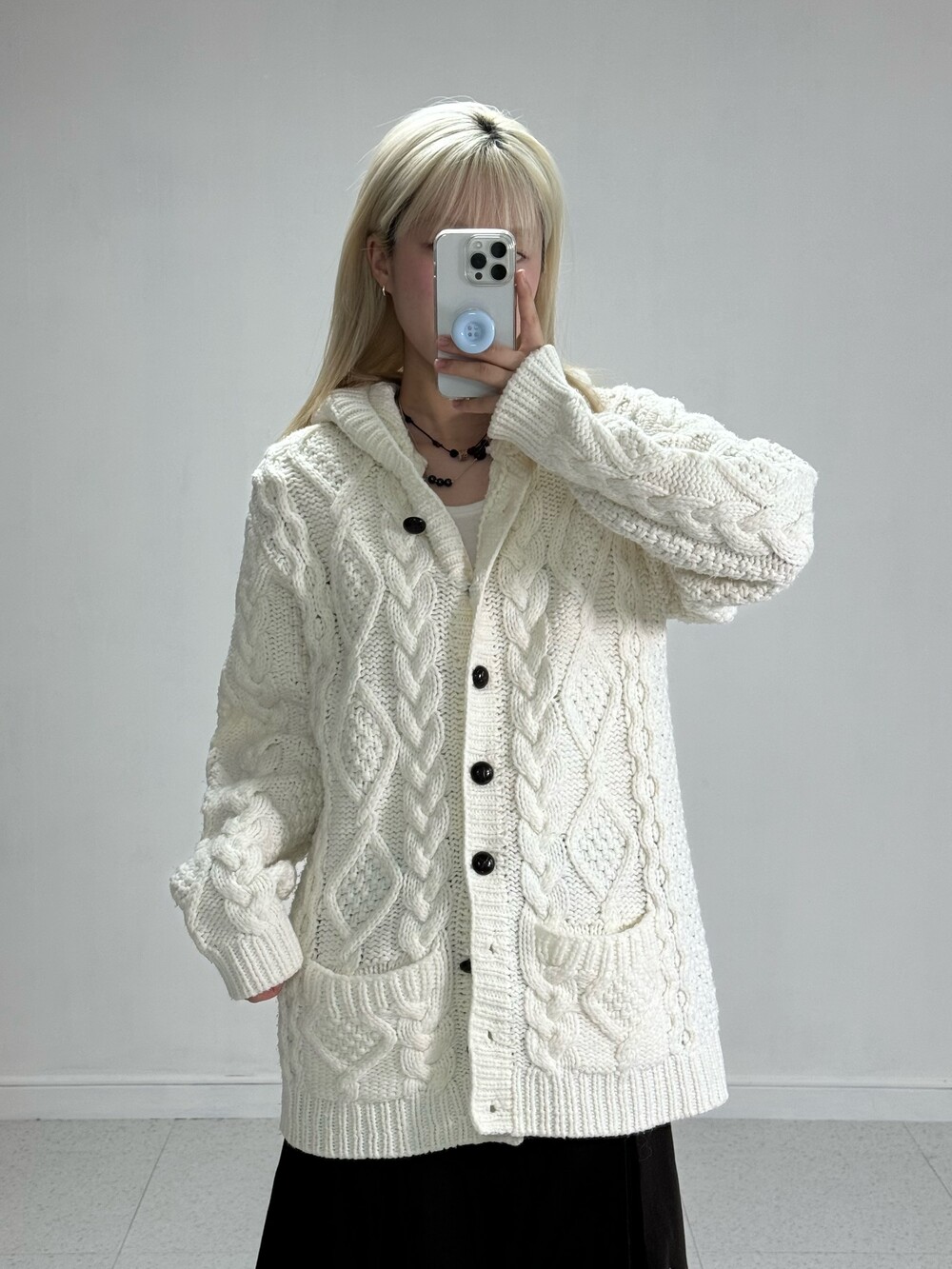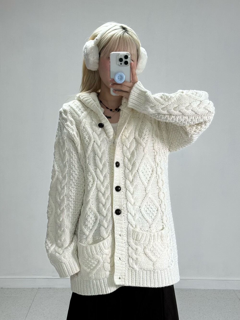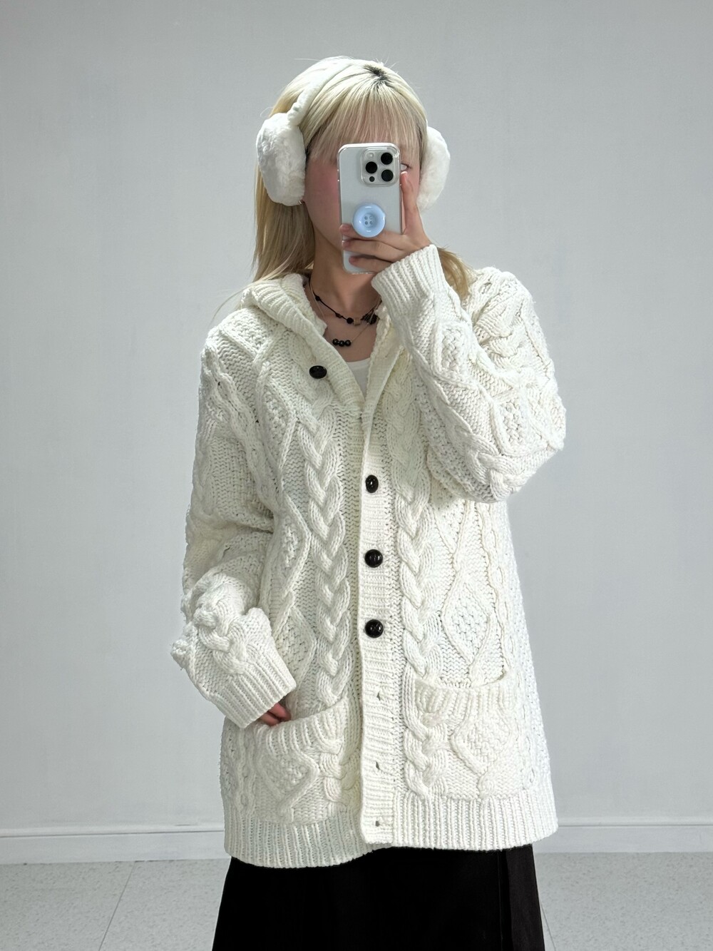 •사심담아 제가 입고싶어서 가지고 온 후드니트가디건..! 꽈배기 디자인에 묵직한 핏감이 너무 마음에 드는 제품이에요! 폭닥한 느낌으로 마구 입어주세요>,<
