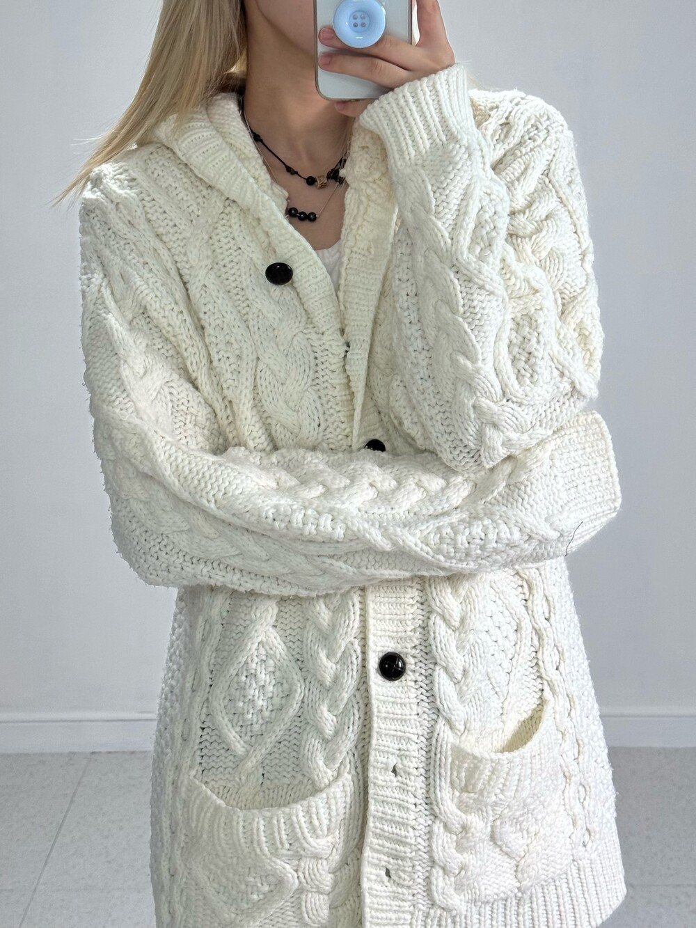 Ivory knit hood cardigan