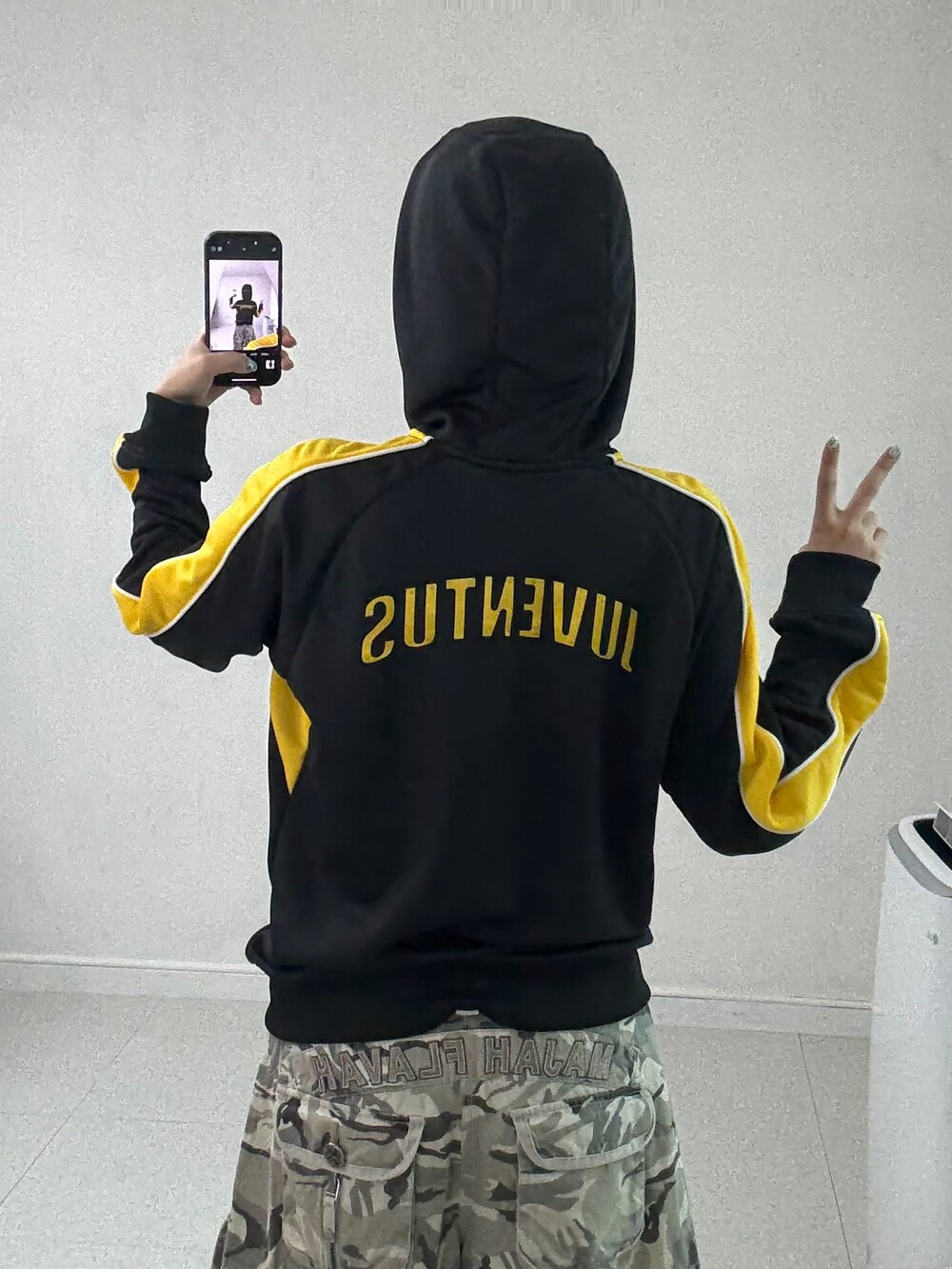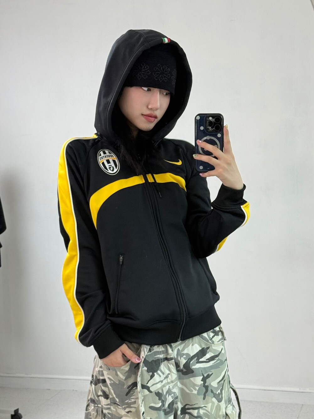 •나이키 유벤투스 후드 져지입니다! 색조합도 마음에 들구,, 저 아방한 후드 크기가 넘 맘에 들어요ㅋ.ㅋ힙쟁이 블록코어룩 완성.
