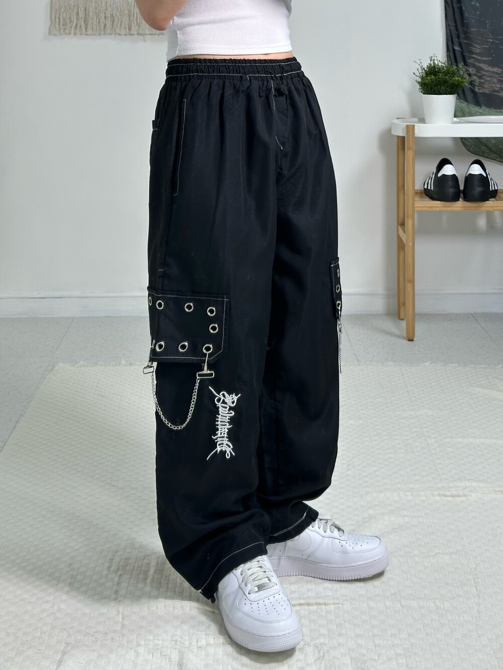 •이렇게 멋있는 디자인을 갖고 있는 제품들은 대부분 착용감이 불편한데 오히려 너무 편해서 깜짝 놀랐던 카고^,^ 허리가 밴딩이라 더욱 편했구요! 양쪽 사이드에 체인 디테일과 레터링 디테일이 있어 더욱 힙한 무드를 가지고 있어요🖤✌🏻