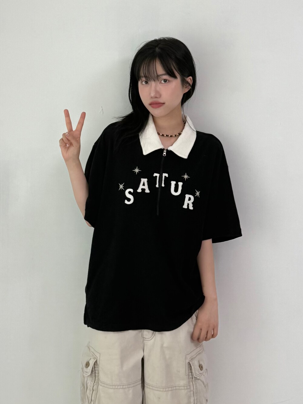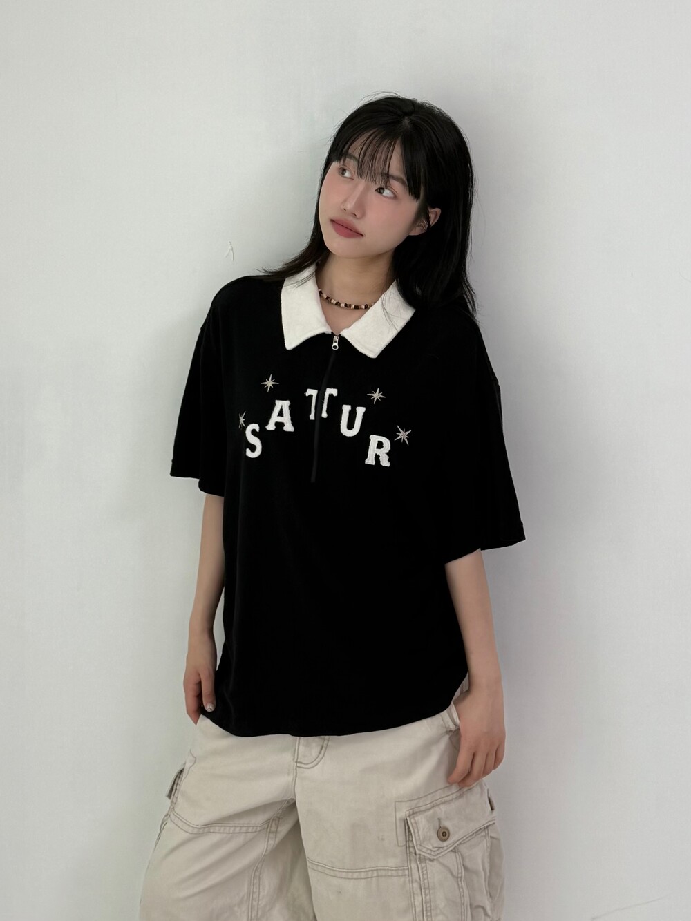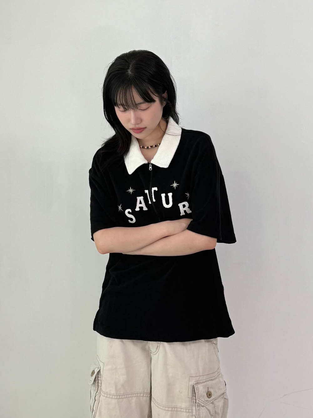 •세터 테리 반팔니트 입니다. 심심할 수 있는 블랙 앤 화이트 조합이지만 자수 디테일이 들어가있어 귀엽게 입어주시기 좋은 아이템이에요-!