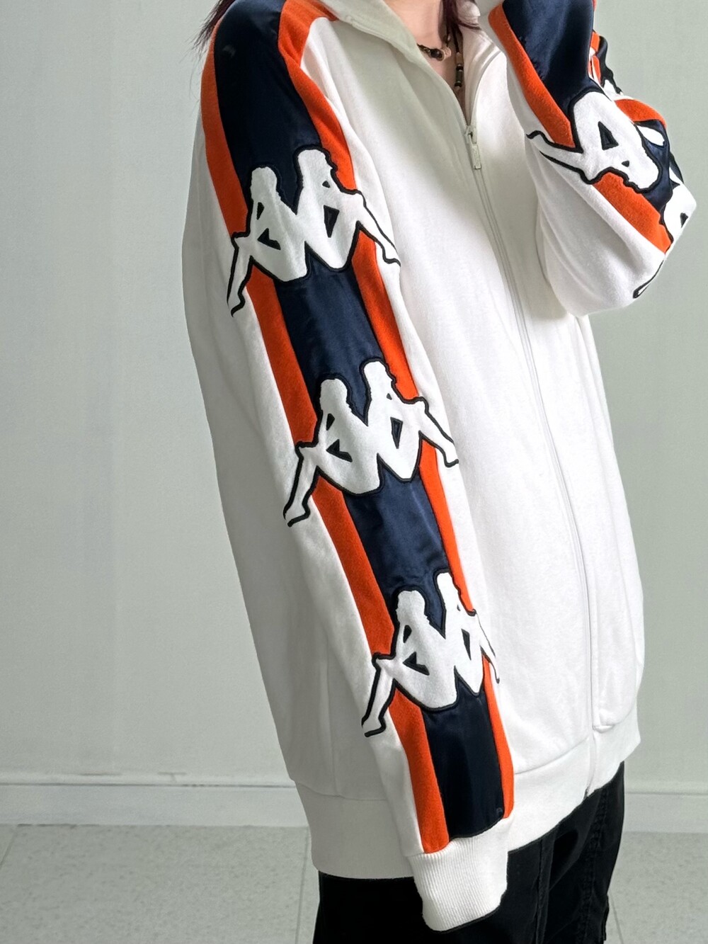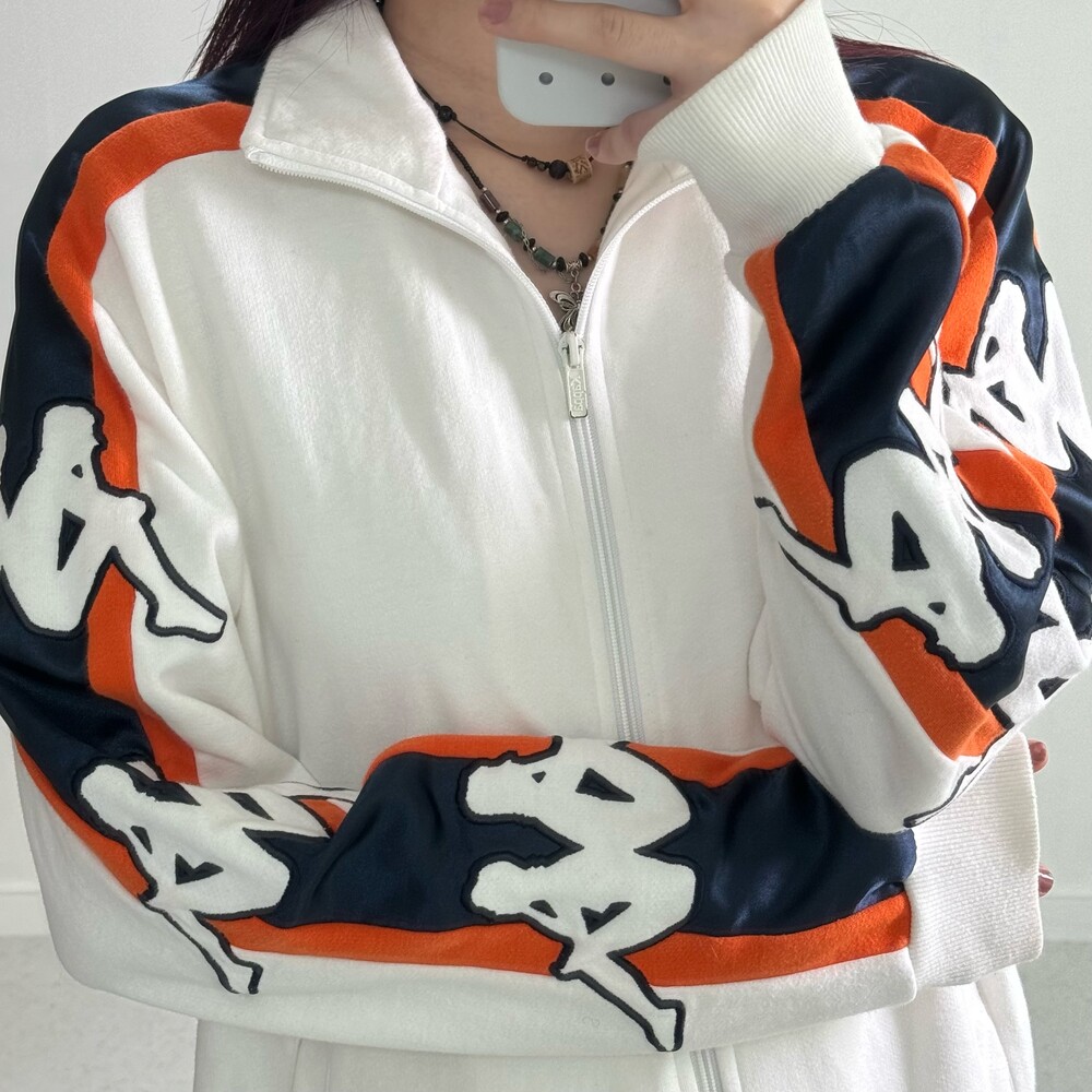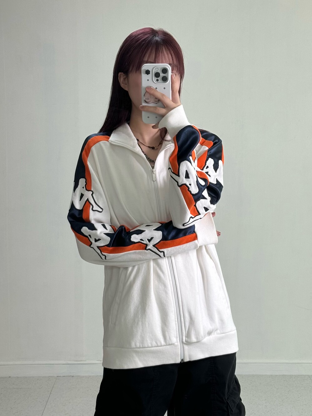 •평소 카파 제품을 잘 보여드리진 않는 편이에요, 너무 옛스러운 디자인들이 많은 브랜드이기에 손이 자주 가지 않을뿐더러 제가 잘 입지 않는 브랜드였으니까요! 그런데 제 생각을 바뀌게 만들어준 아주 희귀 아이템이랄까요? 오렌지,네이비,화이트 조합이 우선 넘 귀엽구요, 사이드 트랙 느낌으로 카파 빅로고가 들어가있어 멋스럽고 빈티지에서만 만날 수 있는 디자인이 아닐까싶어요! 사심담아 데리고 온 제품이기에 판매 안되면 주인장이 갖고싶어유.. 🖤