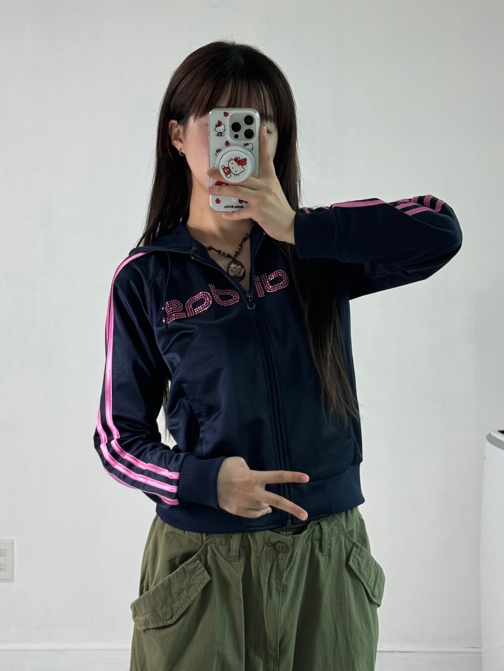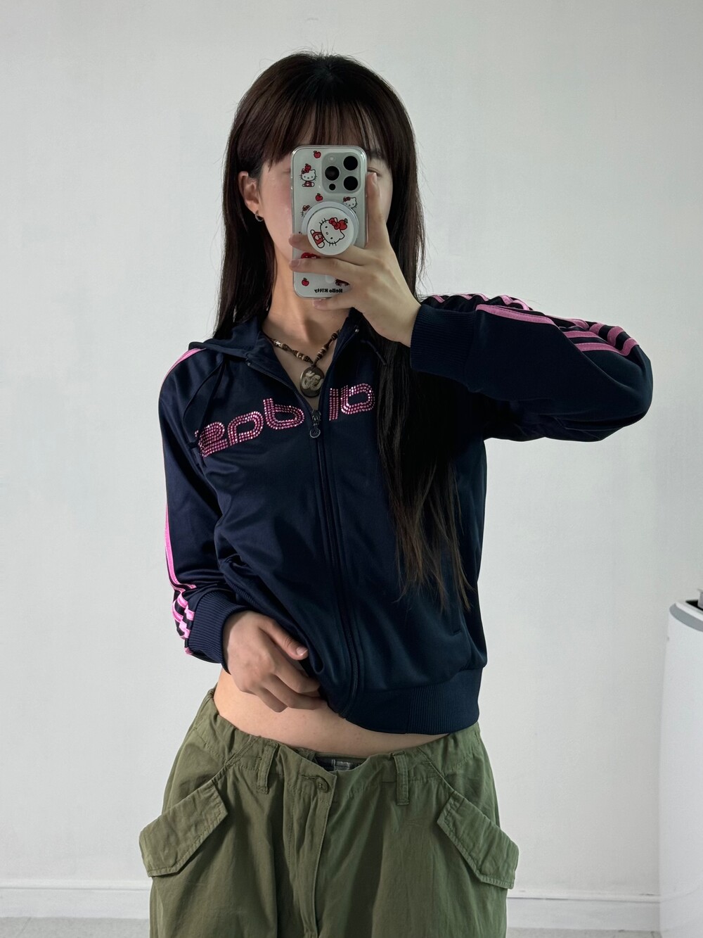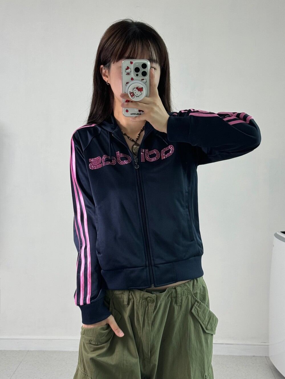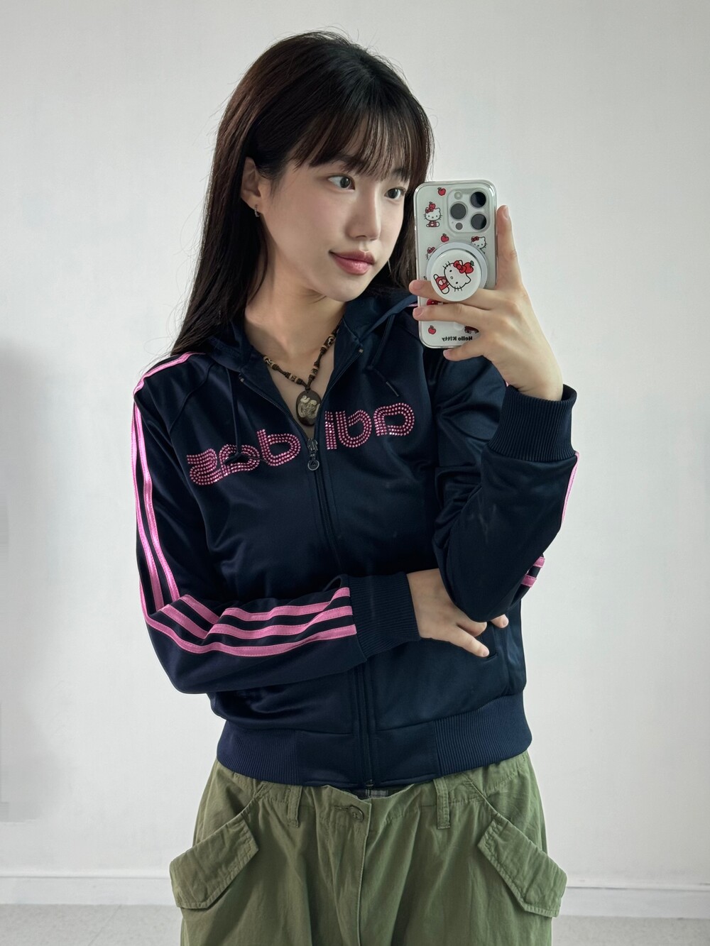 •네이비+핑크 조합 아디다스 후드져지에요-! 쫑쫑 박힌 큐빅 넘 귀엽지요..