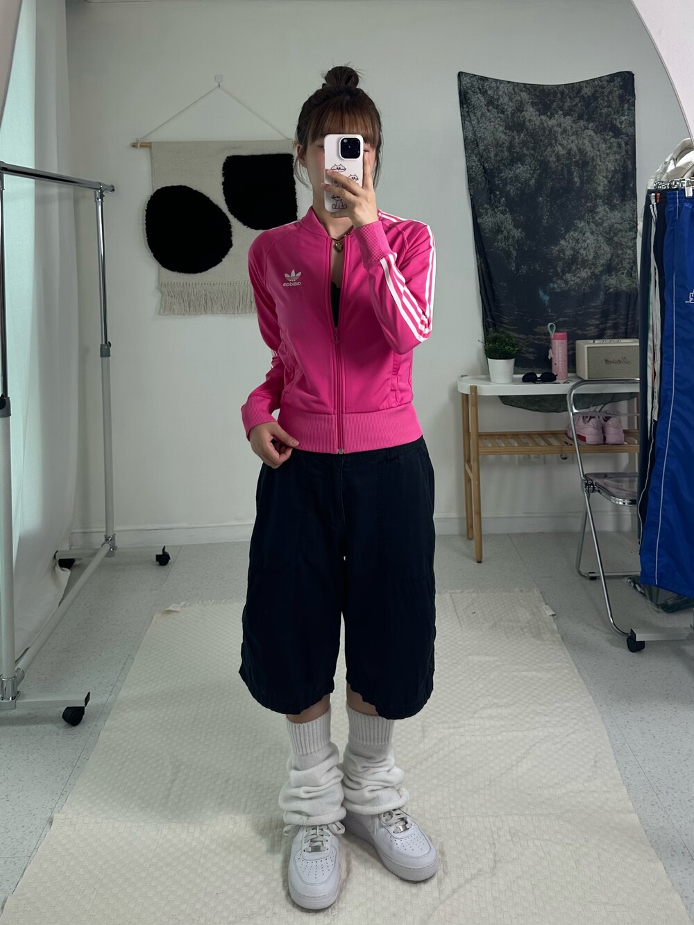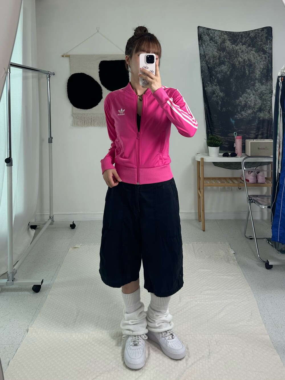 •블랙컬러의 하프팬츠!심심해보이지만 프린팅과 적당한 기장감 덕에 코디 끝판왕 이거등요..가을에는 저처럼 레그워머랑 같이 코디해서 입어주시면 됩니닷 ㅎㅎ
