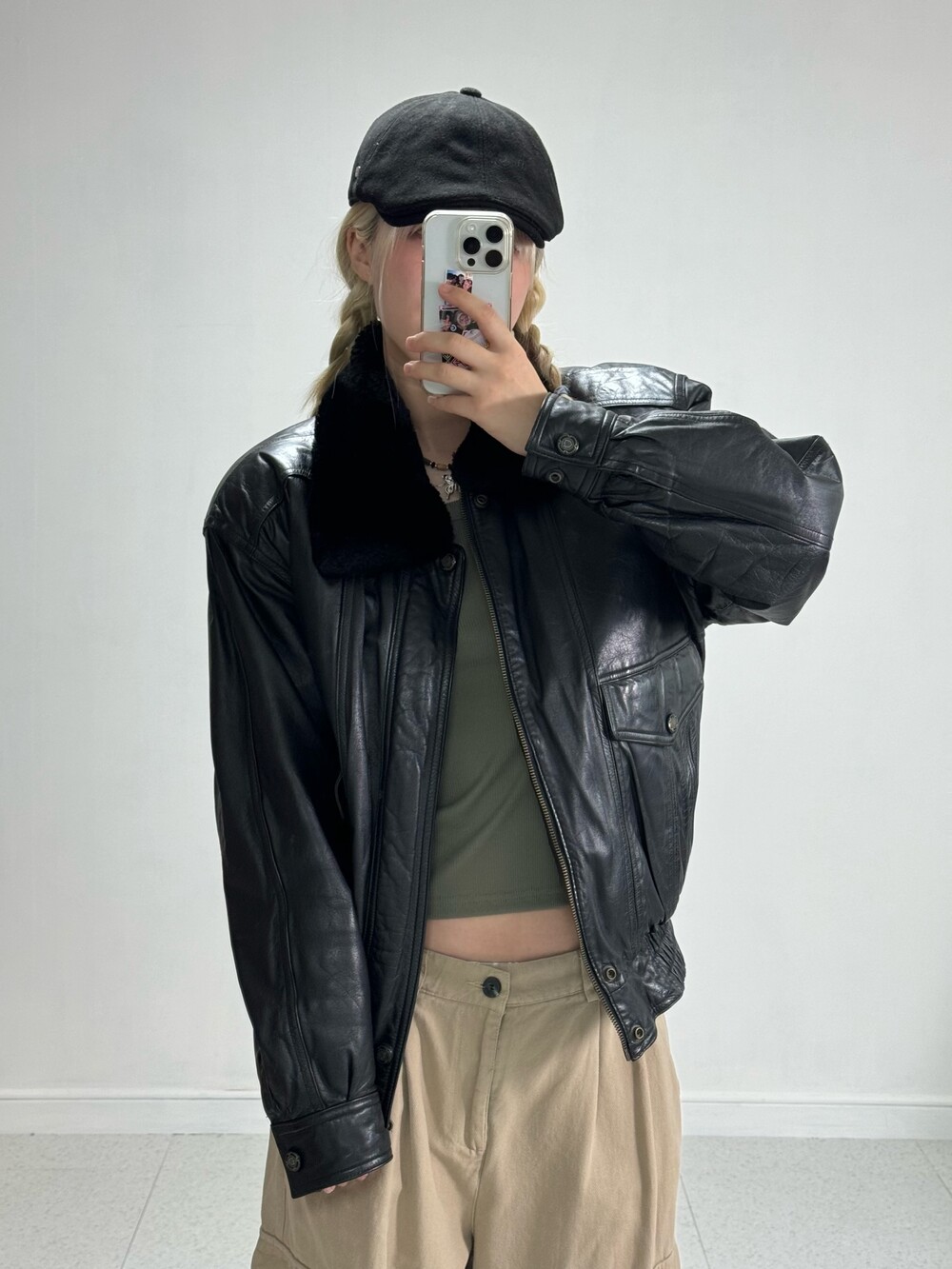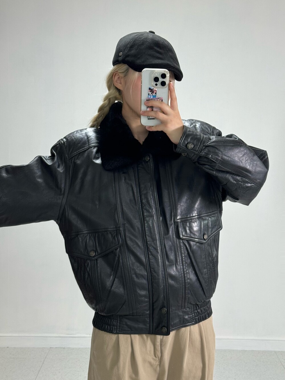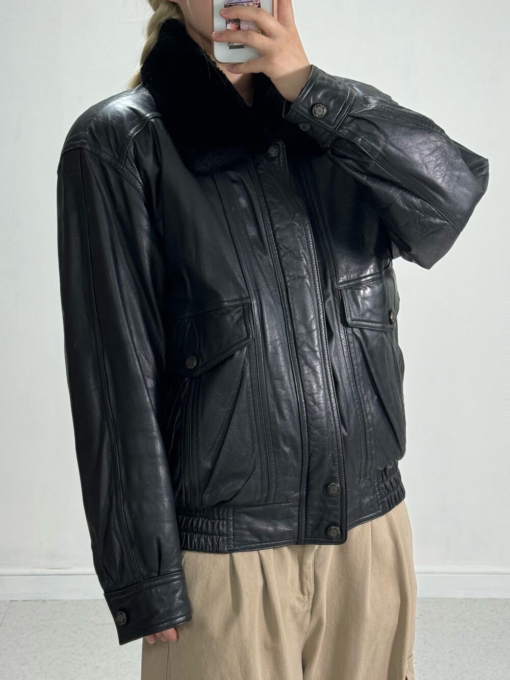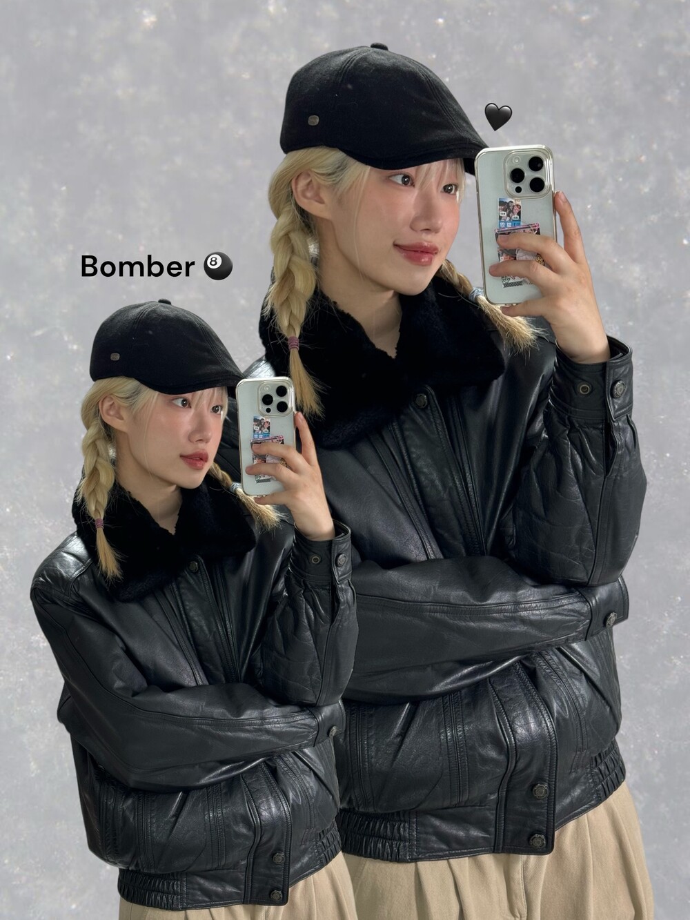 •소가죽 봄버자켓 퀄리티 미쳤습니다! 아방루즈묵직한 핏으로 떨어지고 넥라인 퍼는 탈부착 가능! 소가죽이지만.. 정말 갓성비 느낌으로 업데이트해요 🖤