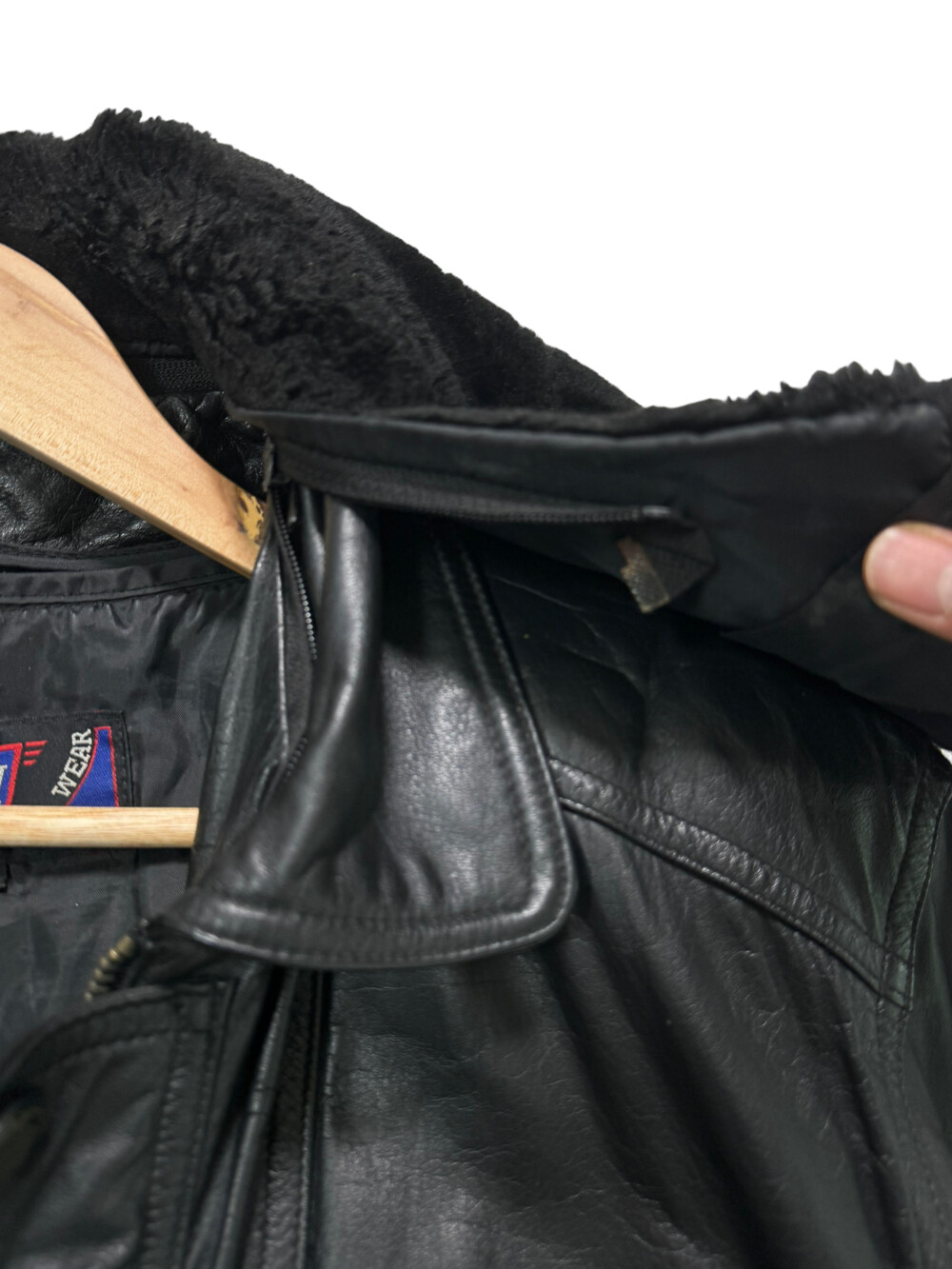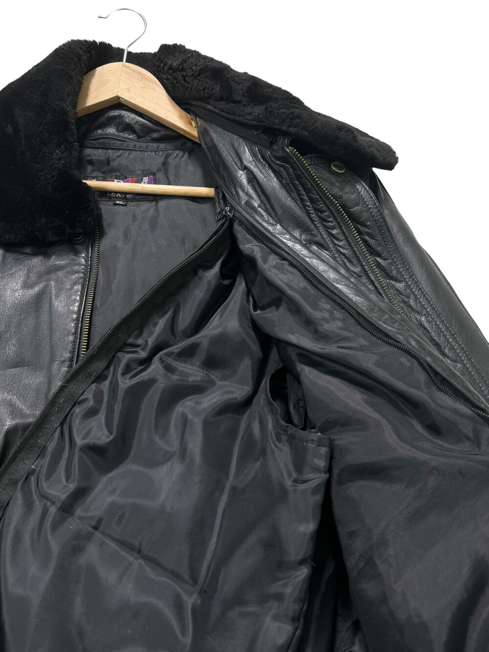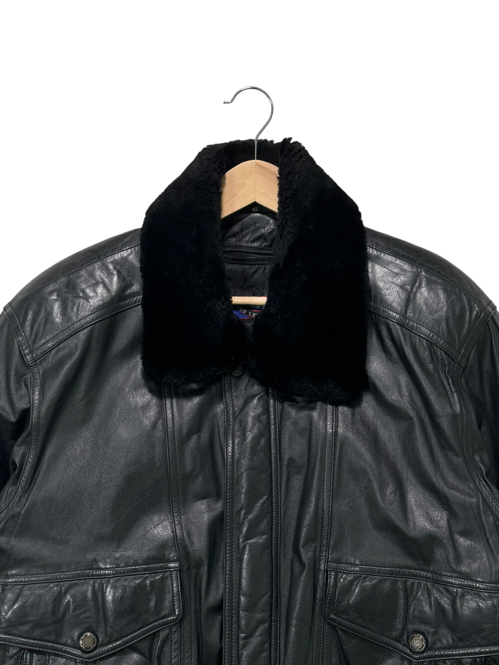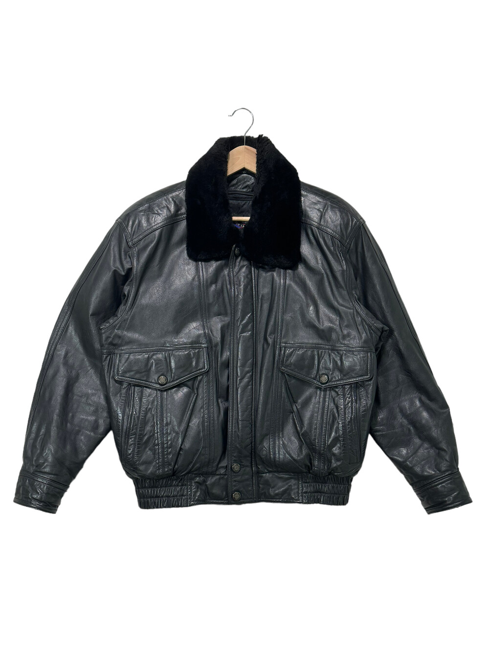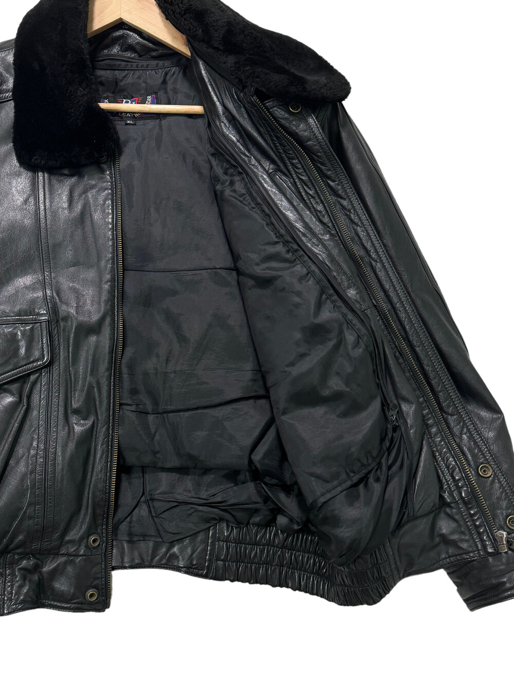 Black leather bomber