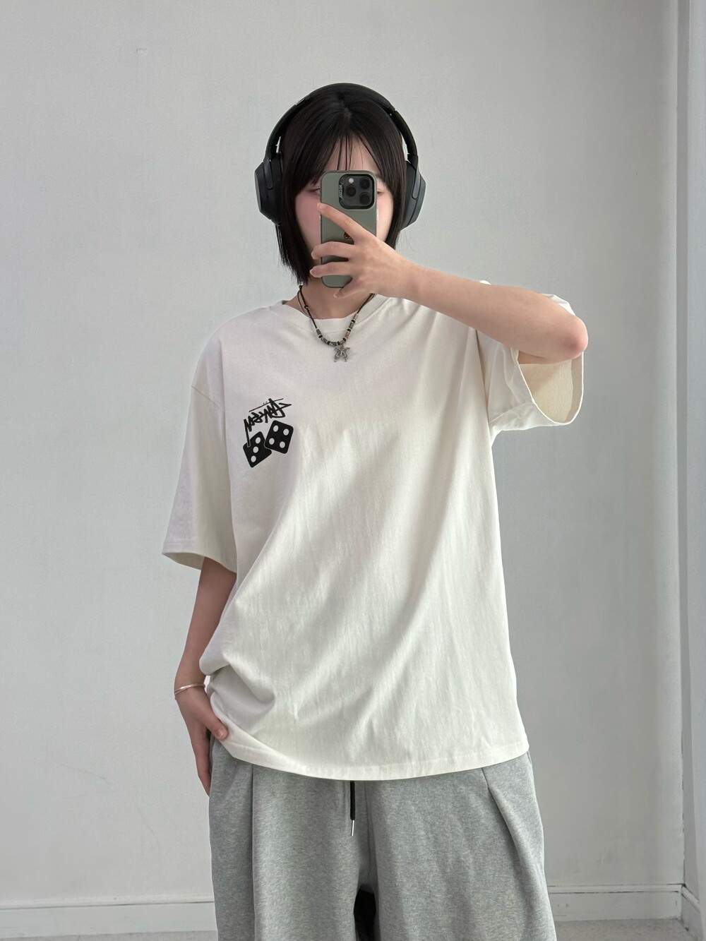 •스투시 다이스 반팔티 입니다. 넉넉한 사이즈로 오버핏 착용 가능!
