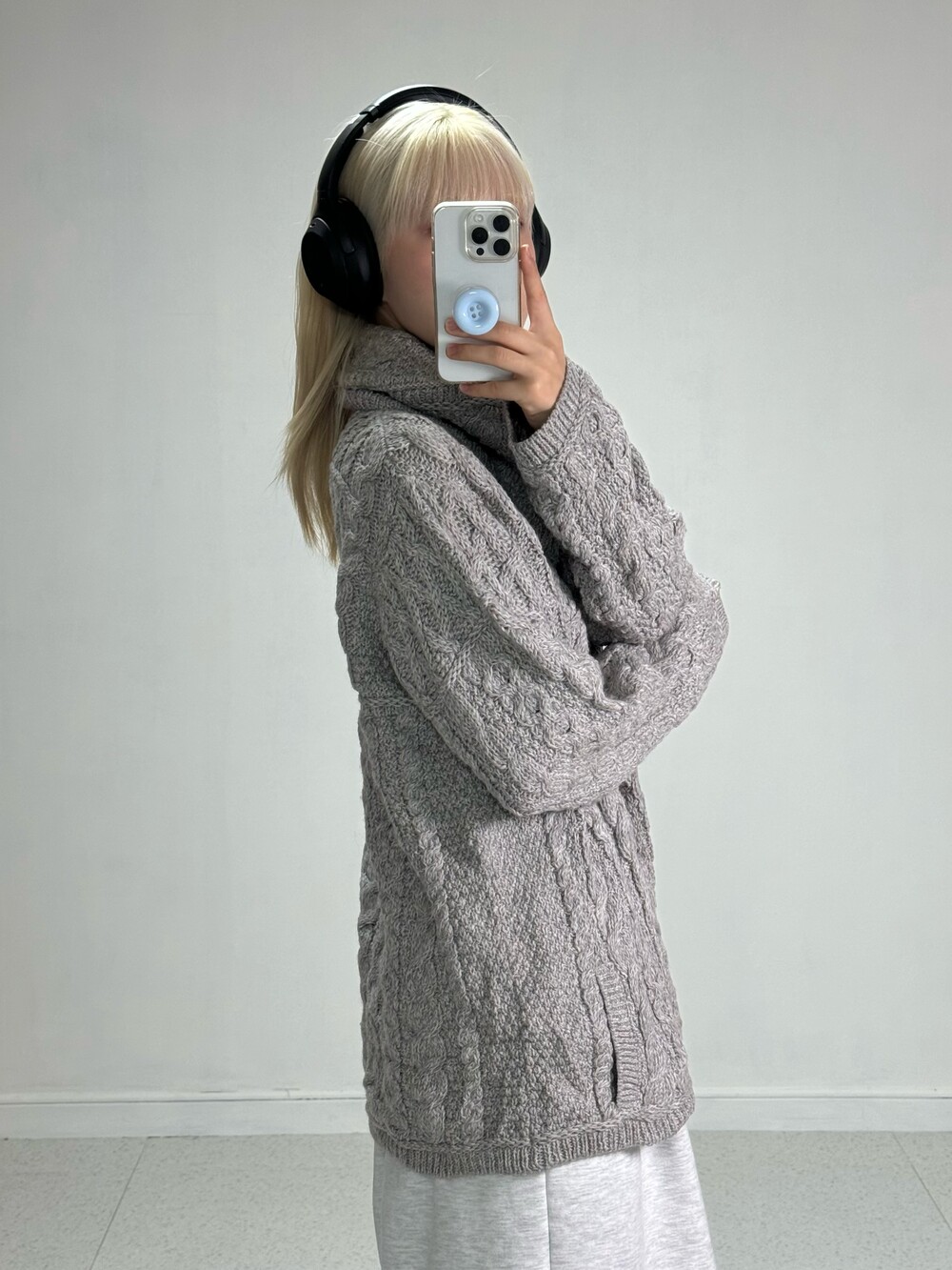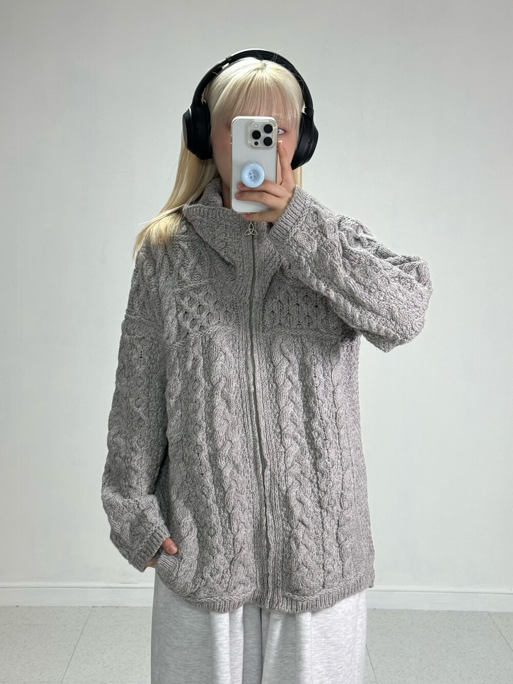 •울 100%지만 까슬거림 전혀 없고 폭닥한 느낌만 가득한 니트집업이에요! 그레이 컬러에 귀여운 짜임까지 데일리템으로 강강추 👍🏻
