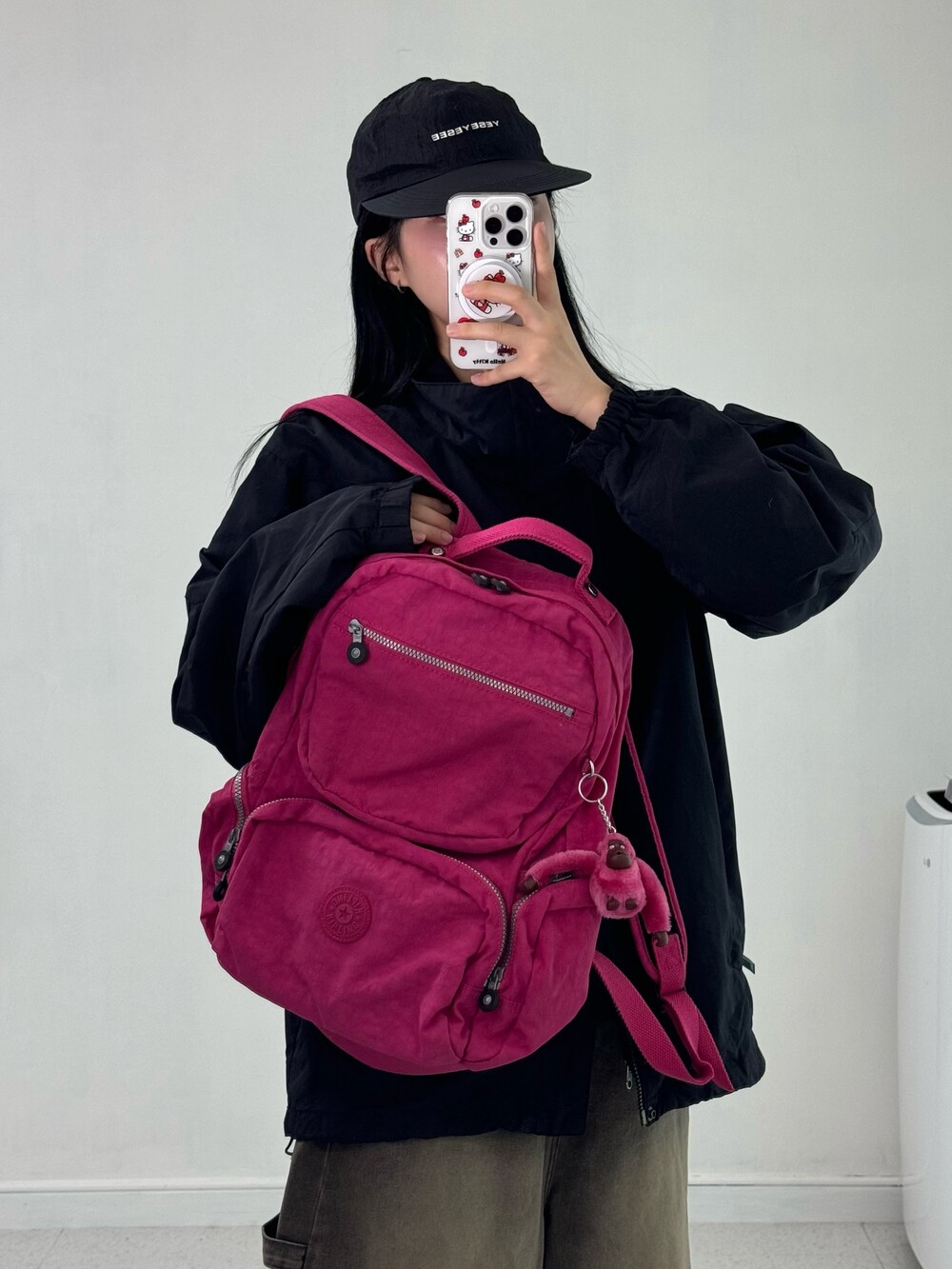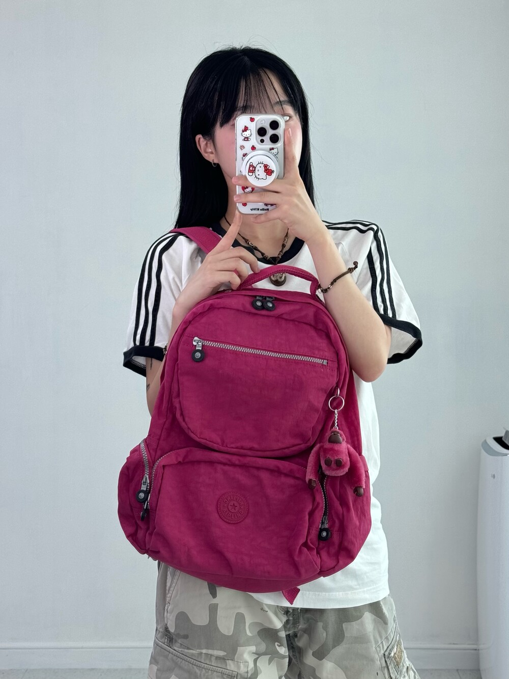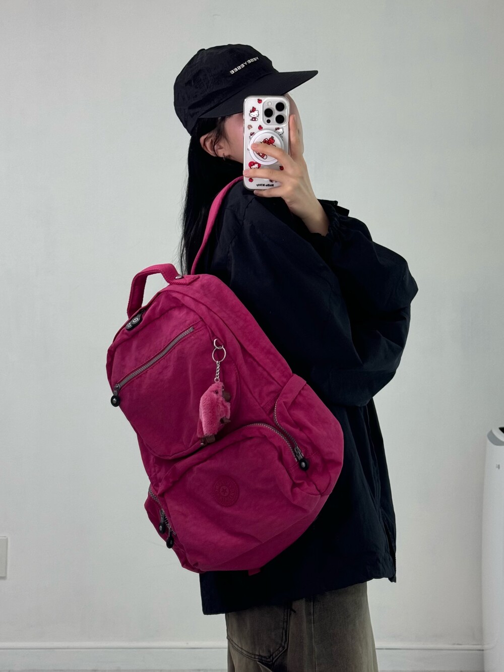 핫핑크 컬러의 귀여운 키플링 백팩이에요! 크기도 커서 보부상백으로 최적입니다ㅎㅎ 귀여운 양쪽 사이드 미니 포켓까쥐~~