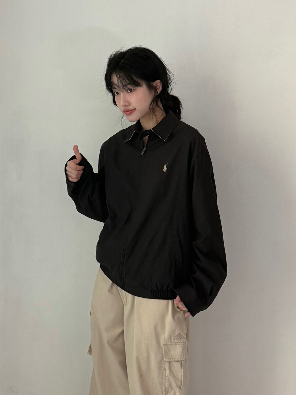 •컬러+핏 전부 도라방스 폴로 블루종 자켓 입니다! 입자마자 너무 귀여워서 "내가 입을걸.."이라며 업로드 하길 후회했던 아이템 ㅋ큐ㅠㅠ은은 멀멀한 블랙 컬러에 베이지 로고가 굉장히 세련된 제품이에요!