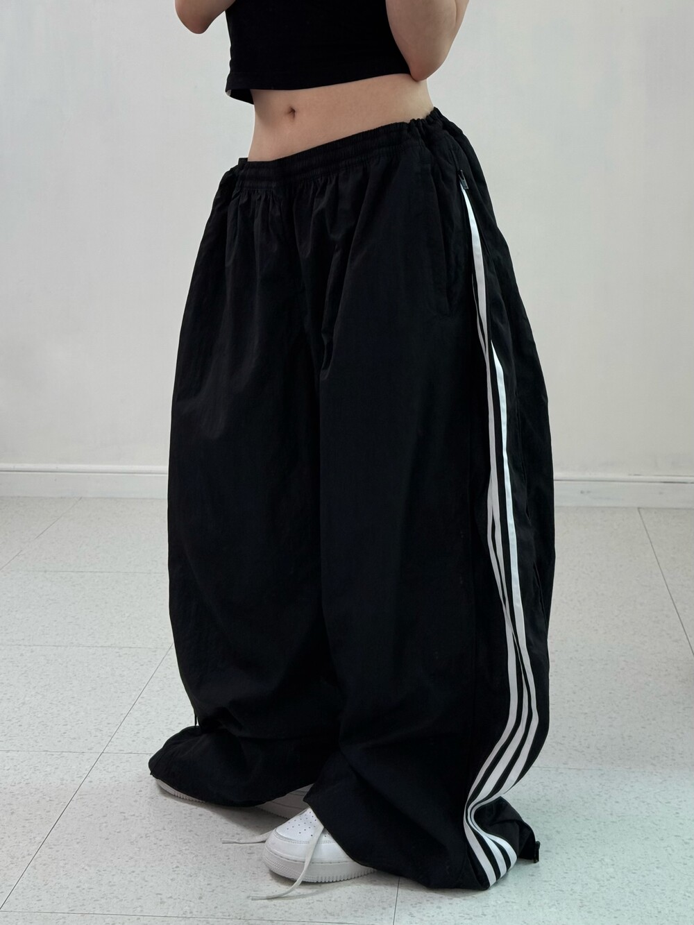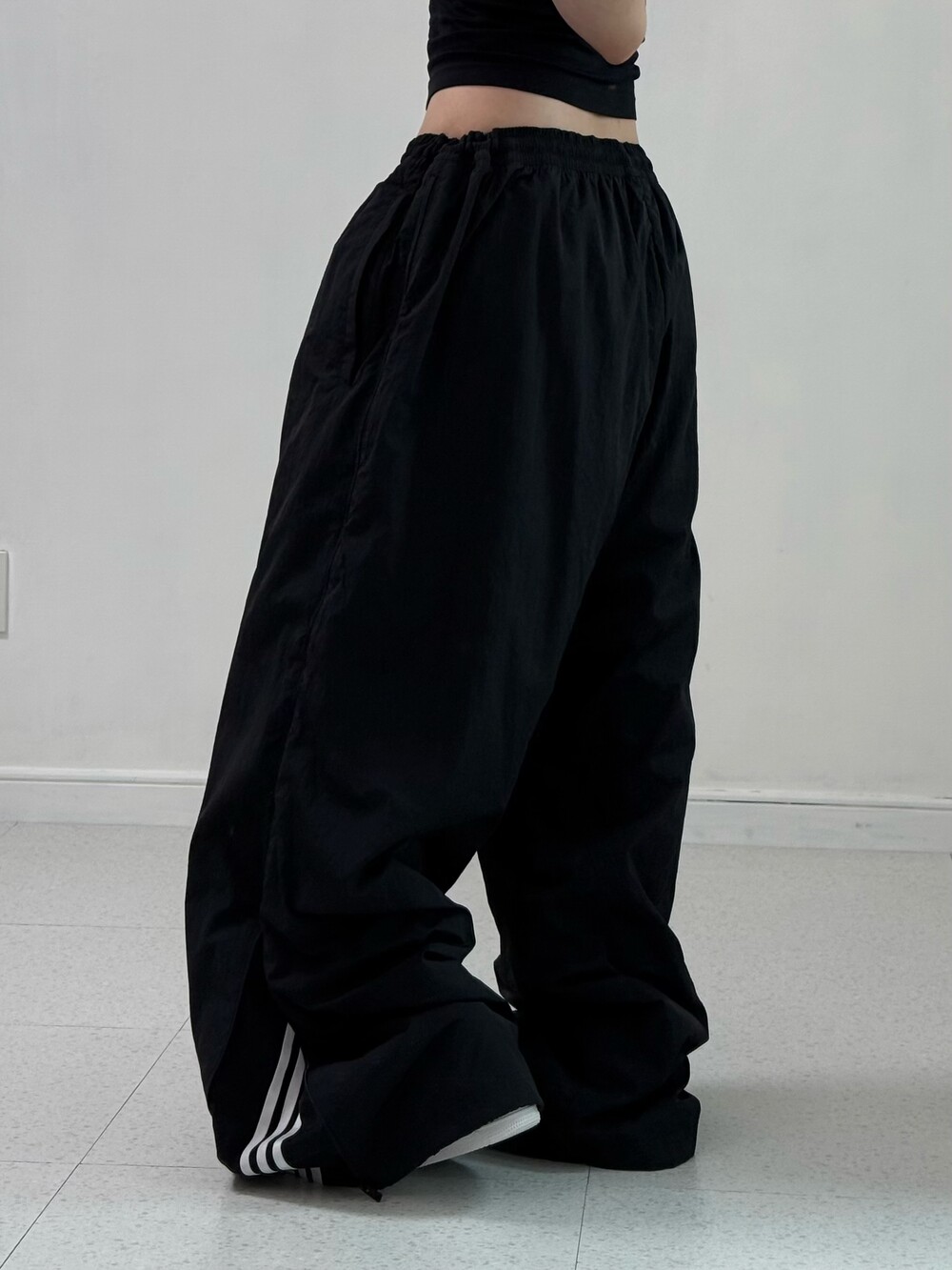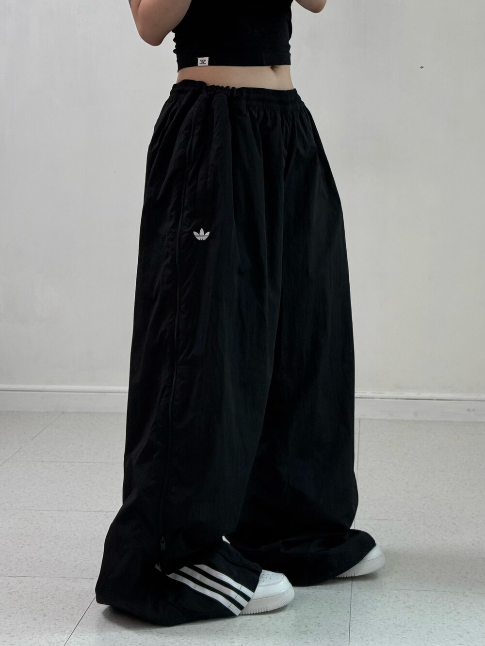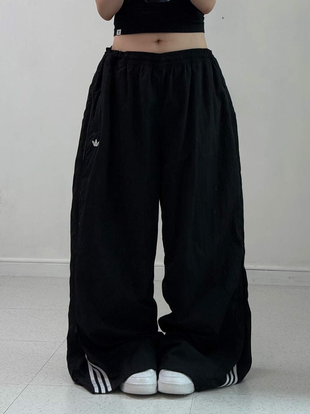 •역대급 와이드 핏 아디다스 아딜레늄 팬츠 입니다! 사이드에 지퍼 디테일이 들어가있는 녀석이에요, 지퍼 닫아도 예쁘구 전부 오픈해도 핀터깔로 스윽 입어주시기 좋습니다ㅎㅎ 밑단 스트랩도 있어요
