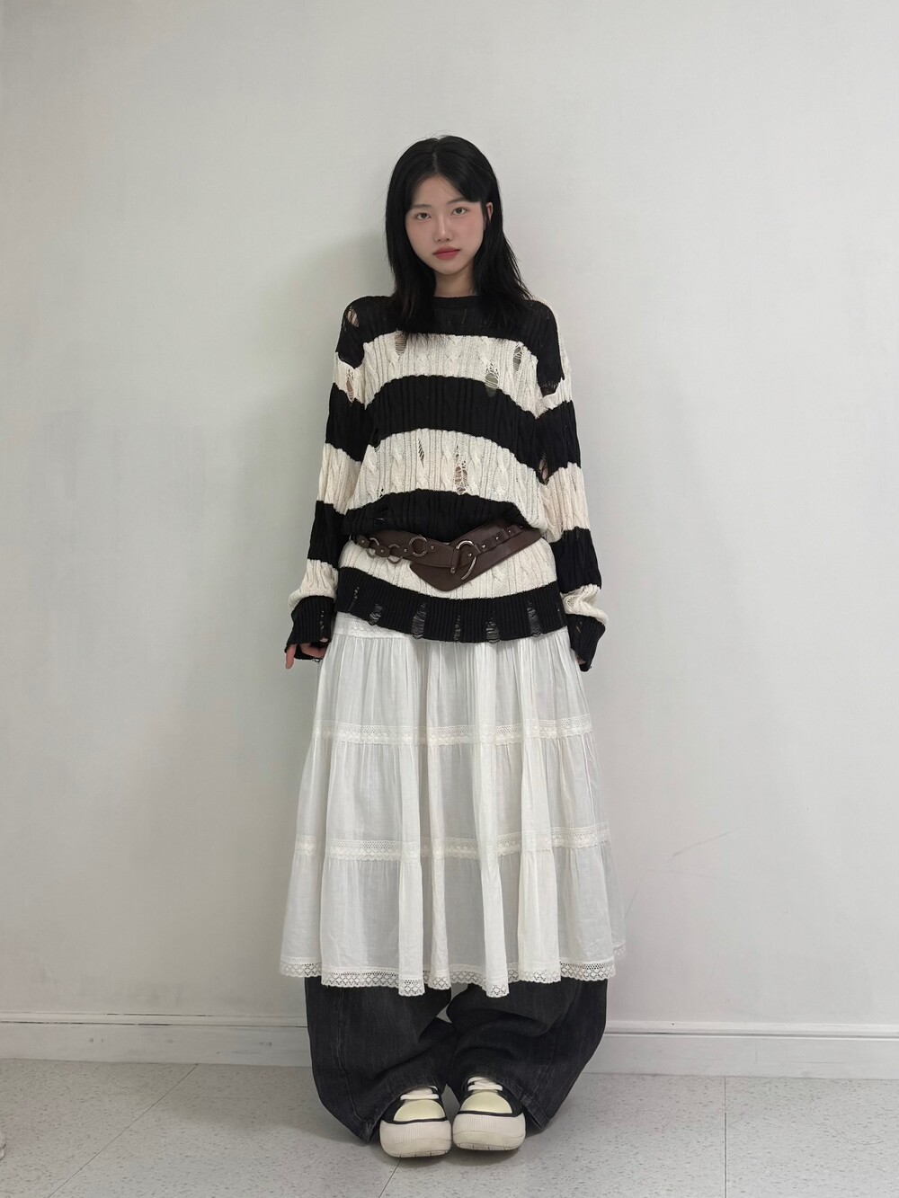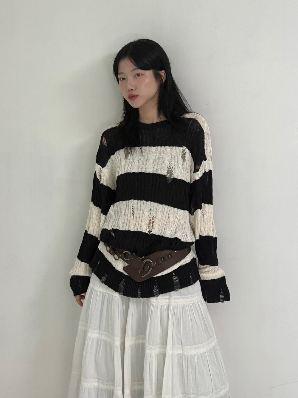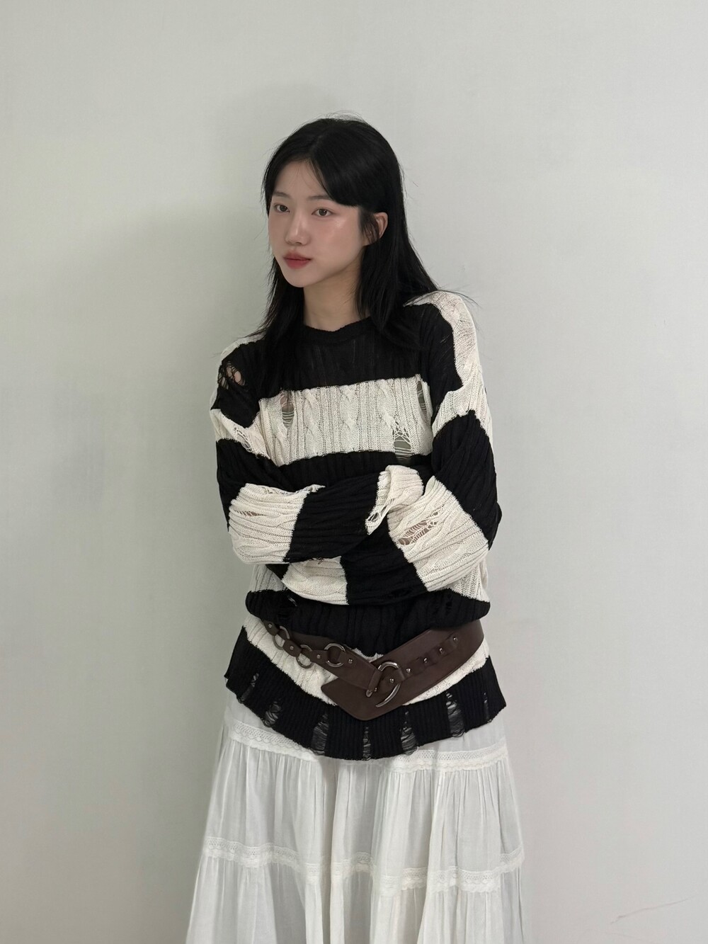 •키르시 그런지 니트 입니다! 여름에도 입어주시기 좋은 디자인이라 활용도도 좋고 입었을때도 루즈핏이라 넘 예뻐요
