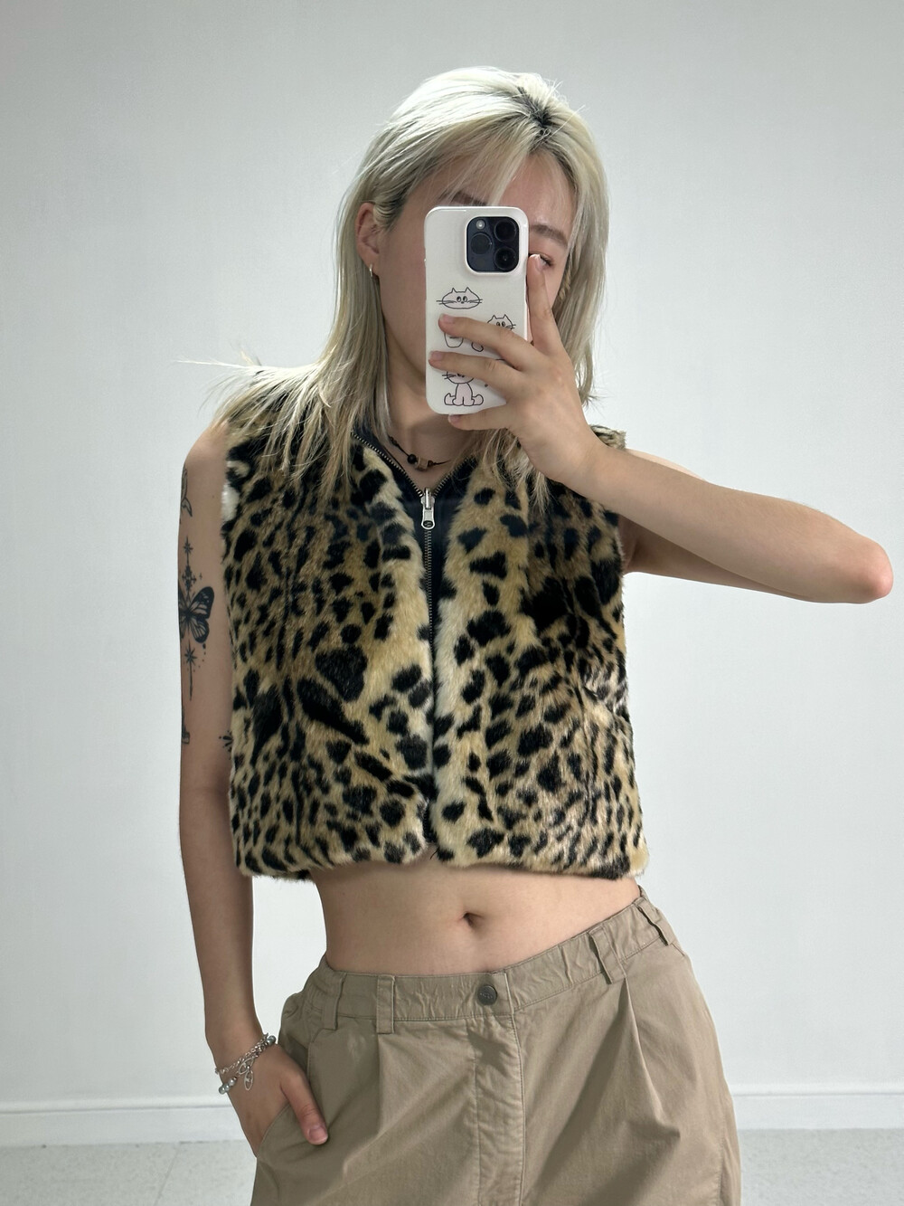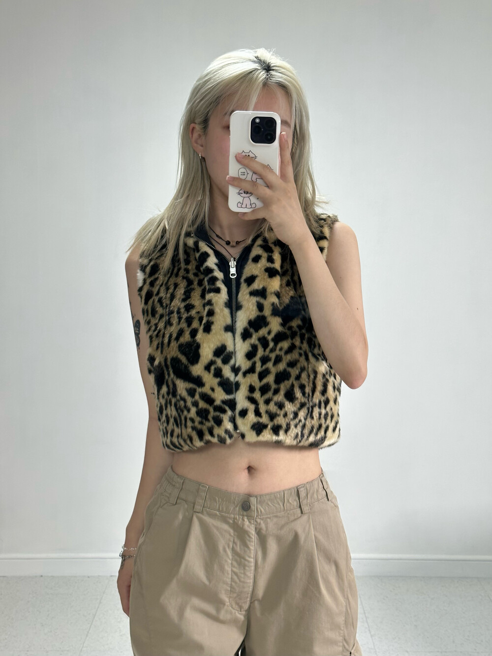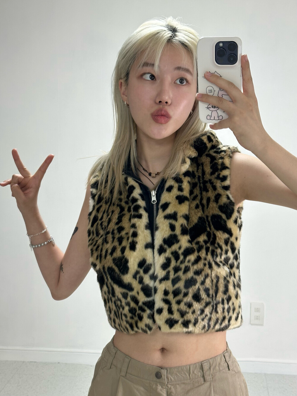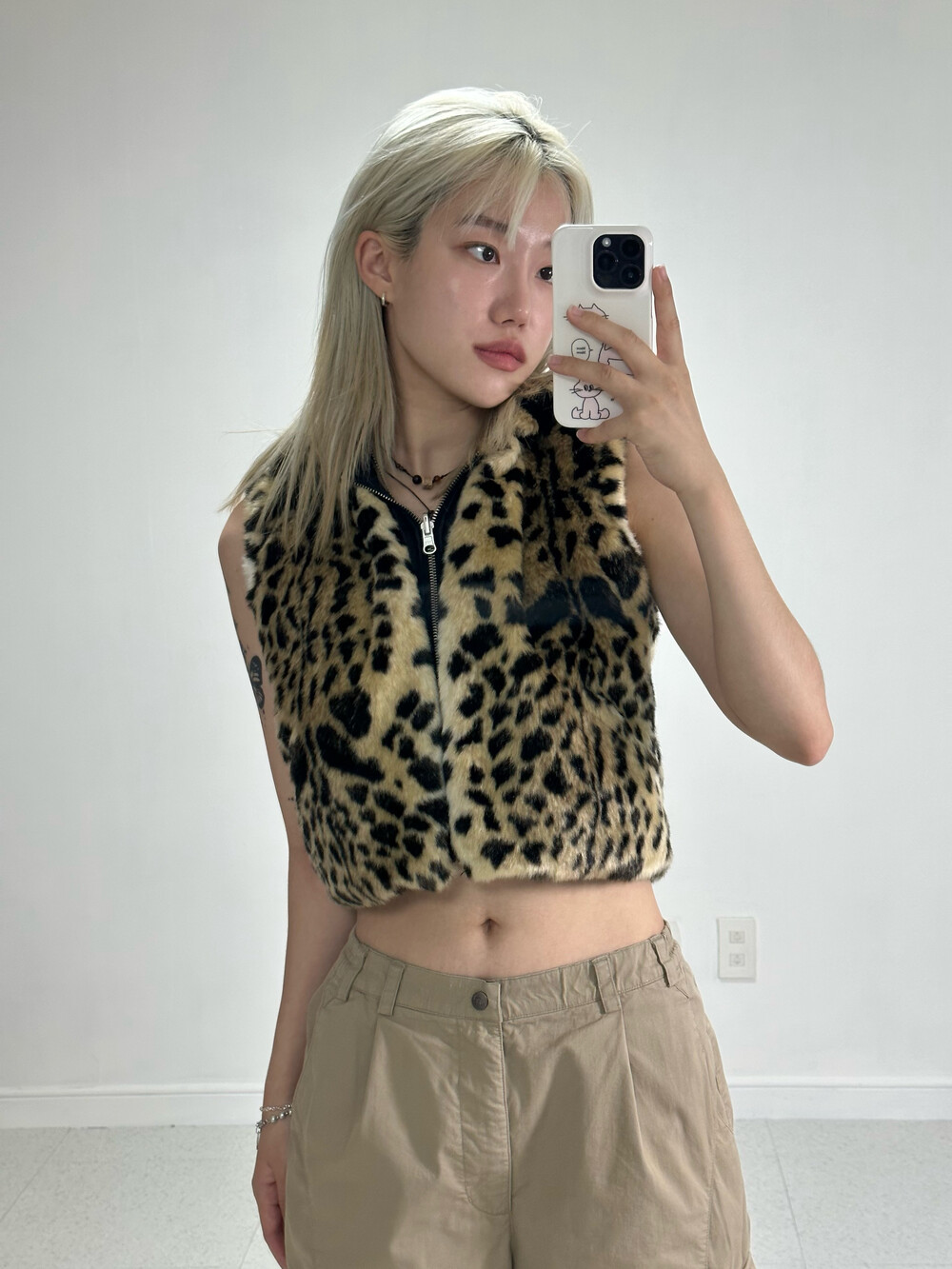 •키치,힙,섹시 무드 가득한 크롭 호피 리버시블 후드 베스트 집업!!!! 이름이 넘 길죠^^.. 그만큼 한 제품에 매력이 가득하게 담겨져 있다고 생각해주시면 감사하겠습니다!! 안에 간단한 탑과 함께 입어주셔도 좋고 겨울에는 딱 붙는 긴 탑과 함께 입어주시면 좋습니돠ㅎㅎ 심지어 리버시블 이라구용!