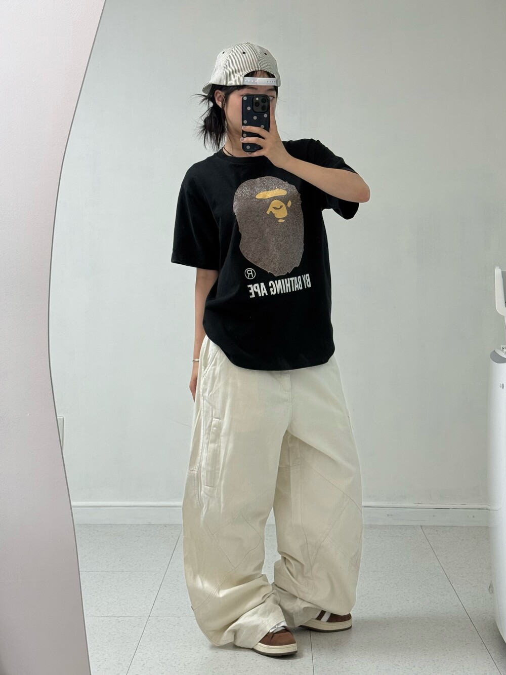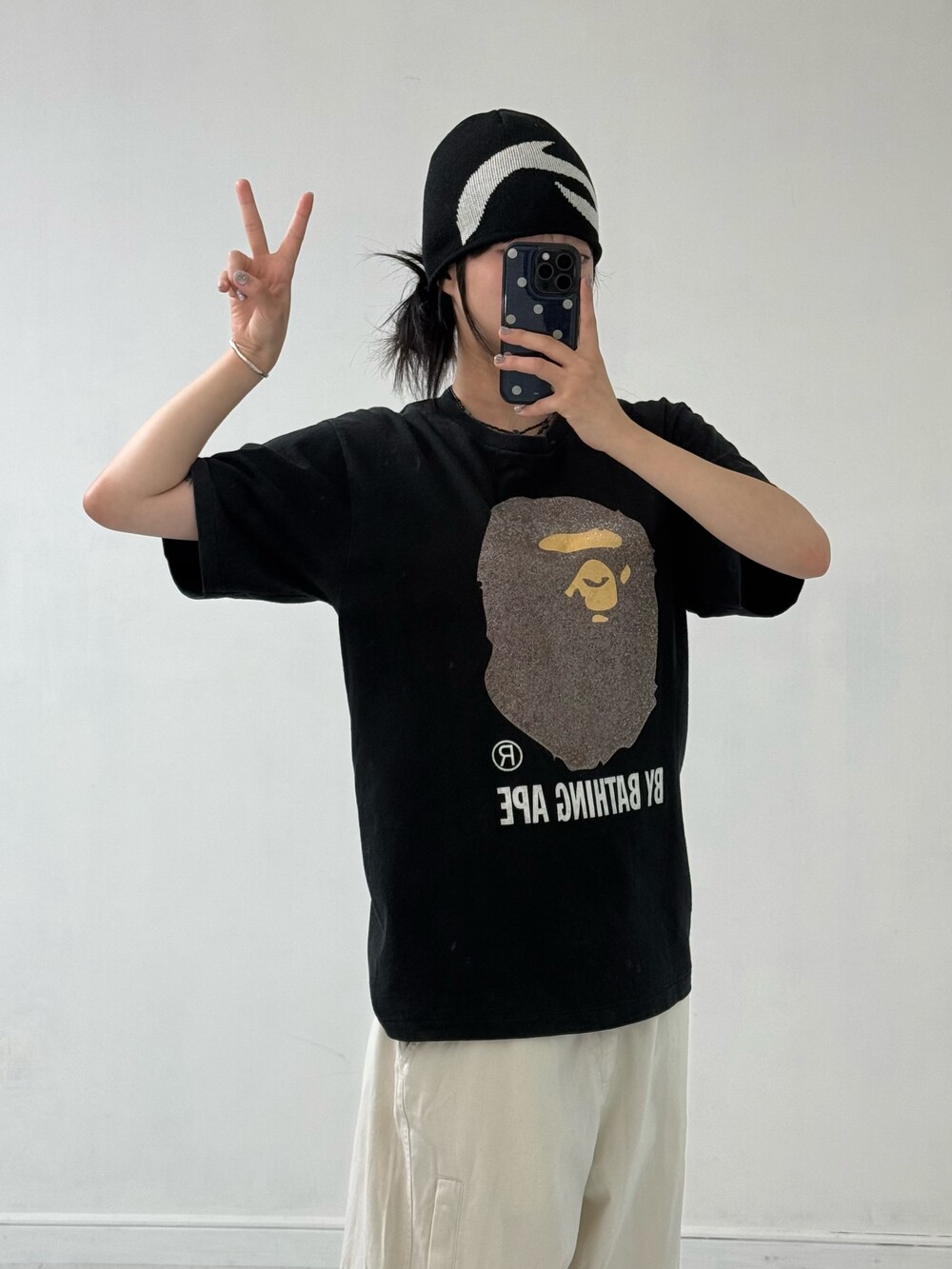 •베이프 빅사루 글래스 비즈 반팔티 입니다. 쉽게 볼 수 있는 디자인이 아니라는점,, 여름에는 단독으로 가을 겨울에는 롱슬리브와 함께 입어주세요!
