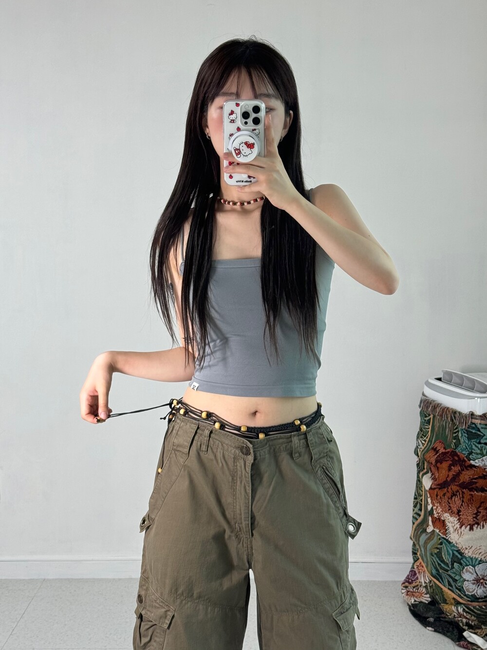 2.로우라이즈 팬츠 착용+크롭티 입어주시고 허리에 둘러주시면 섹시걸 완성.