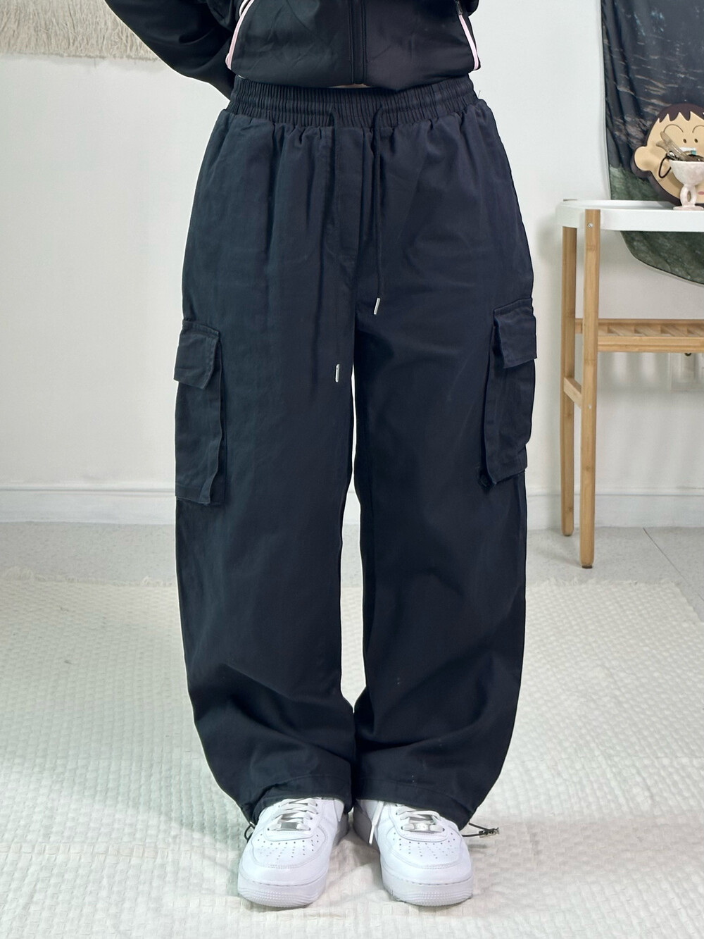 •베이직한 디자인이지만 아방하게 떨어지는 벌룬핏 카고팬츠에요! 밑단 쭈리가 있어 조거로도 연출가능해요ㅎㅎ