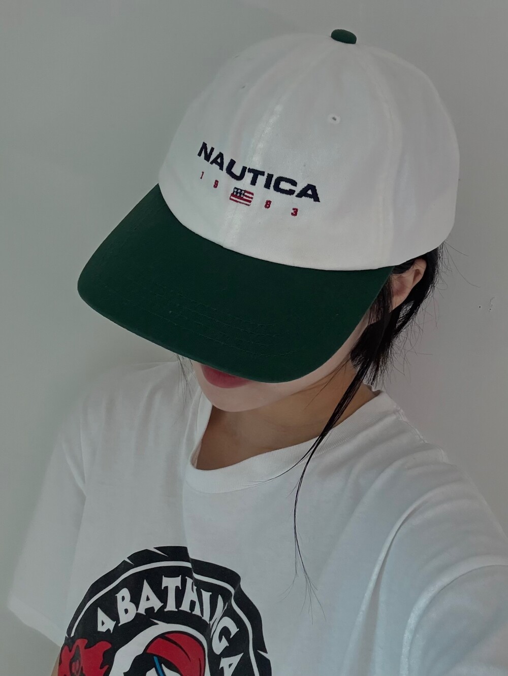 화이트+그린 배색 조합이 넘 귀여운 노티카 캡 입니다! 깔끔한 디자인과 로고가 아주 손이 자주 갈 것 같아요ㅎㅎ