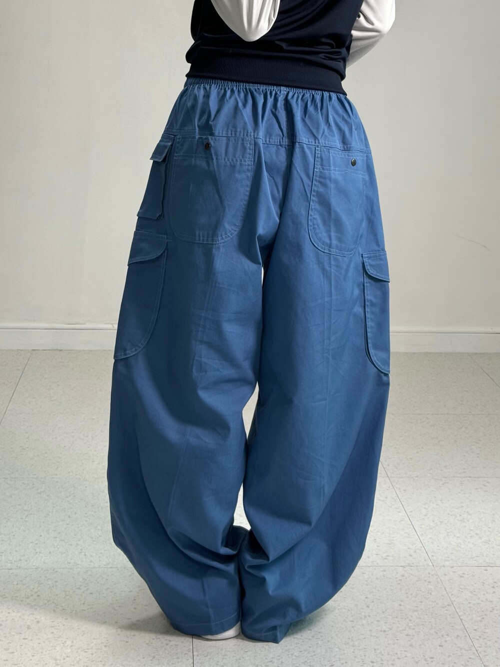 •블루컬러감이 귀여운 카고팬츠>,< 허리도 밴딩이라 편안하게 착용하시기 좋고 핏도 아주 굿ㅎㅎ