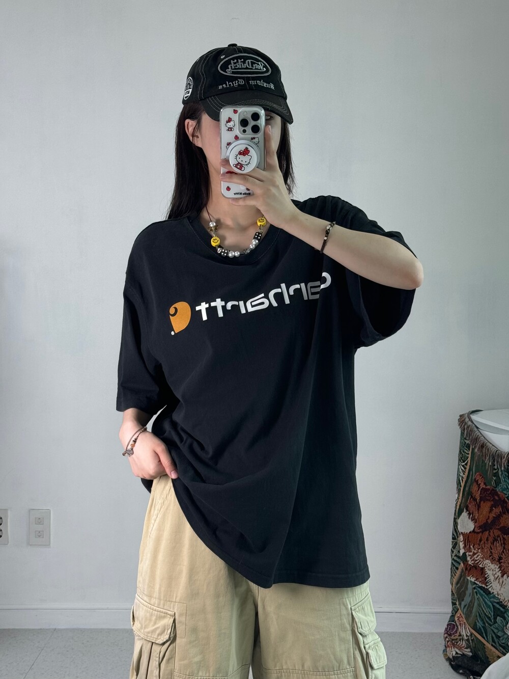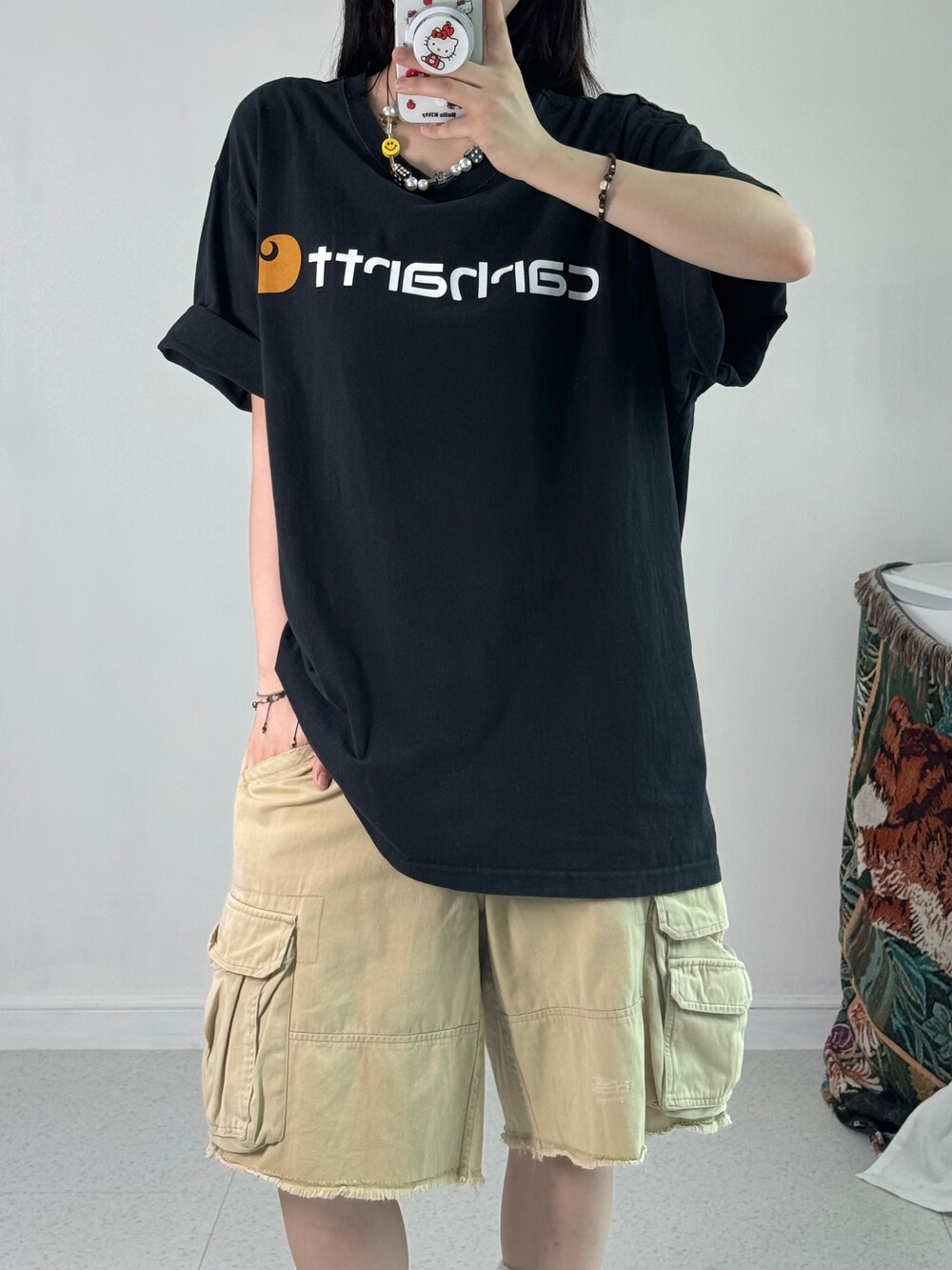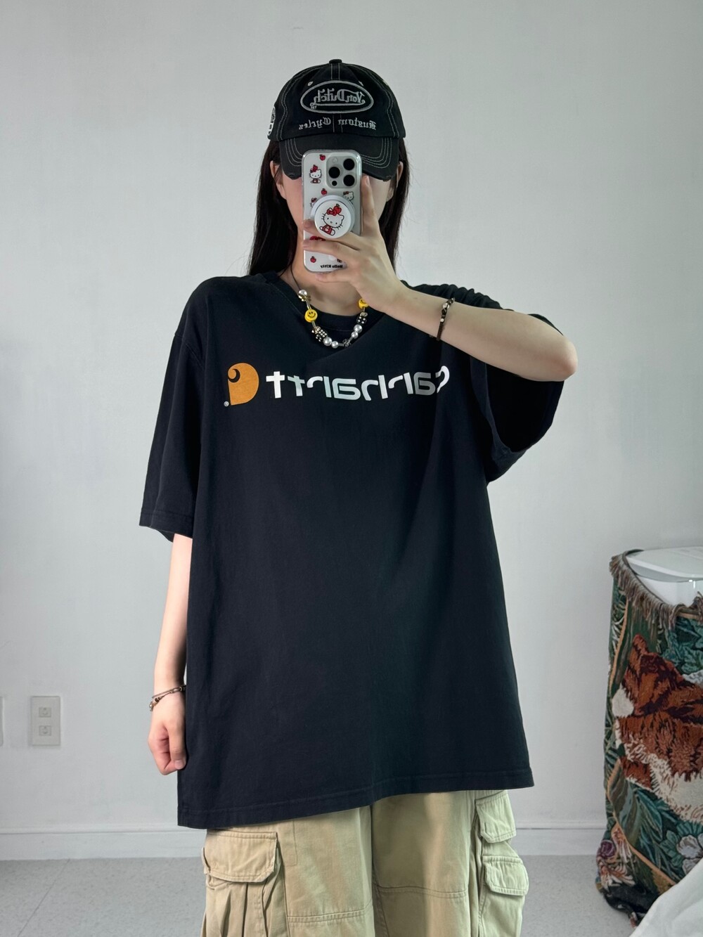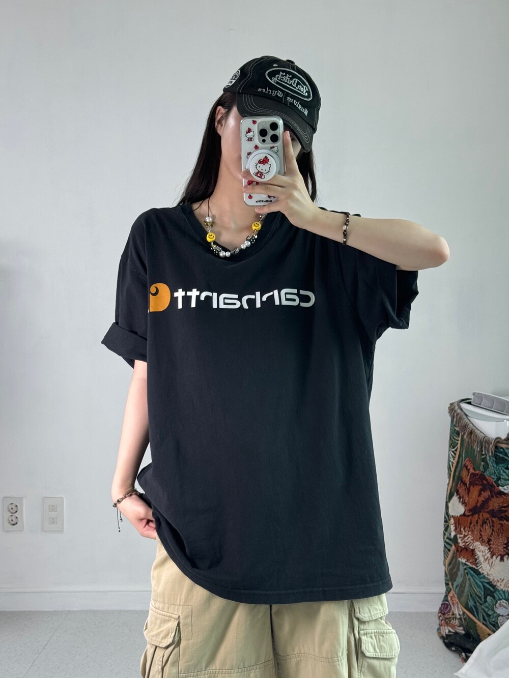 •완전 아방사이즈 칼하트 반팔이에요ㅎㅎ 로고가 크게 들어가있어 심심하지 않고 코디하는데 어렵지도 않아요-!
