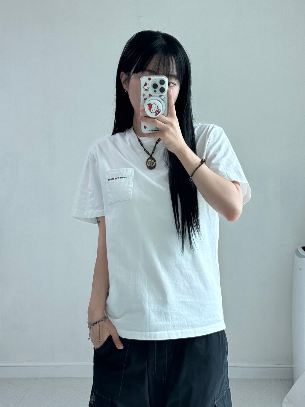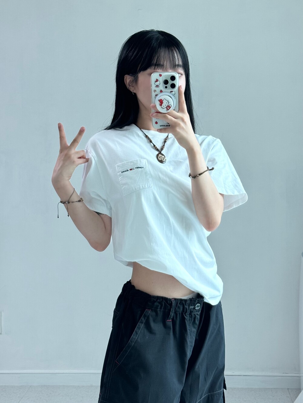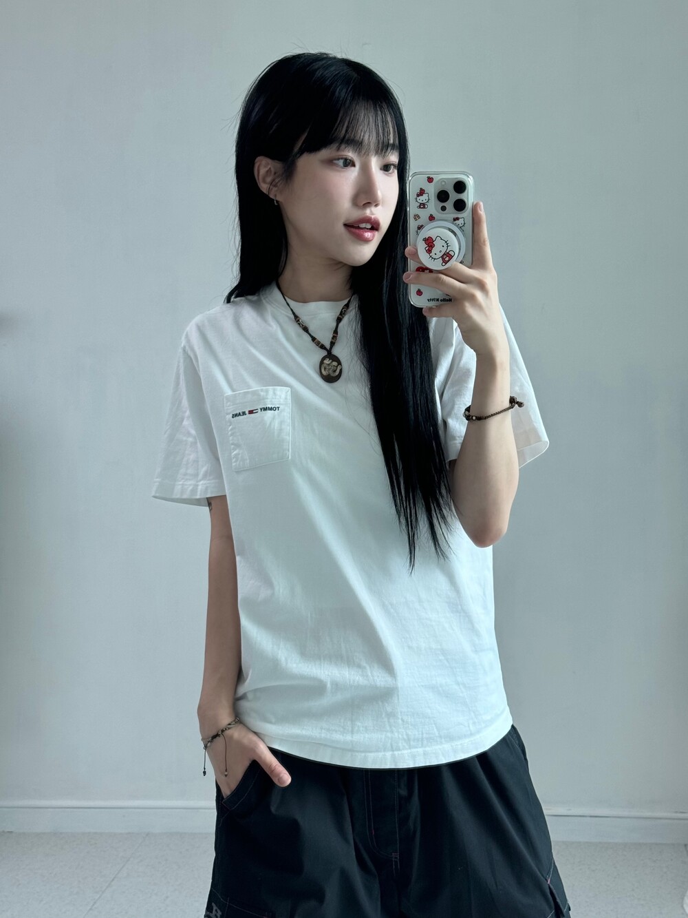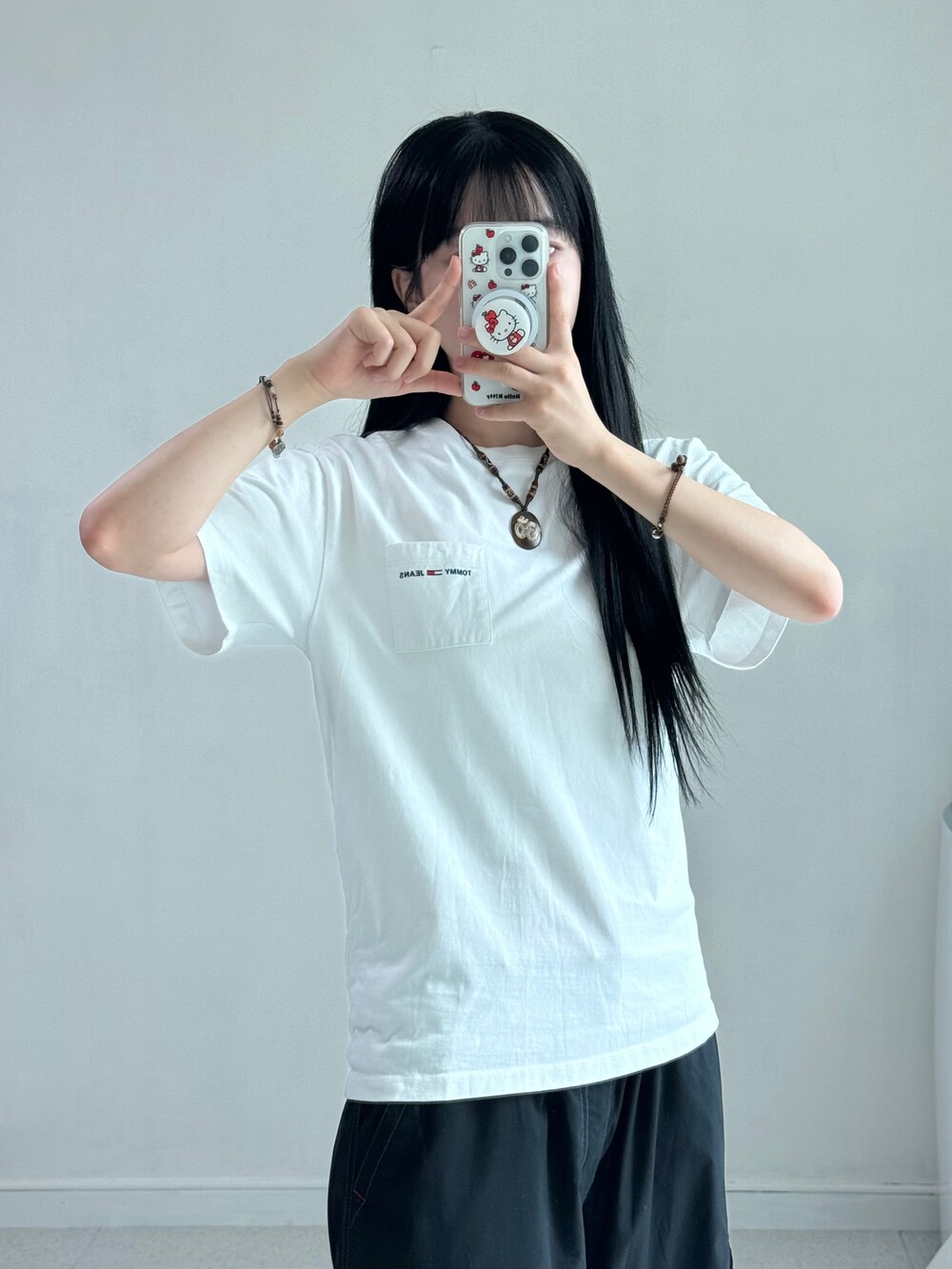 •깔꼼 화이트 컬러와 타미힐피거 자수 디테일이 들어간 데일리 아이템ㅎㅎ 사실 요런 아이템은 갖고 있으면 꾸준히 사계절 내내 즐겨입어주시기 좋은 반팔이에요✌🏻