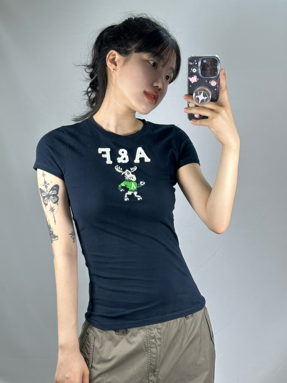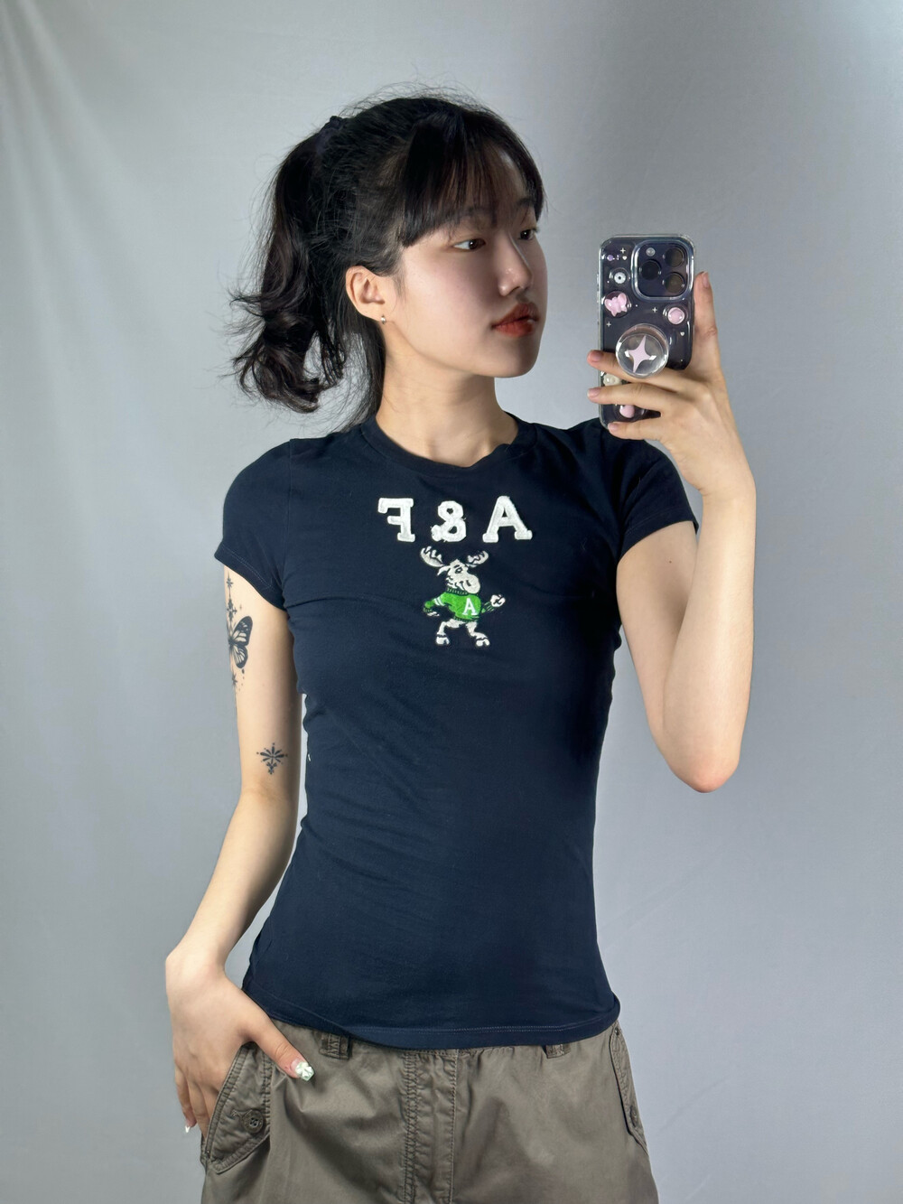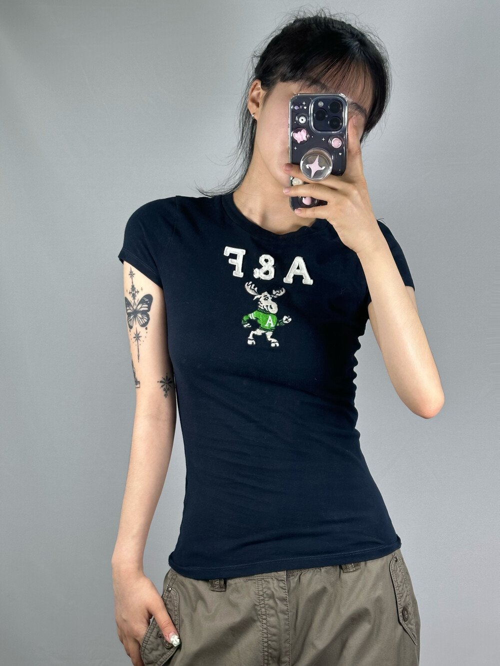 •아베크롬비의 반팔이에요! 네이비 컬러에 쫀쫀한 원단이라 상체 라인을 잘 잡아주고 그만큼 말라보이고 덥지 않은 재질이라 더욱 여름에 입기 좋은 반팔이에요!