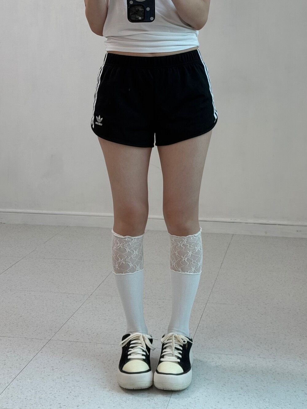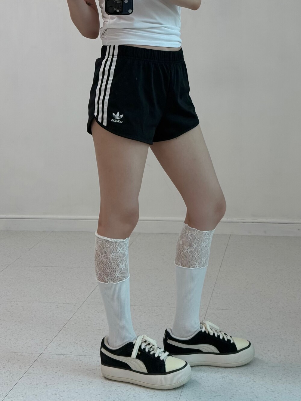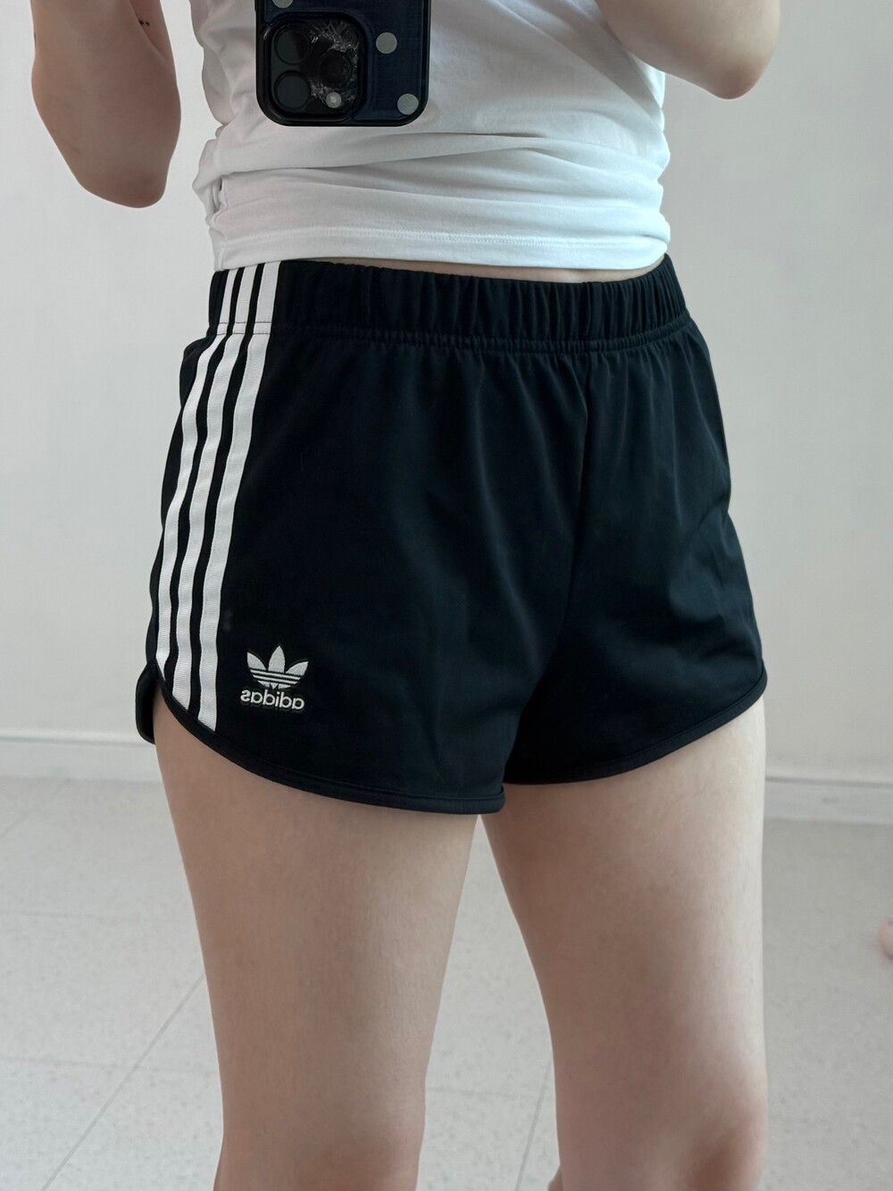 •아디다스 파이어버드 로고 숏팬츠 입니다. 골반라인을 잡아줘서 너무 예뻐요-!