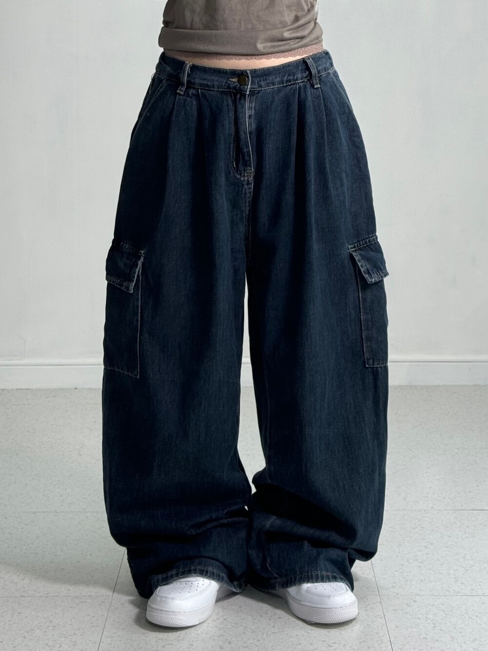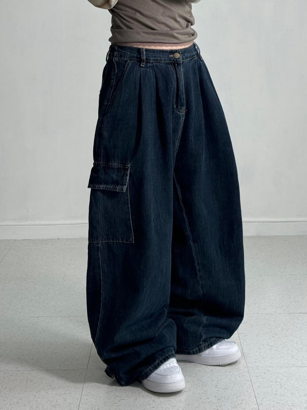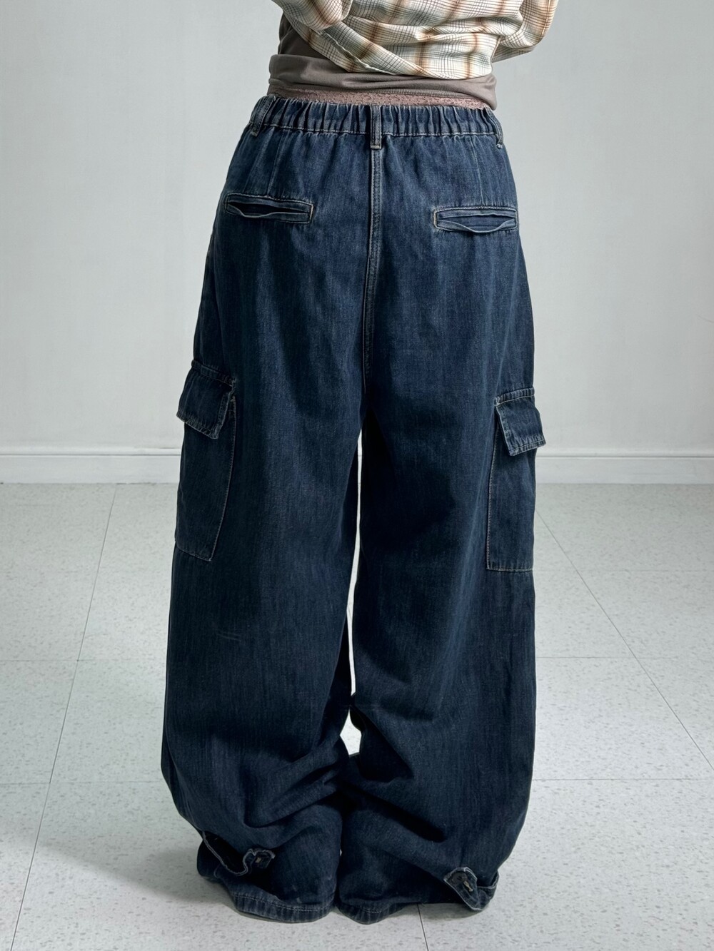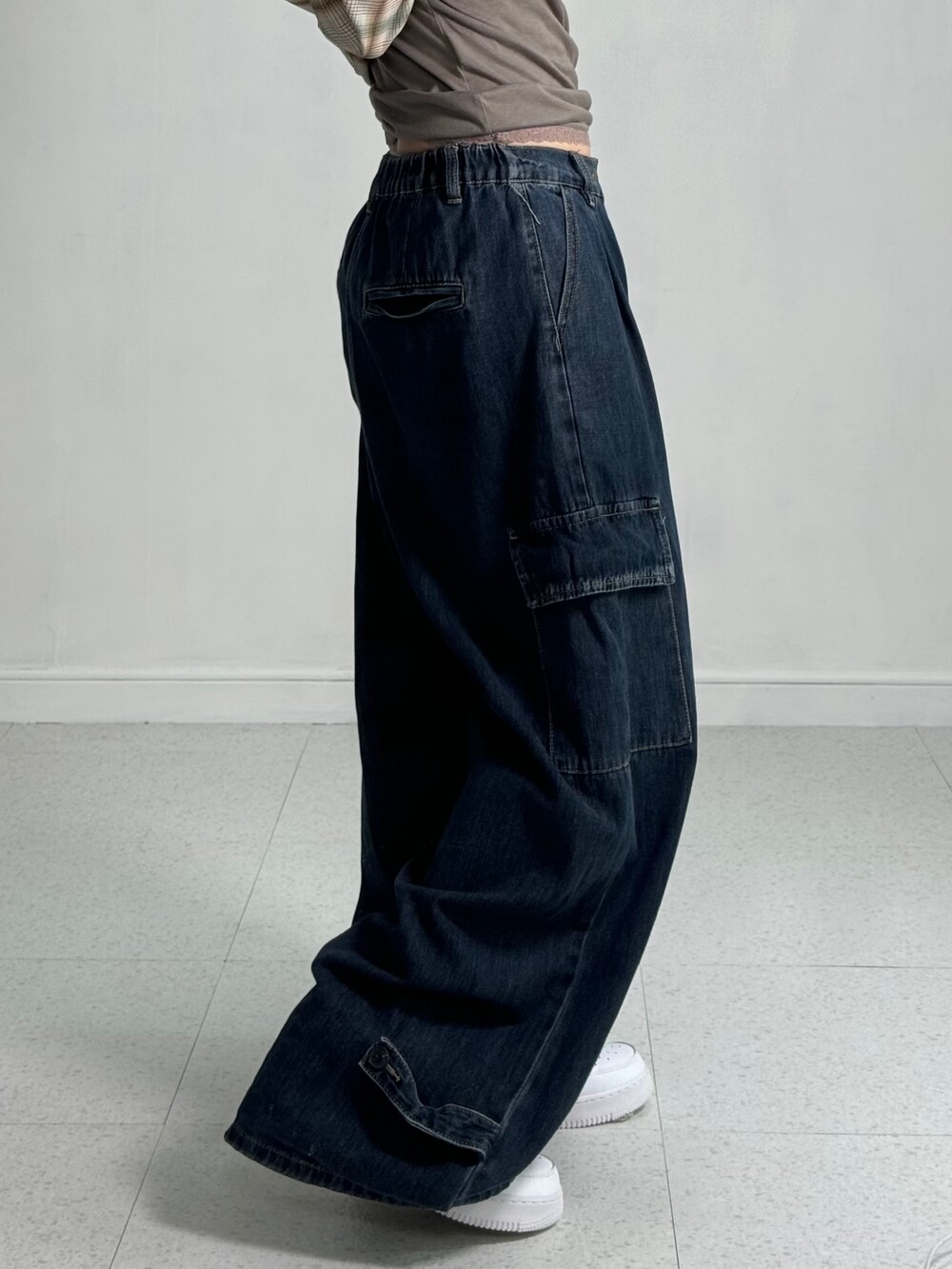•진짜 실물이 훨씬 예쁜 데님벌룬카고팬츠.. 허리 부분밴딩이라 더욱 편하게 착용가능하시고 밑단쪽 똑딱이 디테일 한번 확인해주세요>,<