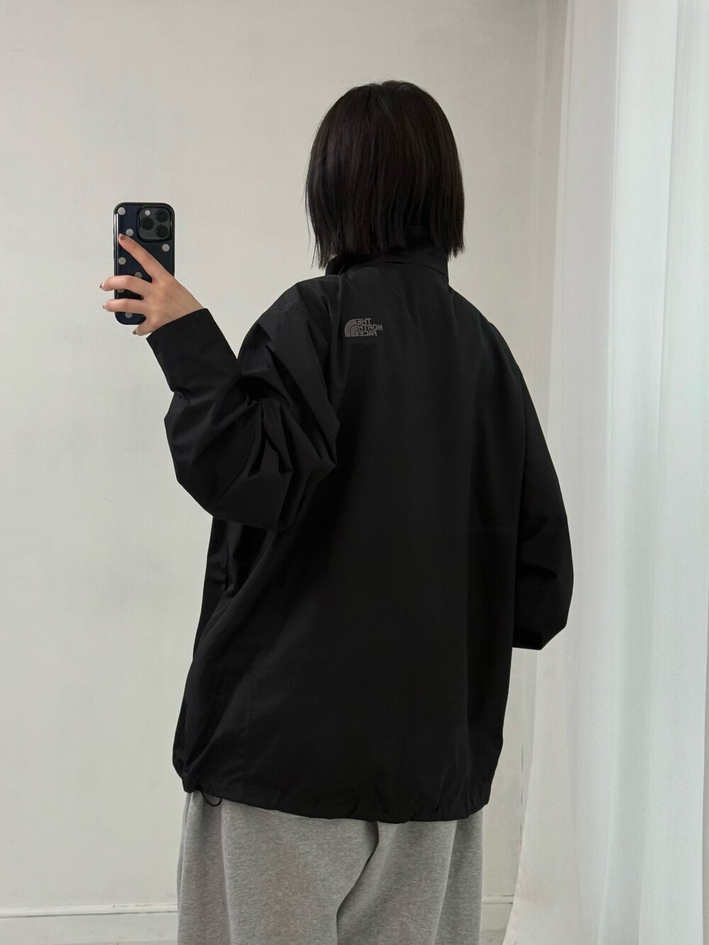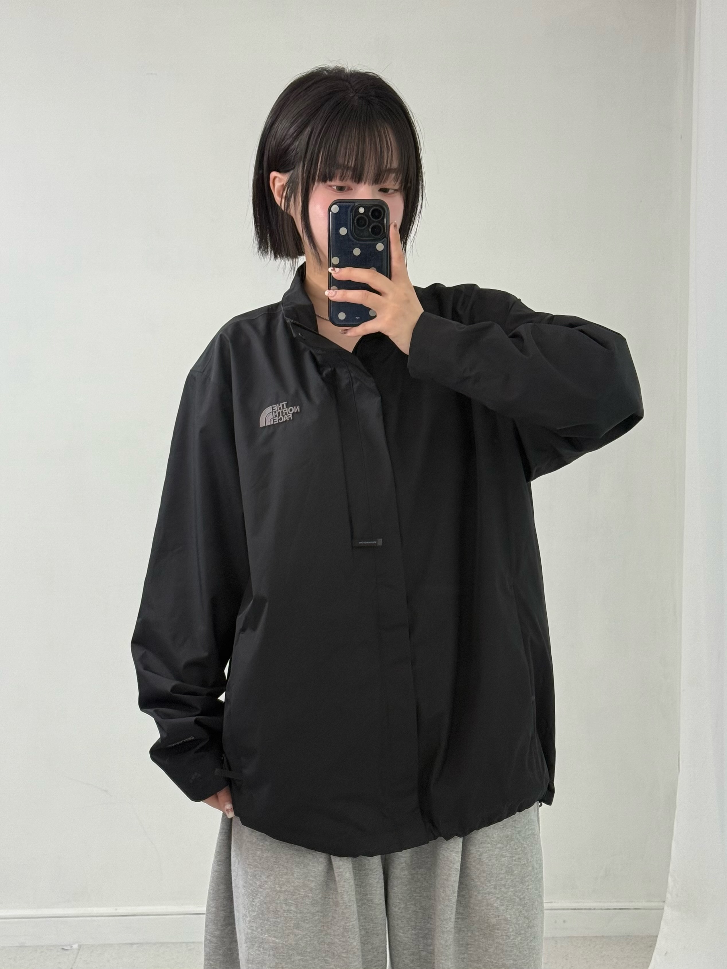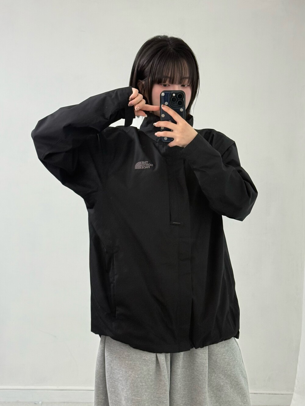 •노스페이스 블랙 바람막이 입니다. 110 사이즈에 밑단 스토퍼가 있어서 오버핏 좋아하시는 분들은 충분히 착용가능!