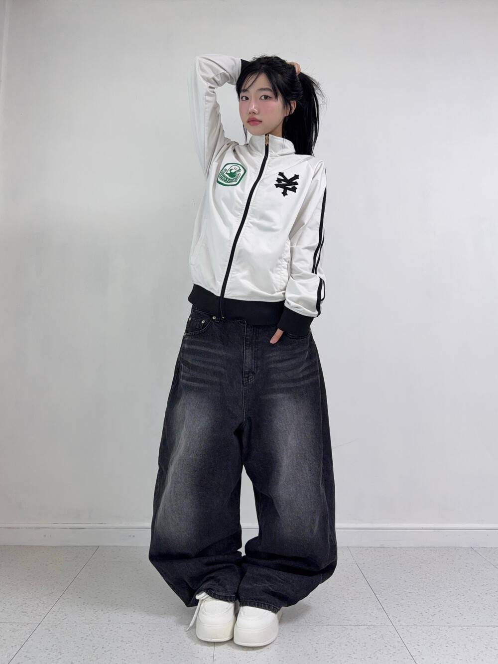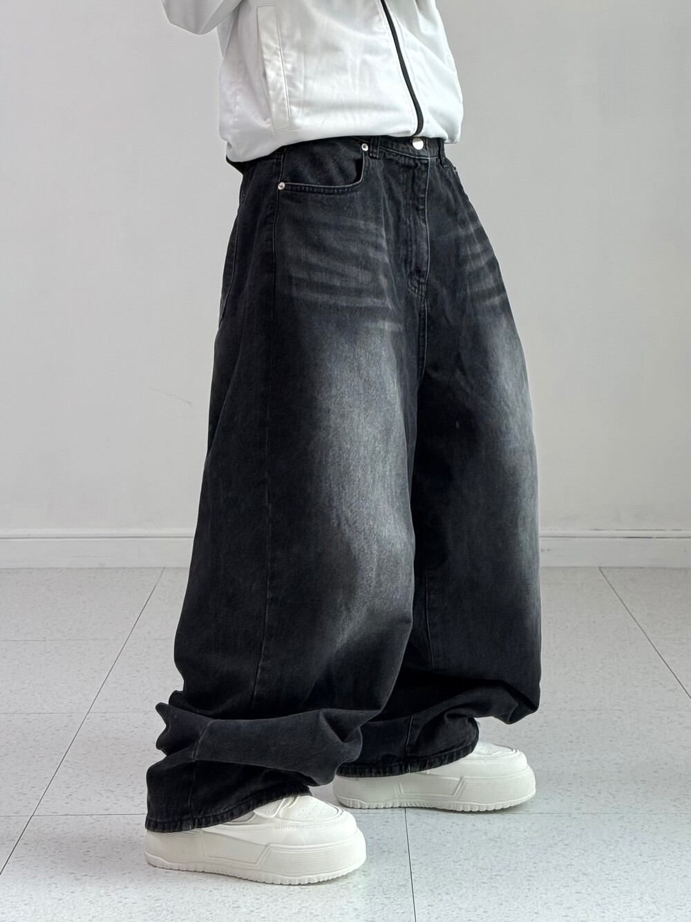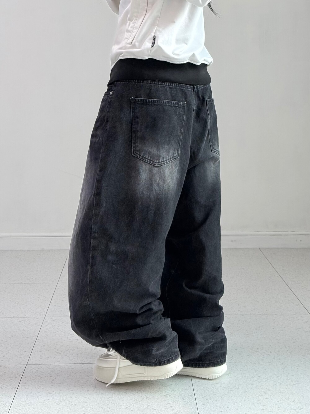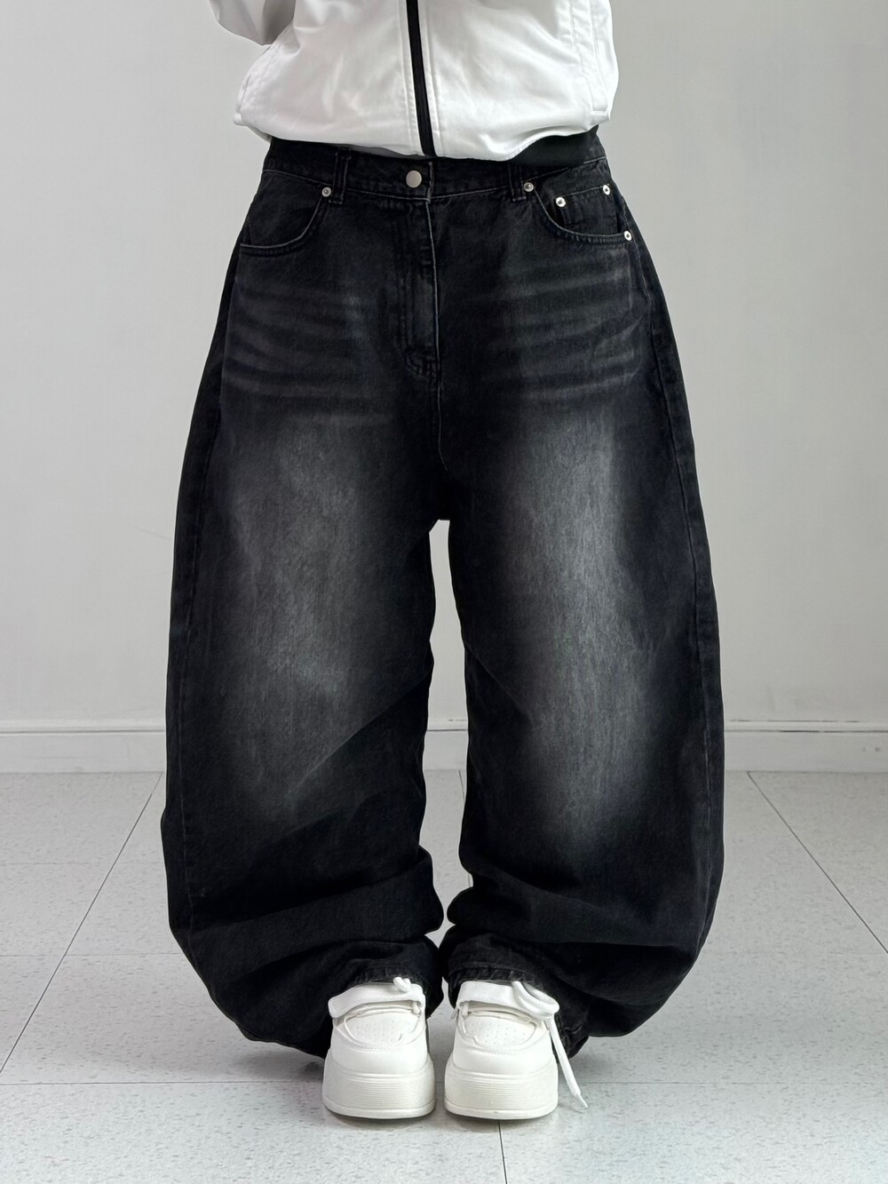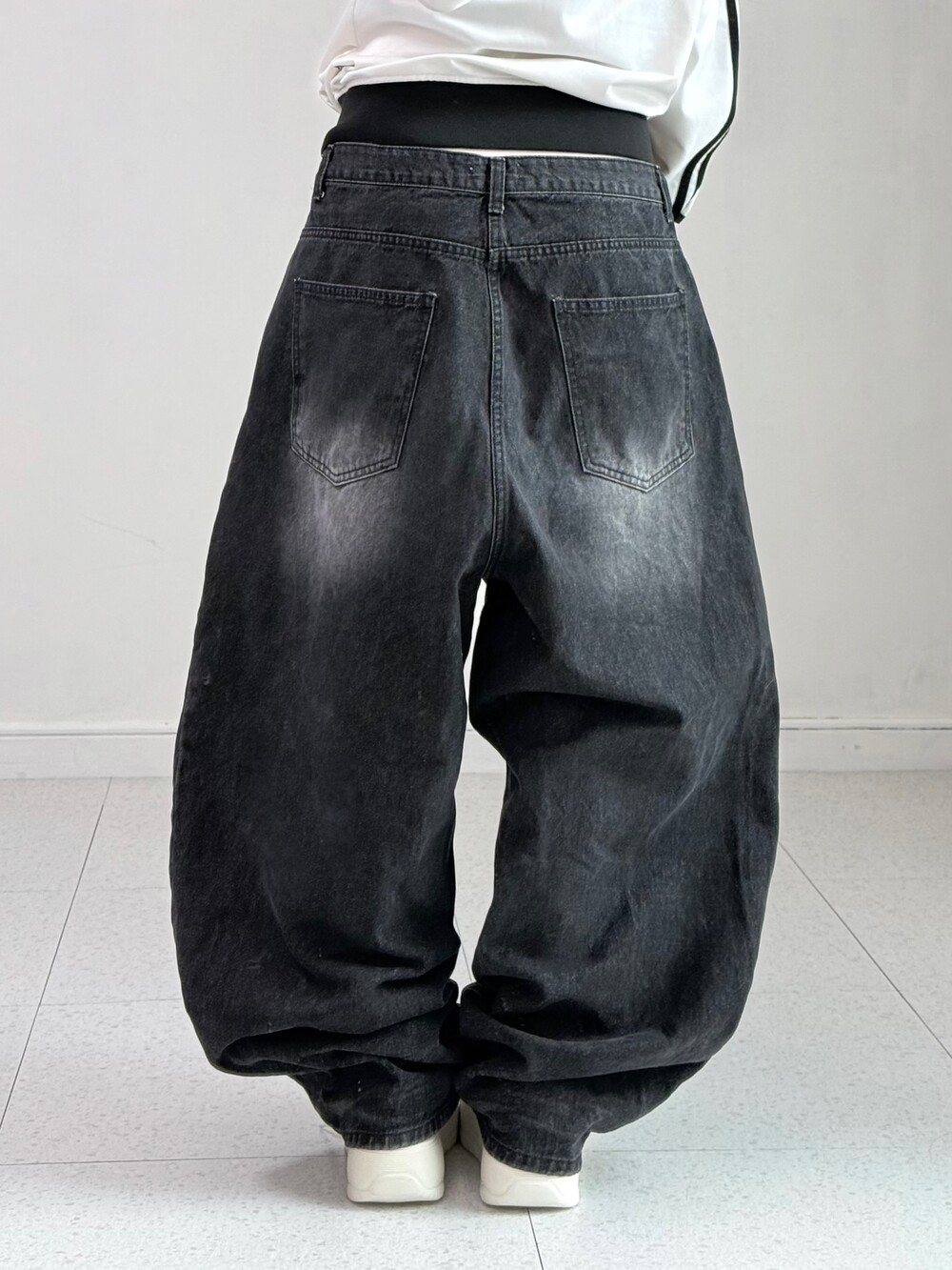 •벌룬핏의 블랙 워싱 데님팬츠 입니다! 하나쯤 갖고 있어야하는 필수템이지요-ㅎㅎ 데일리템으로 입어주시기도 좋지만 힙한 무드까지 연출하시기 좋은 팬츠에요! 앞 뒤로 워싱이 정말 예쁘게 잘 들어가있지요 히히