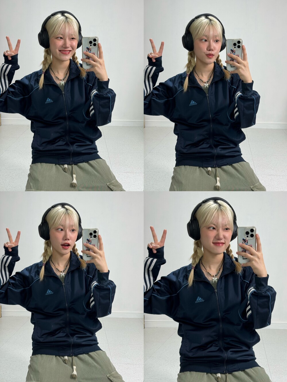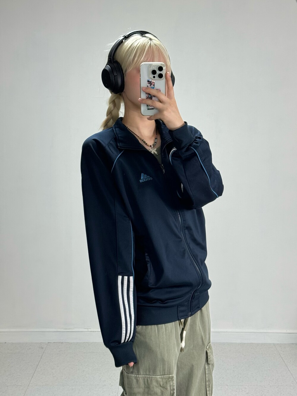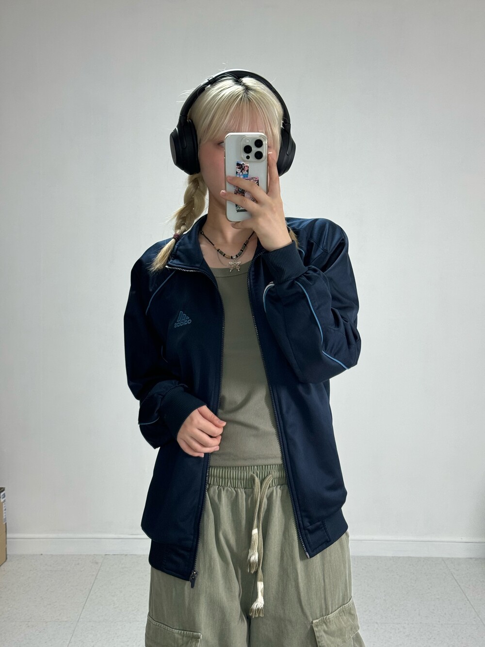 •네이비 아방루즈 져지 입니다! 하늘색 에센셜 로고가 무진장 사랑스러워요 ✌🏻