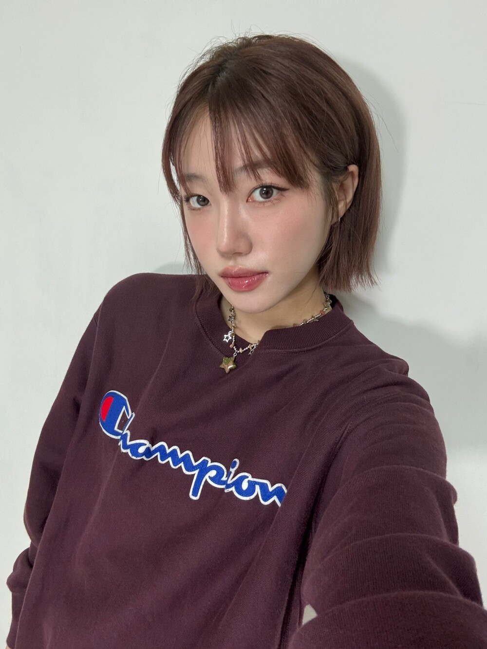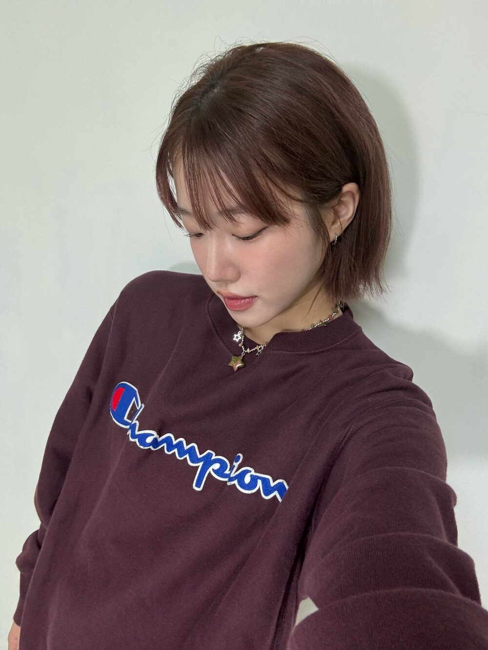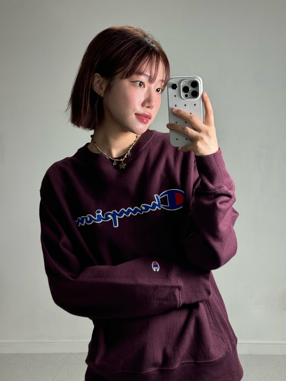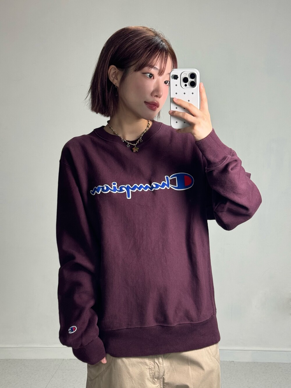 •버건디 컬러라 더 예쁜 챔피온 맨투맨! 귀여운 아방핏이에요 ㅎㅎ(기모있음)