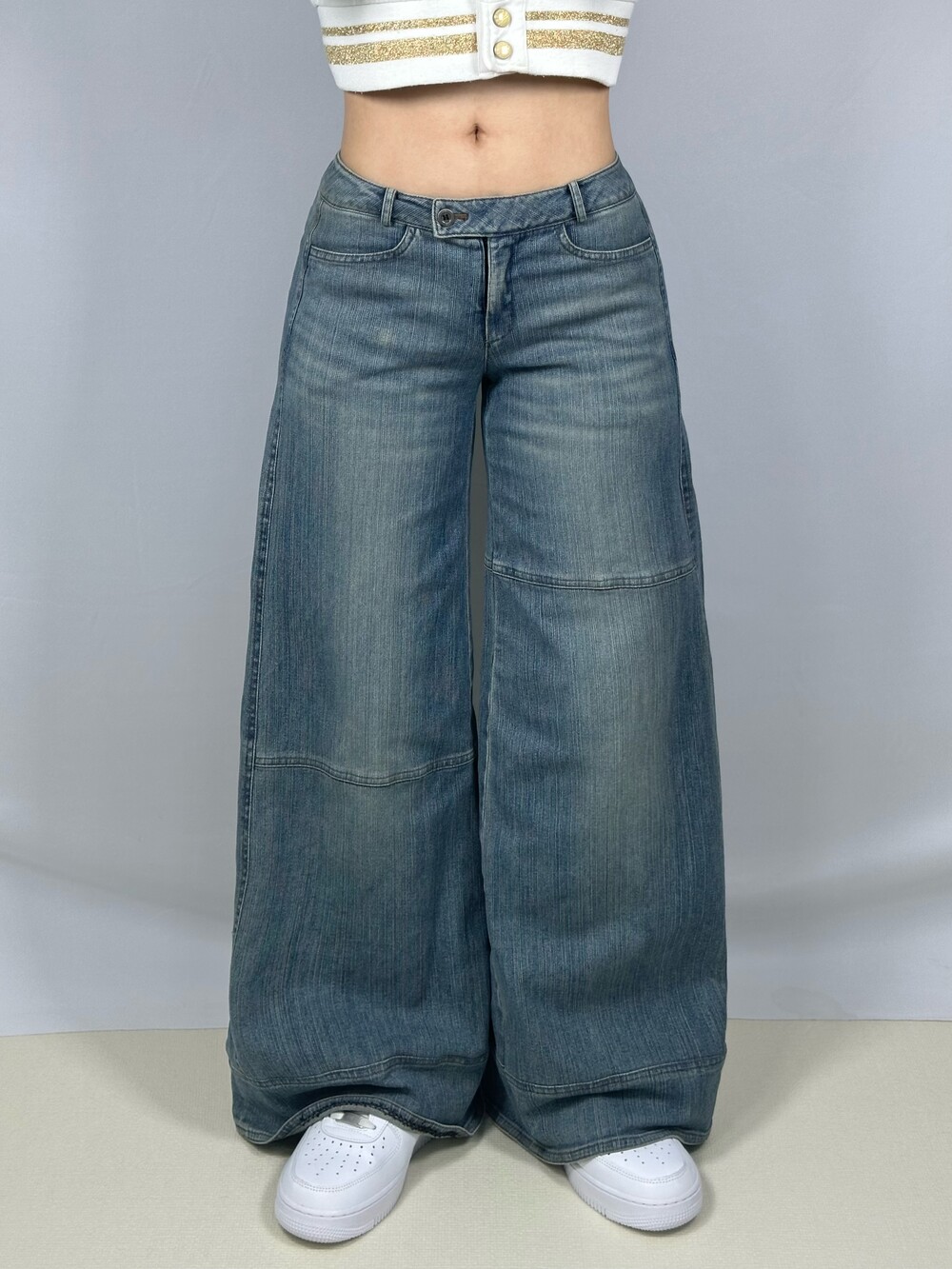•골반에 걸쳐 입는 로우라이즈 팬츠에요! 밑단으로 갈수록 넓어지는 핏이 완전 멋스럽구요,, 와이존 부각도 없어서 더욱 마음에 들었어요!