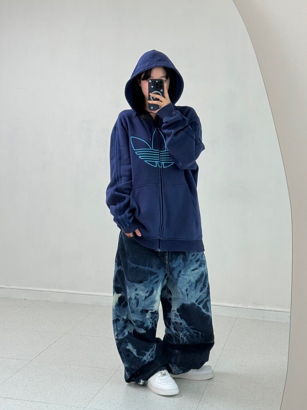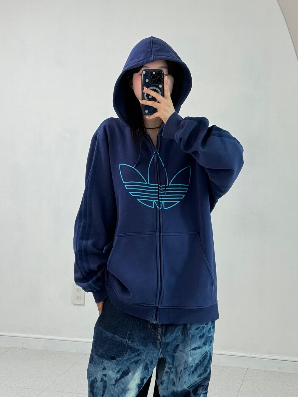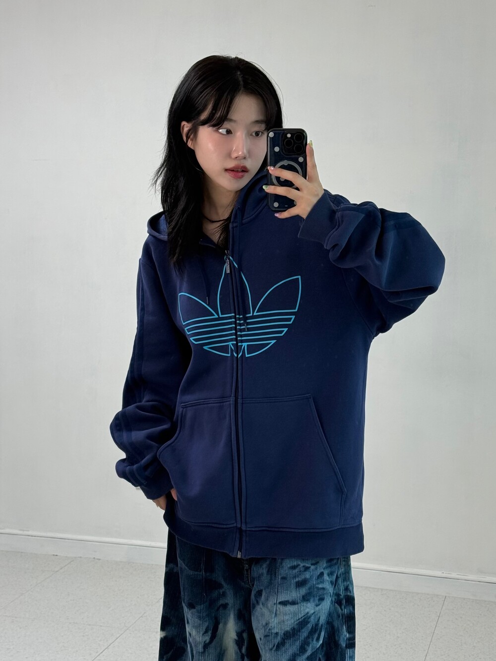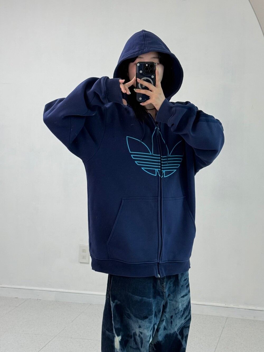 •아디다스 오버핏 후드집업 입니다! 빅로고가 너무 멋드러지는 아이템이에요 ㅋ,ㅋ (기모 있음)