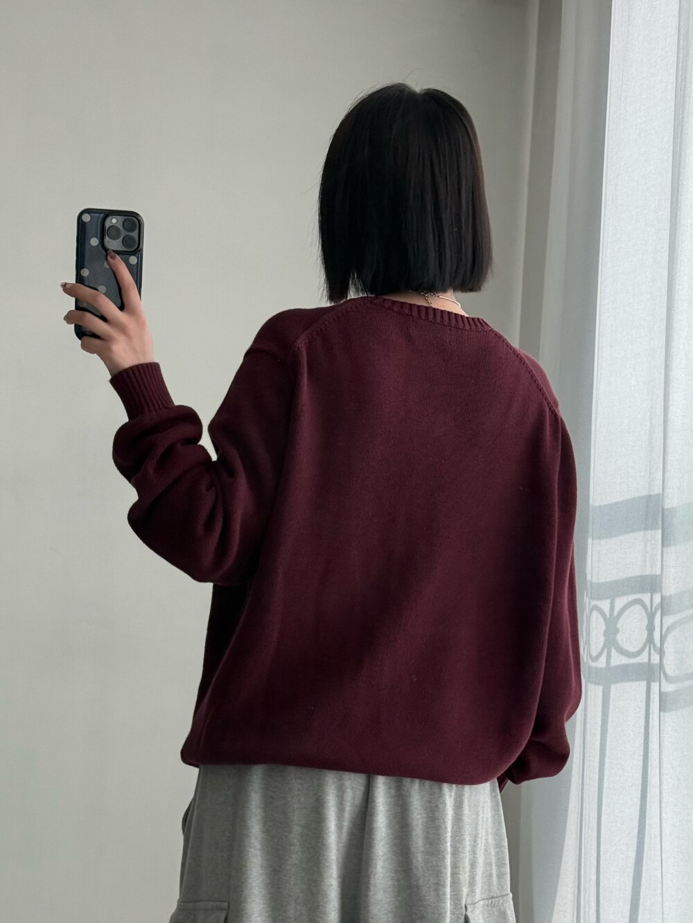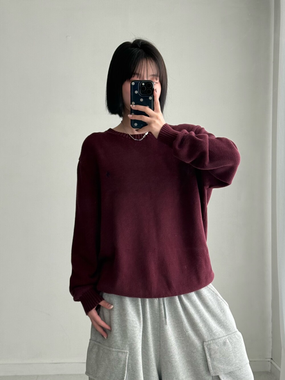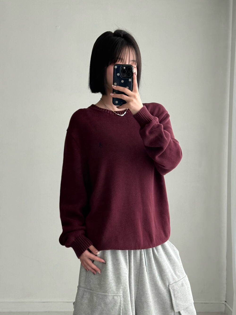 •폴로 버건디 니트에요- 낭낭 오버핏에 QR인증까지 가능한 신형 제품이에요! 심지어 넘 예쁜 버건디,,❤️