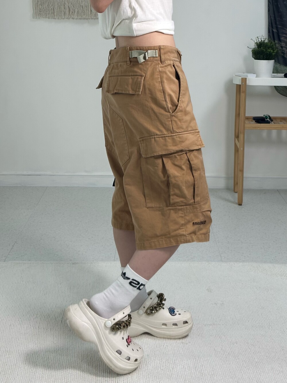 •묵직한 원단에 와이드한 실루엣이 굉장히 멋스러워요! 브라운 하프팬츠라 데일리로 마구 착용하기 좋아요<3