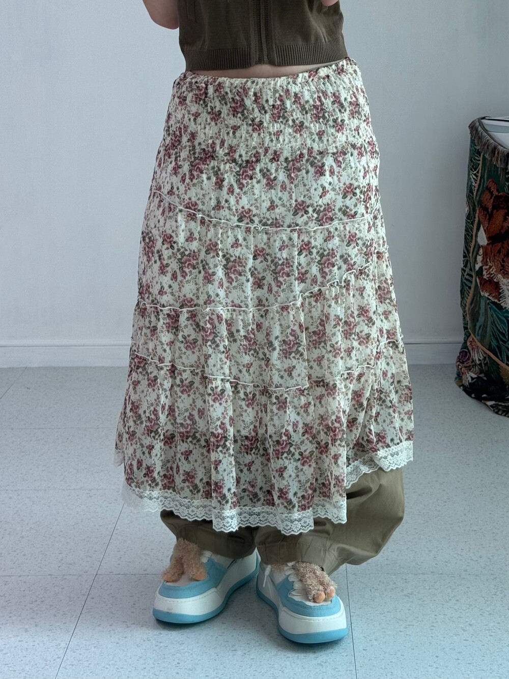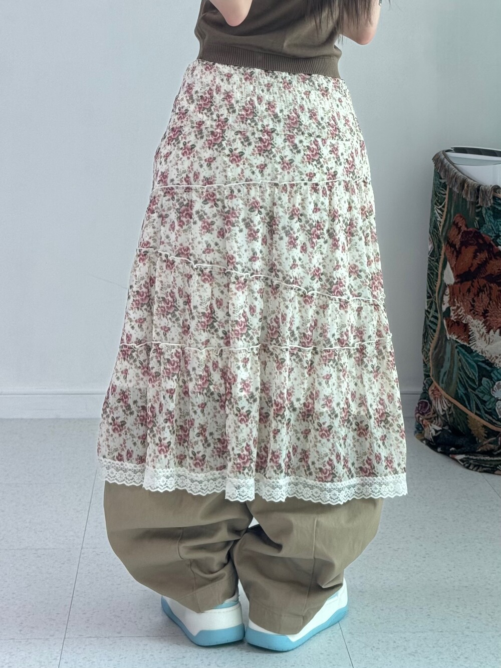 •배경이 은은한 베이지에 빈티지한 로즈 디자인이 들어가있는 매력적인 아이템이에요! 레이어드로 착용해주셔도 좋고 단독으로 샤랄라 빈티지하게 입어주시기 좋아요!