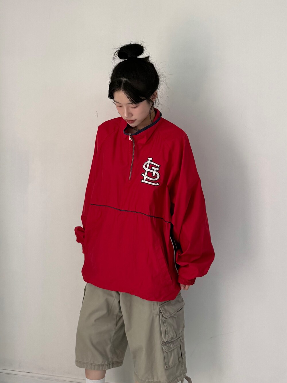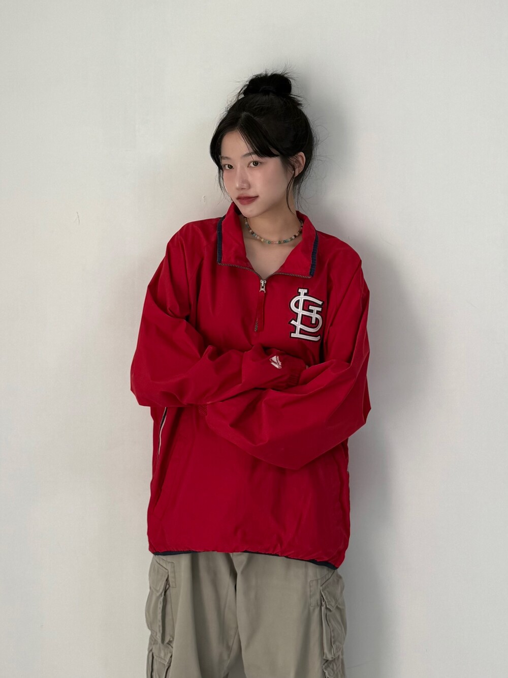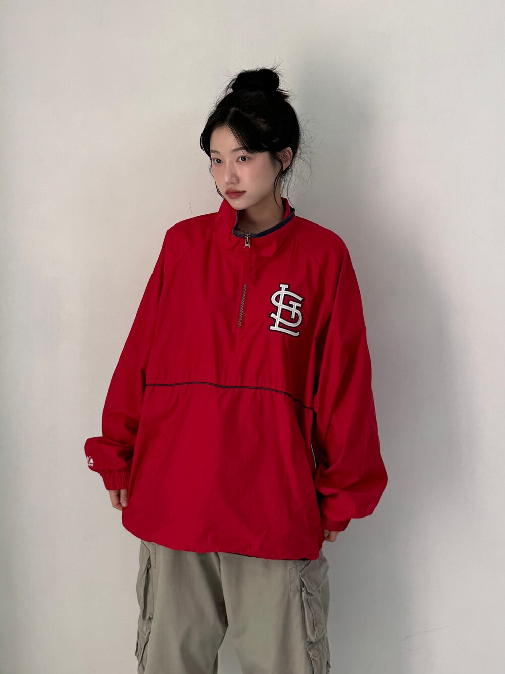 •마제스틱 팀 세인트루이스 아노락 입니다. 오버핏+ 레드 컬러감이 포인트로 입어주시기 좋습니다! 핀터깔 스트릿st 뭔 말인지 아시져