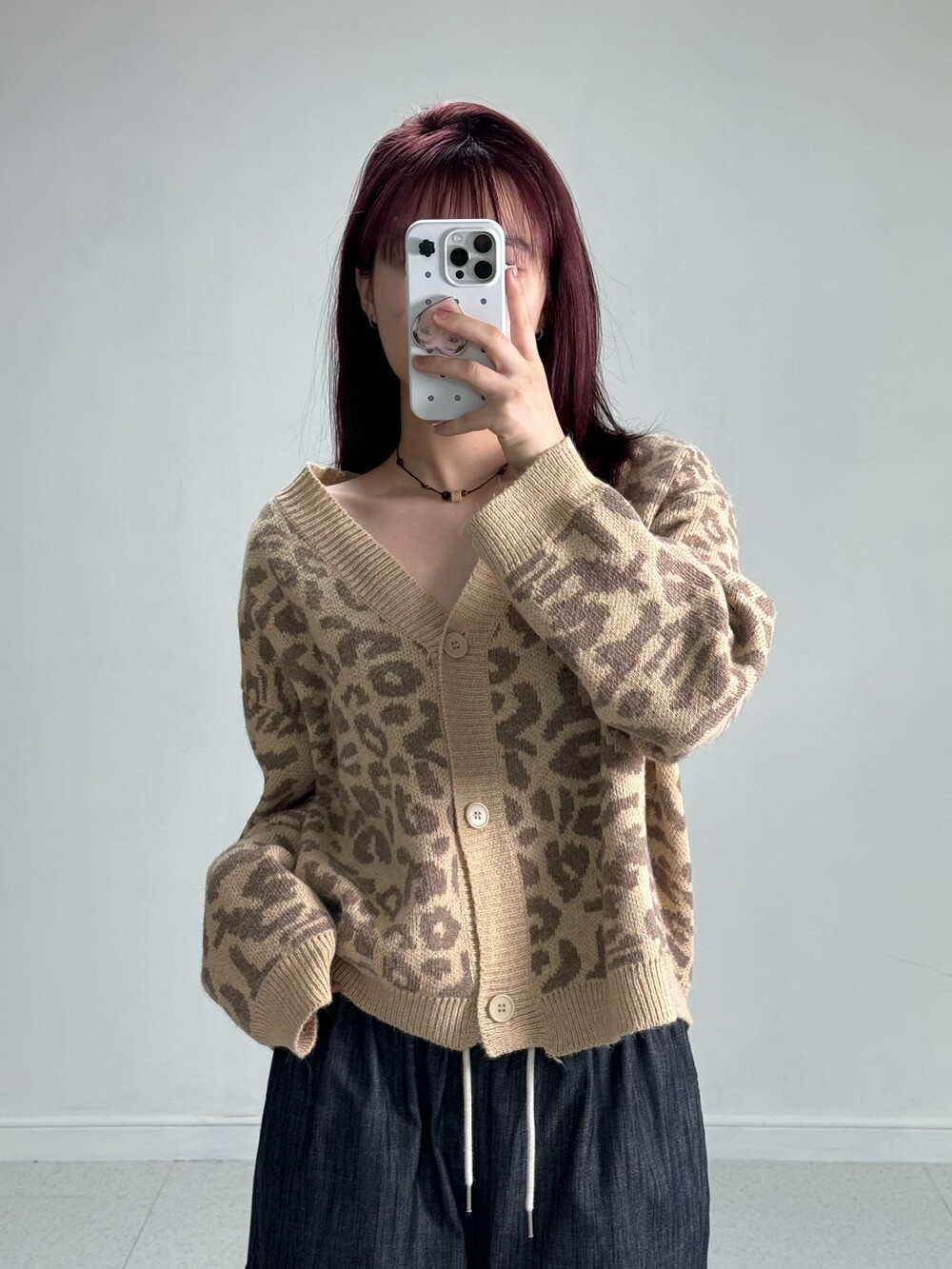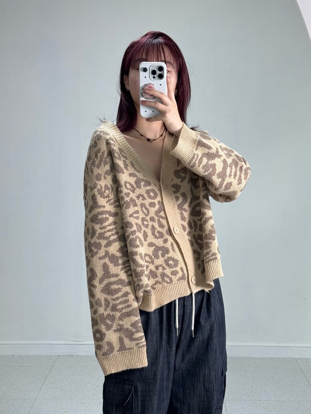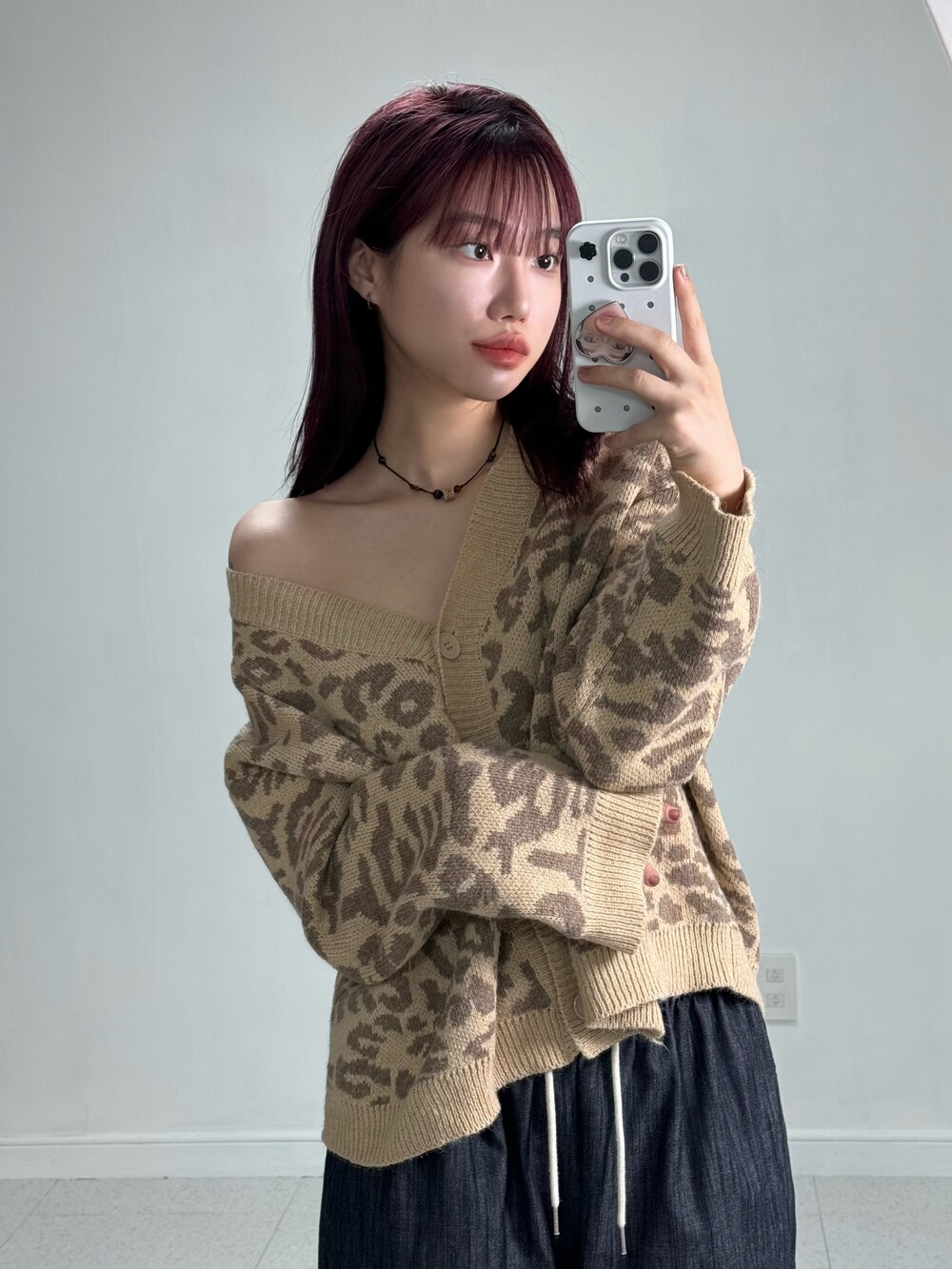 •아방루즈한 느낌으로 착용하시기 좋은 호피 니트 가디건입니다! 가단이 넓은편이라 아방방하게 착용하시기 좋아요>,<66식구님들도 루즈하게 섹시하게 완전 착용가능!