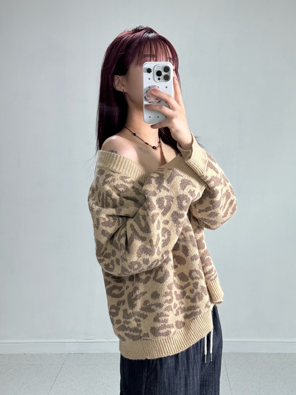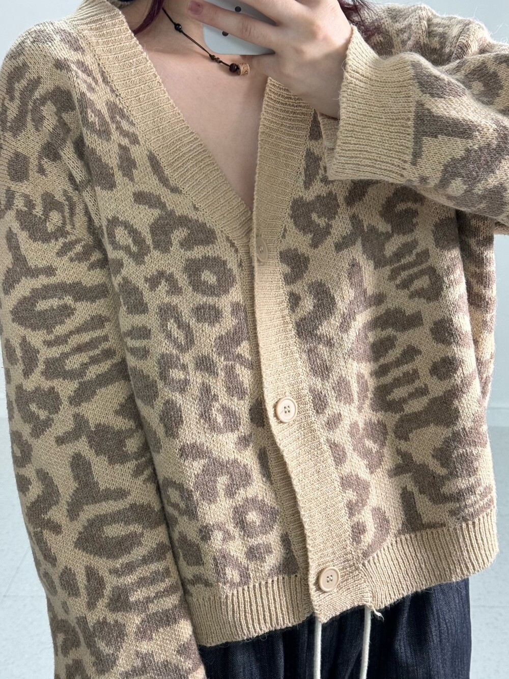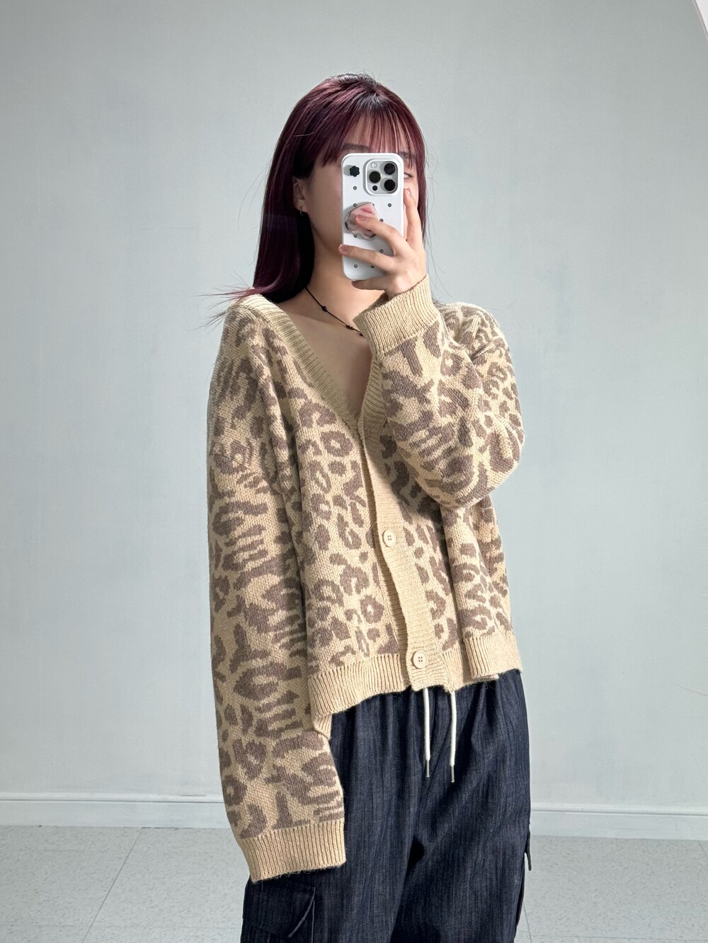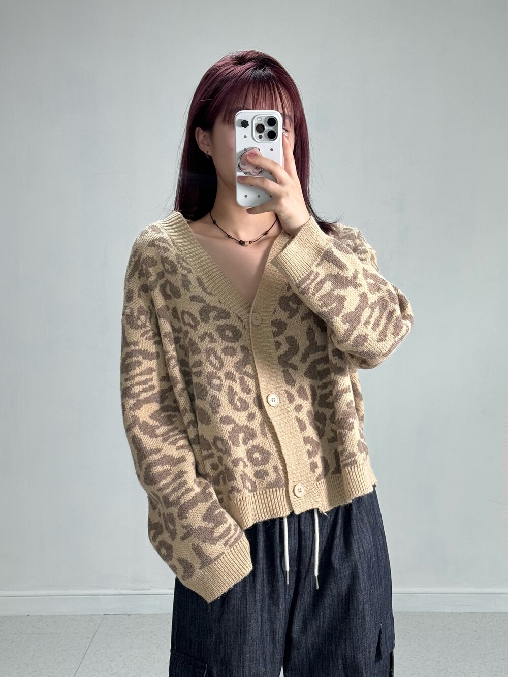 •아방루즈한 느낌으로 착용하시기 좋은 호피 니트 가디건입니다! 가단이 넓은편이라 아방방하게 착용하시기 좋아요>,<66식구님들도 루즈하게 섹시하게 완전 착용가능!