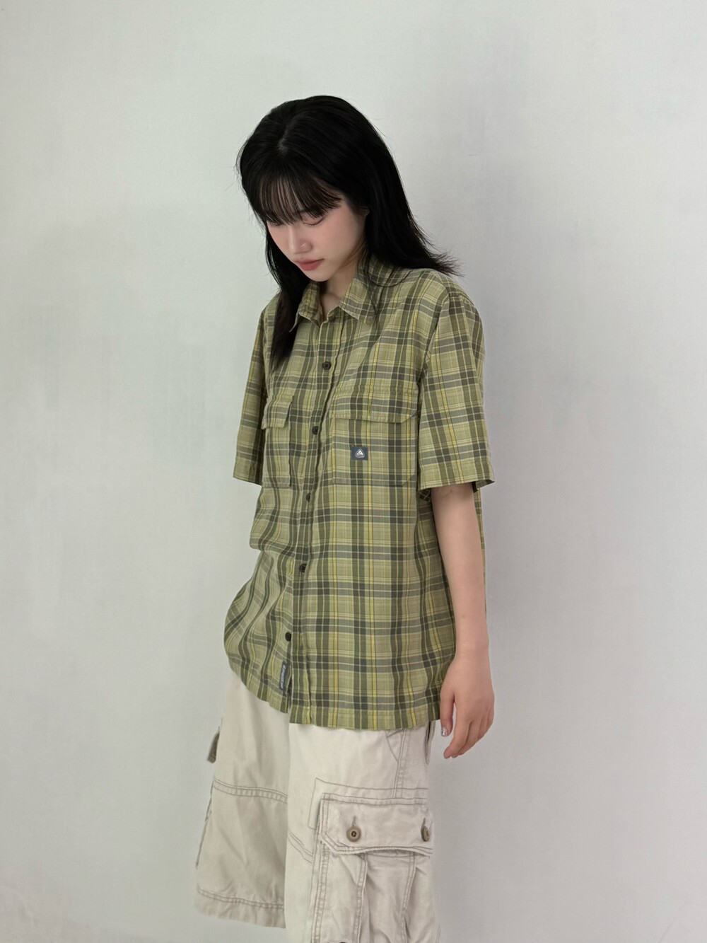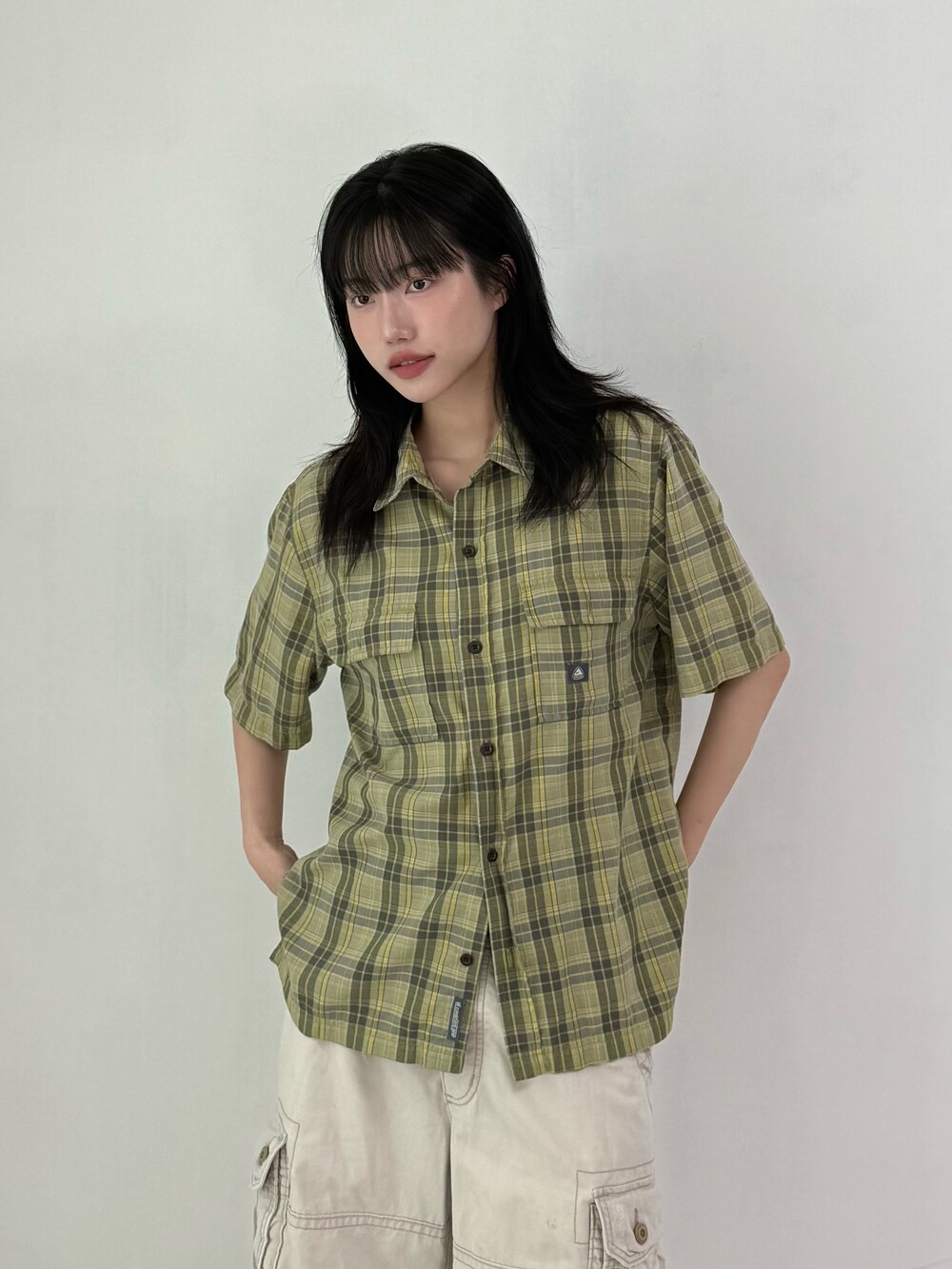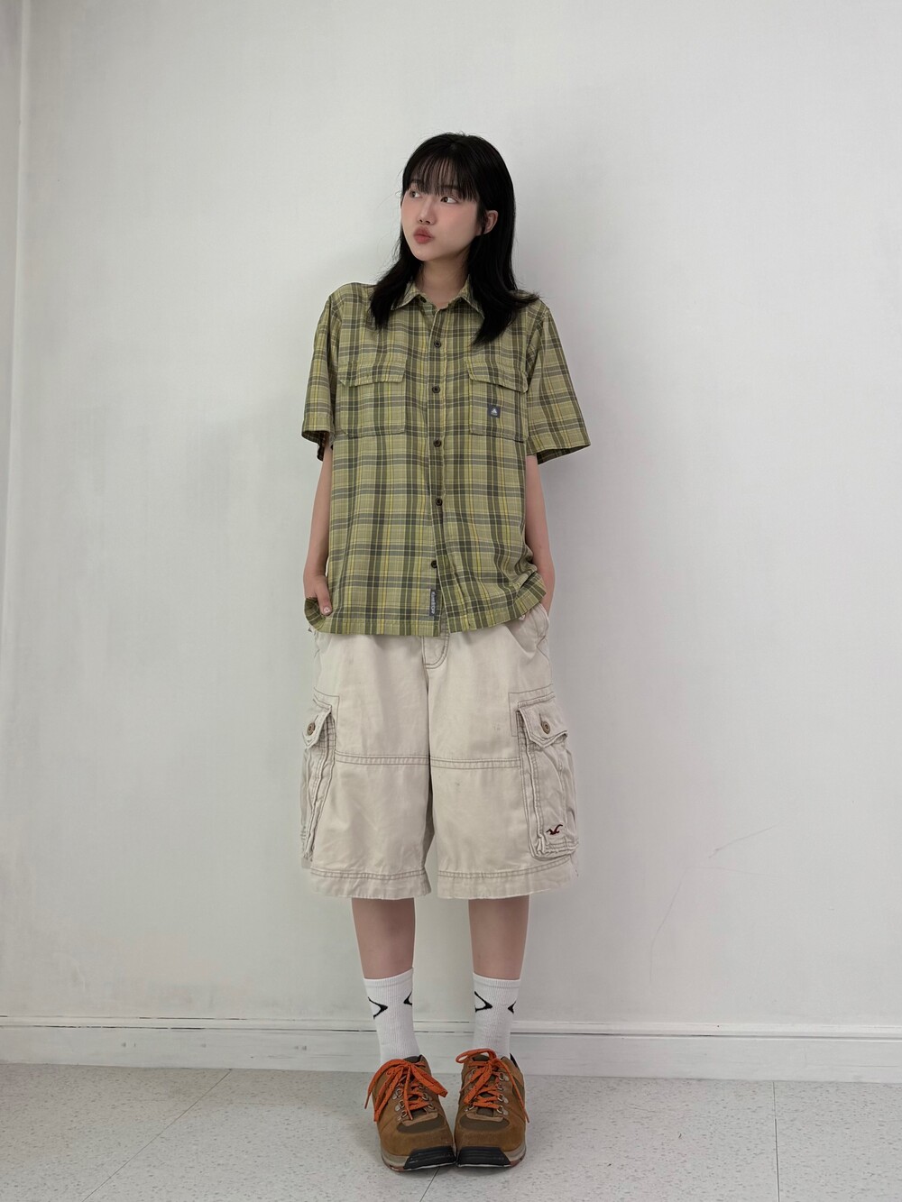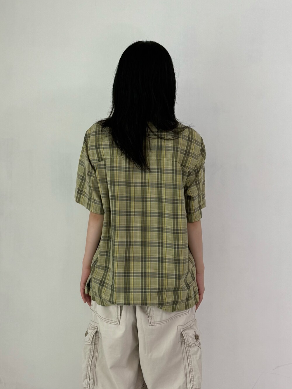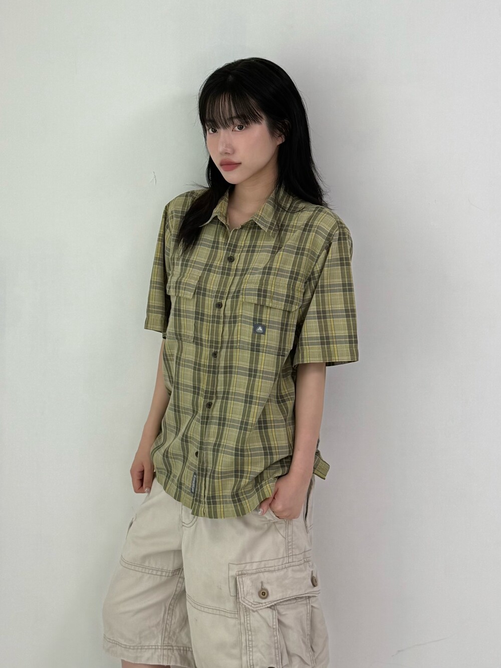 •나이키 acg 그린체크셔츠 입니다! 널널한 사이즈감에 슬쩍 보이는 acg로고가 넘 귀엽죠!