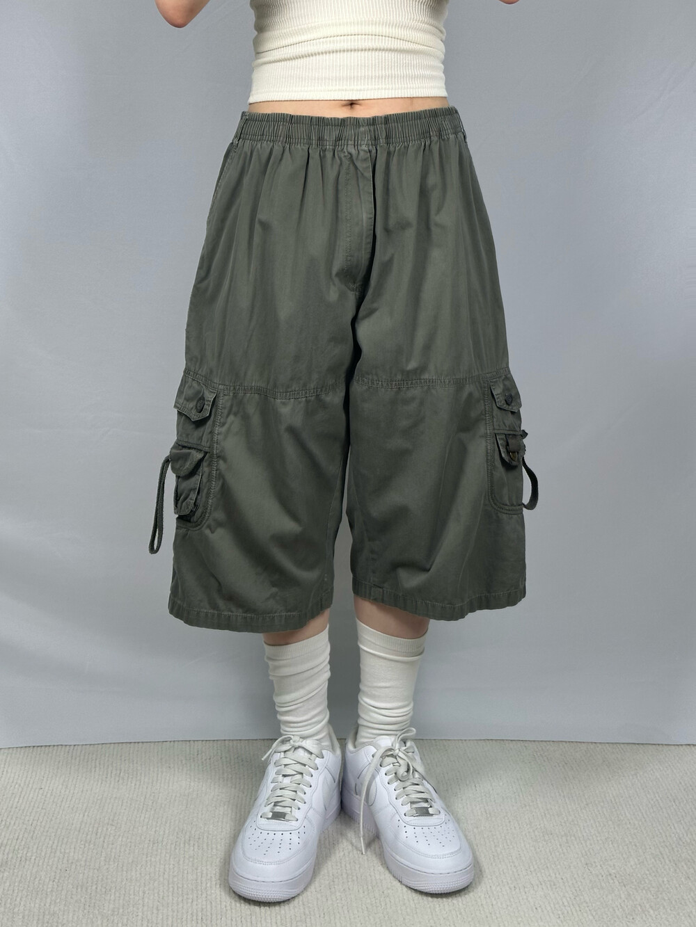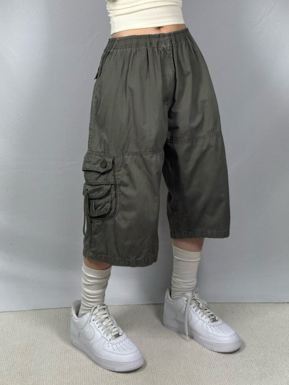 •카키컬러의 완전 루즈핏 카고반바지에요! 원단이 얇아서 한여름에도 끄떡 없고 낭낭한 사이즈로 훨씬 예쁘다구요>.<
